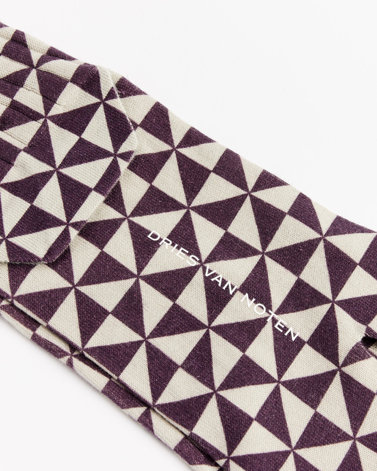 Dries Van Noten's Printed Socks in Auber feature an all-over geometric print with a ribbed calf and a tabi split toe.