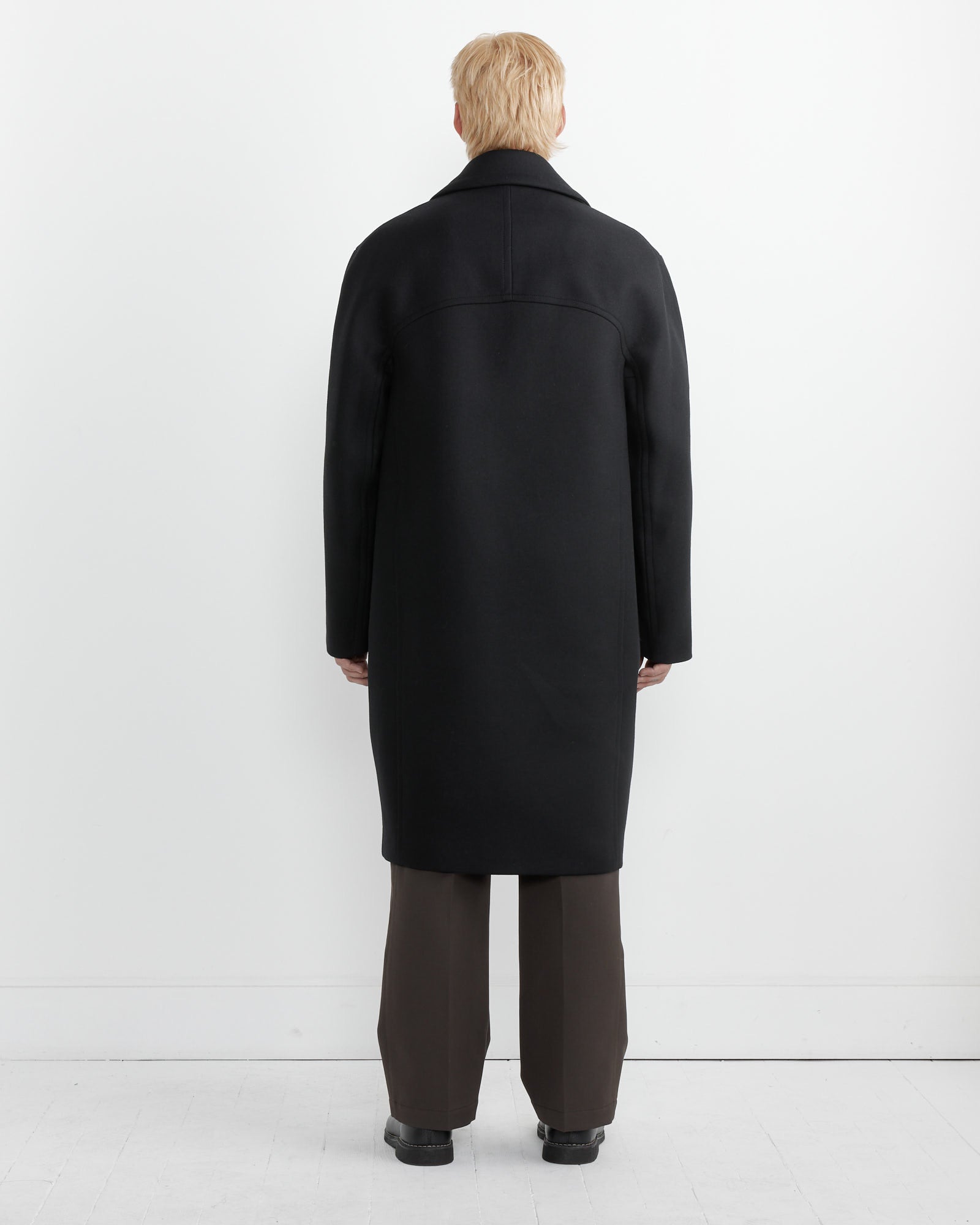 Dries Van Noten's Double Breasted Coat is cut in an oversized boxy silhouette from a twill blend comprised of felted wool and nylon and features a double-breasted front, large notched lapels, dropped shoulders, and welt pockets at the interior and exterior waist.