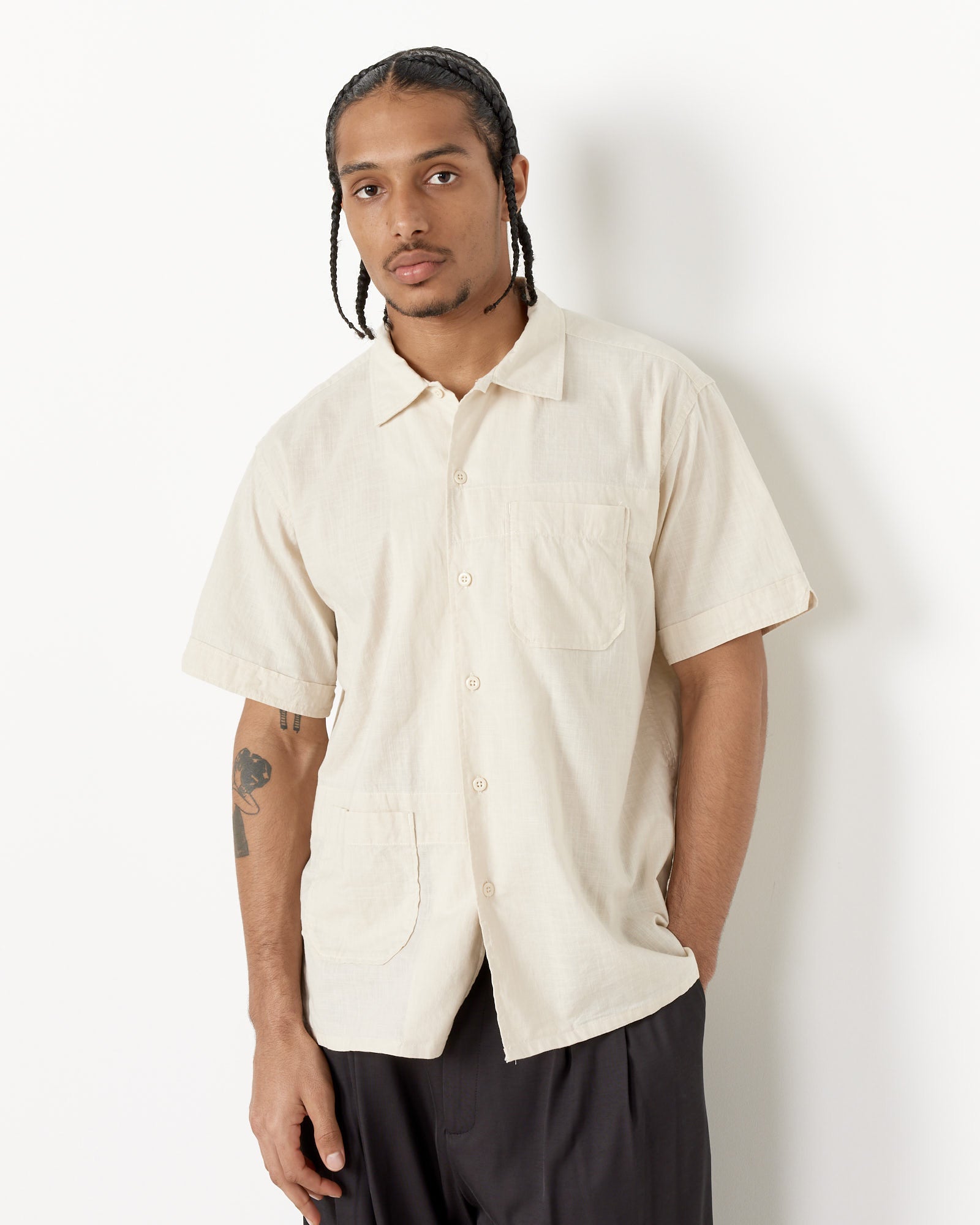 Engineered Garments' Handkerchief Camp Shirt is cut in a classic midcentury silhouette with a boxy shape, open spread collar, and two asymmetrically placed patch pockets at the front.