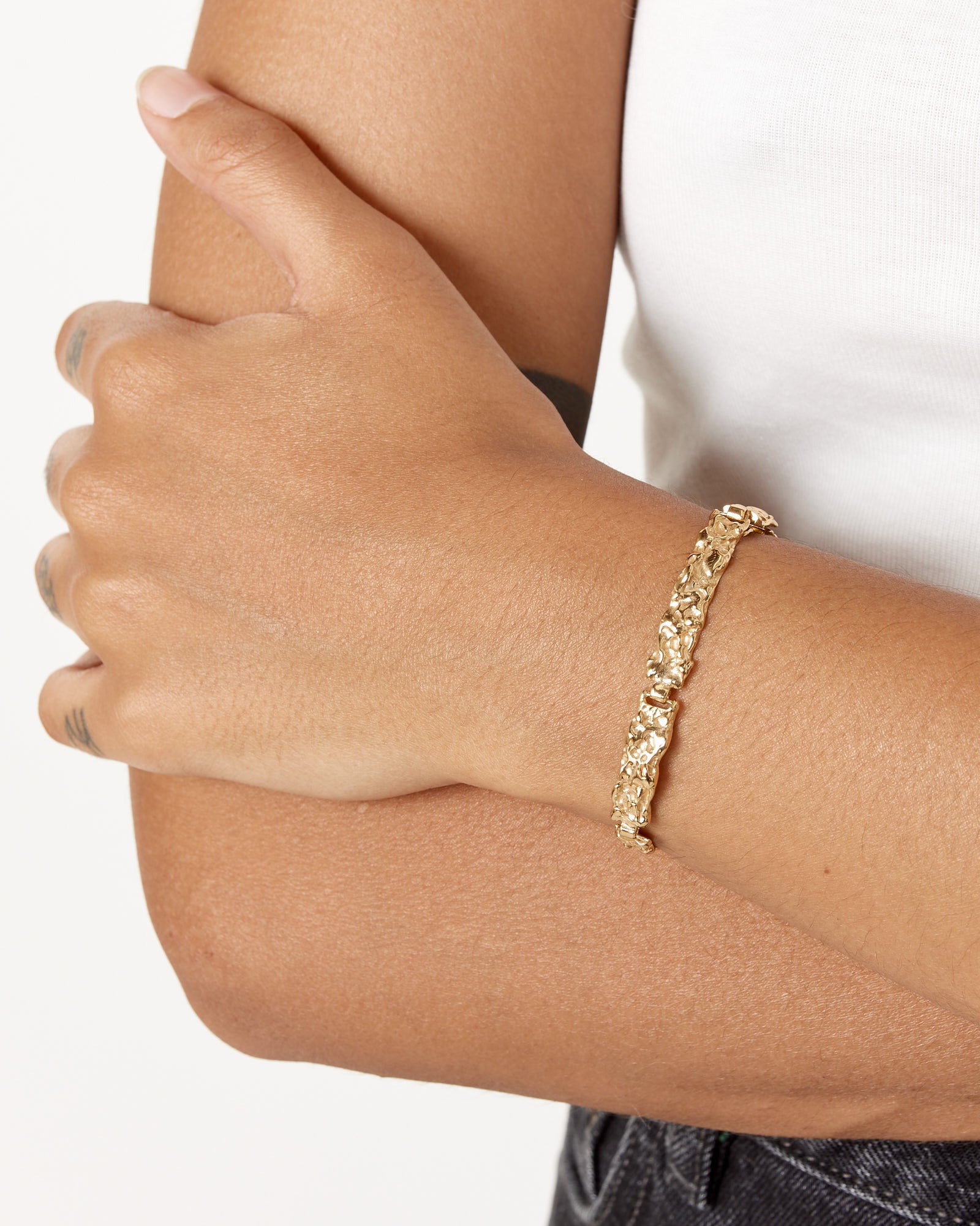 Faris's Bruto Bracelet reinvigorates a classic bracelet style with unconventional links featuring an opulent texture.