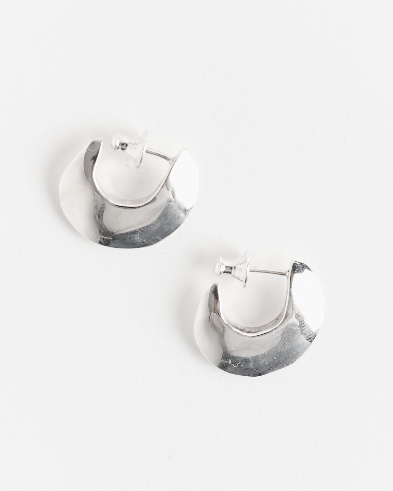 The Saucer Hoops by Faris are slim, sculptural earrings with a clean, proportional shape that makes them easy to wear and stack. Crafted in Sterling Silver, they pair seamlessly with other pieces from the Saucer Collection.