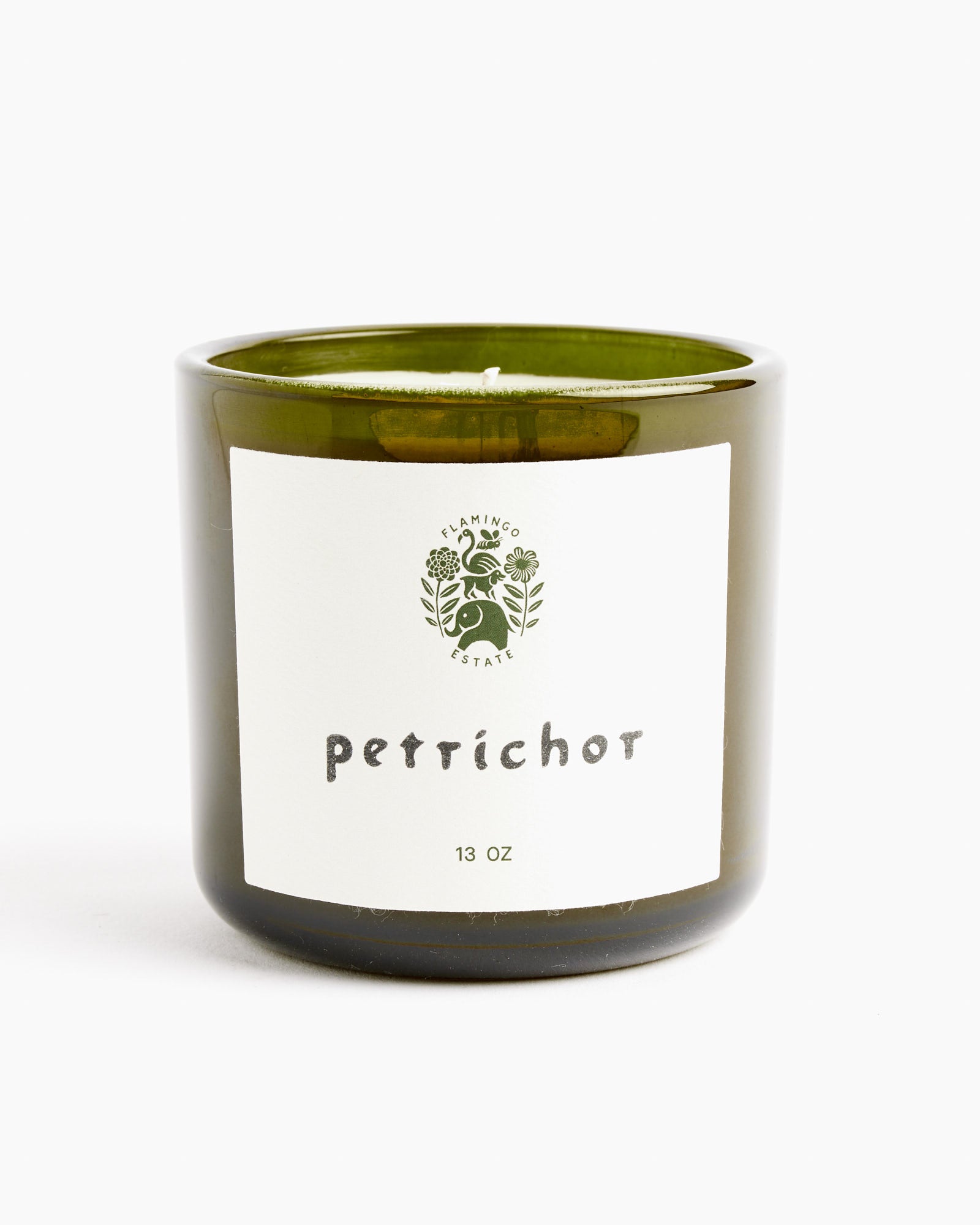 Flamingo Estate's Petrichor Candle exudes the calming, restorative scent of the earth after rain through the presense of meticulously sourced Myrhh, Amber, Vetiver, Sage and Eucalyptus. Hand-poured into a fully recyclable glass, the candle features dual cotton wicks and 100% vegetable wax.
