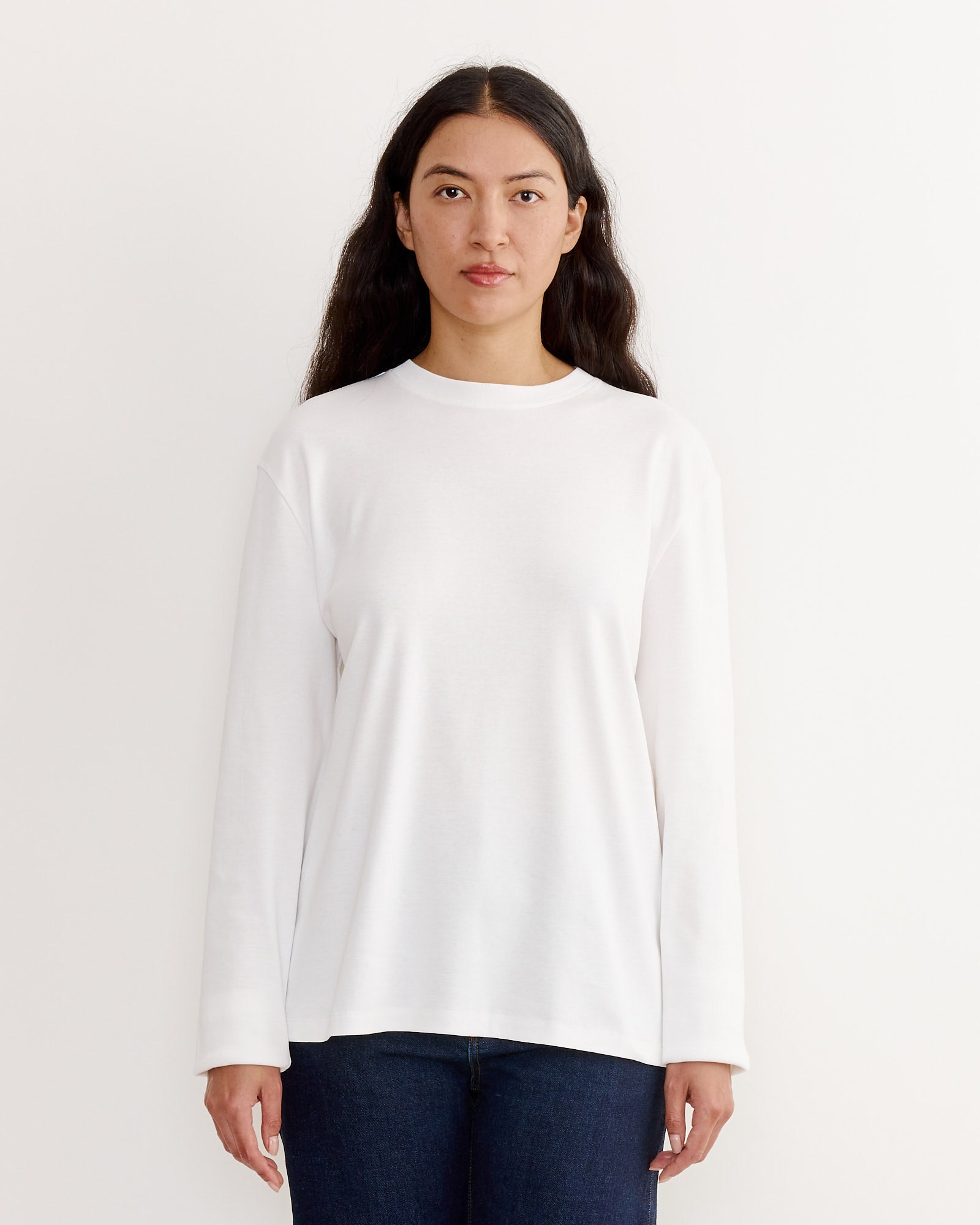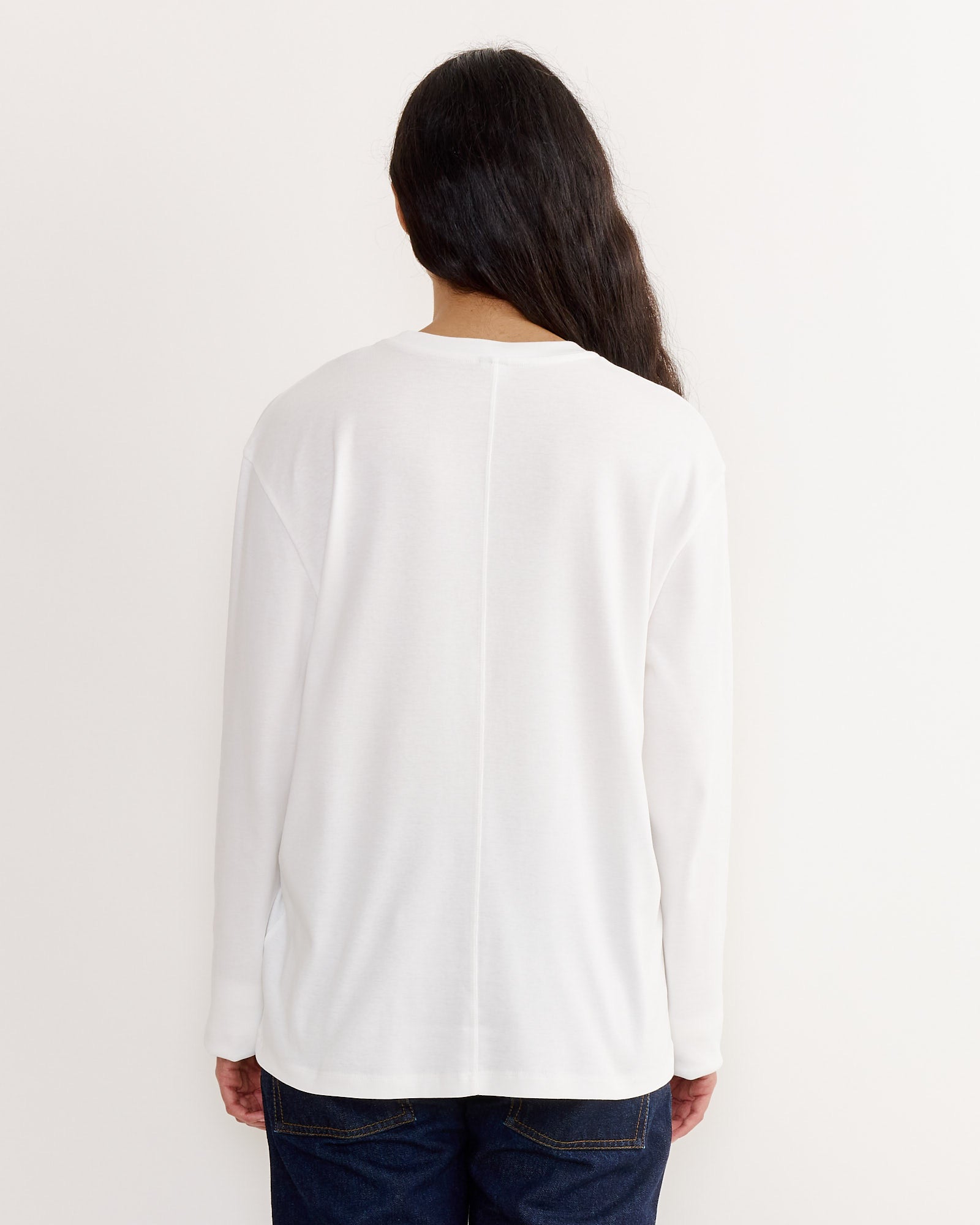 A relaxed long-sleeved tee with a double stitched cut off seam on the back, made from 100% organic cotton 1 x 1 rib.