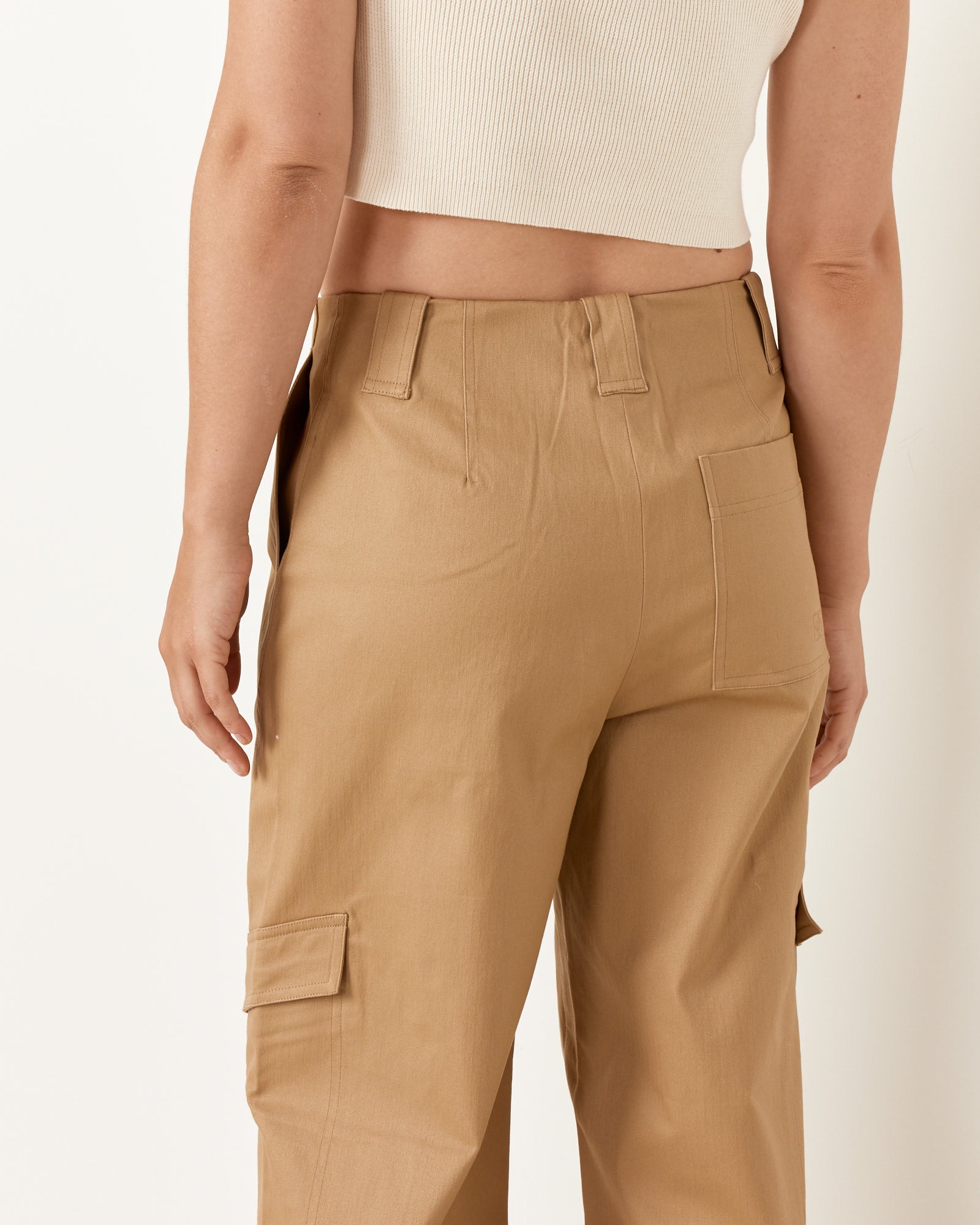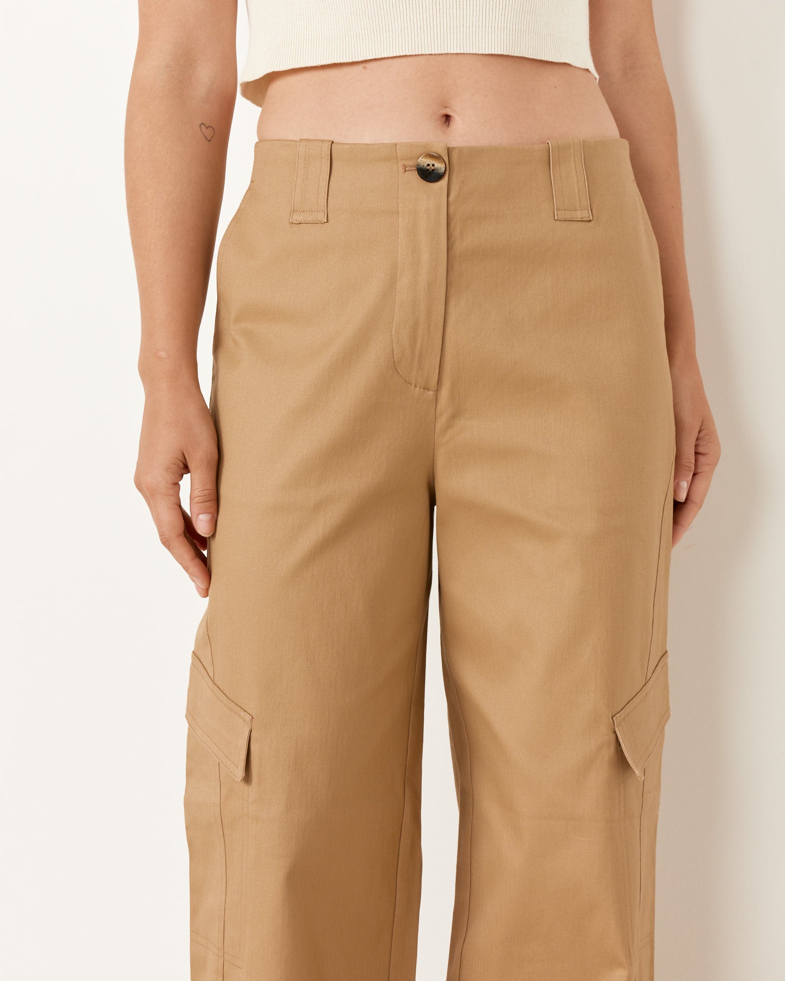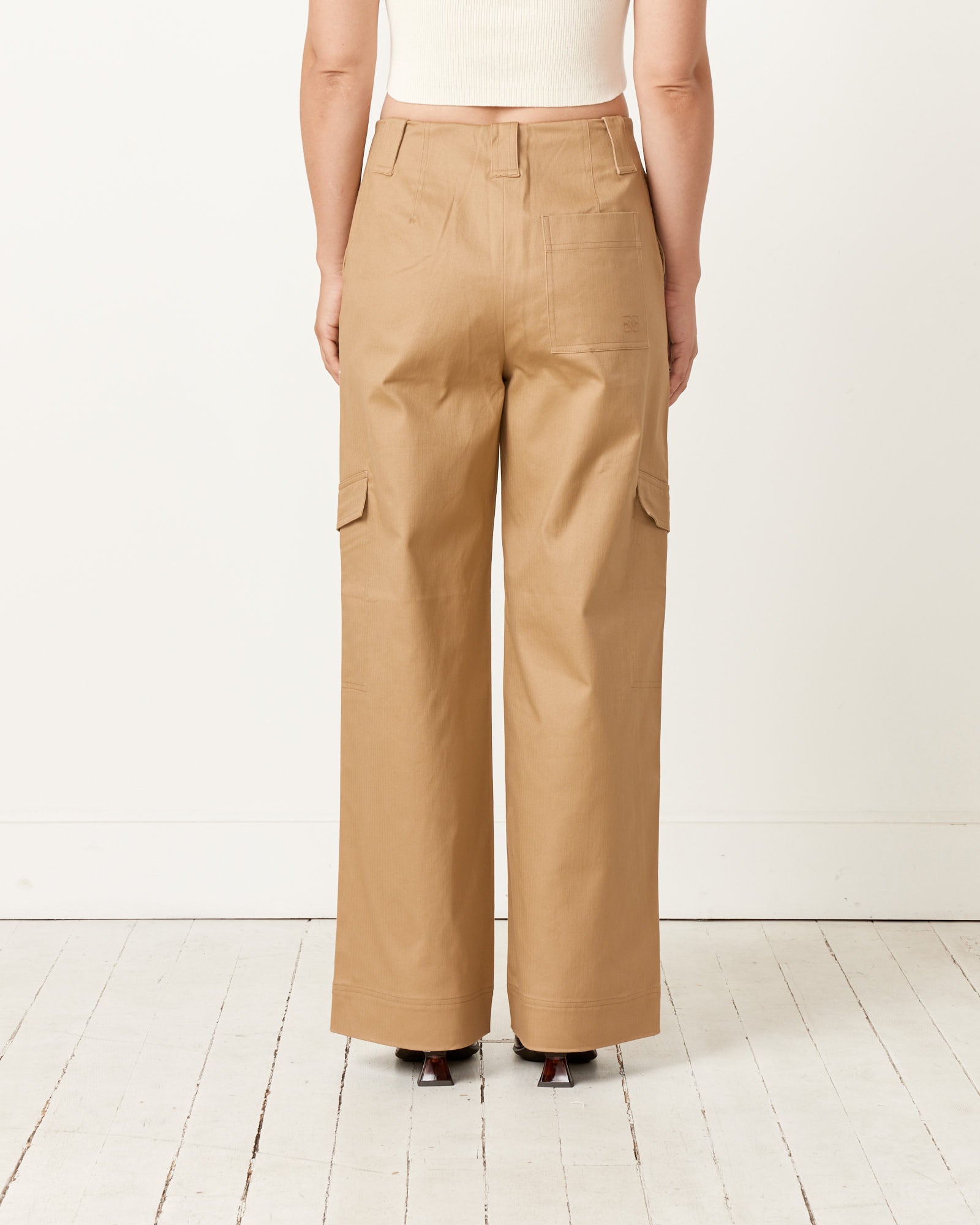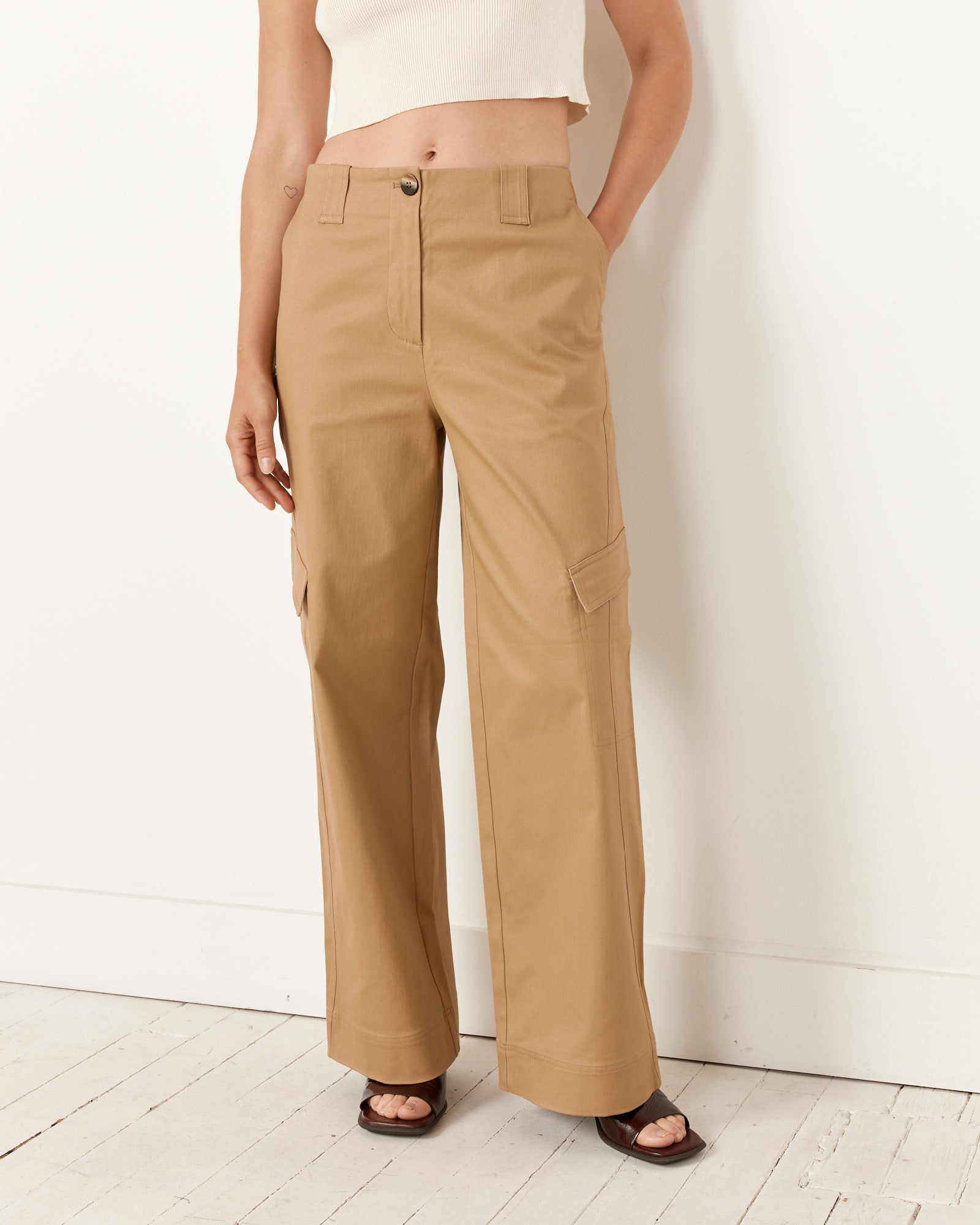 Cut in a loose wide-leg silhouette from a cotton canvas blended with elastane for a hint of stretch, Ganni's Herringbone Mid Waist Pant features a zip fly with a large button closure, streamlined flapped cargo pockets at the side knee, side pockets at the hips, and a single pocket at the back.