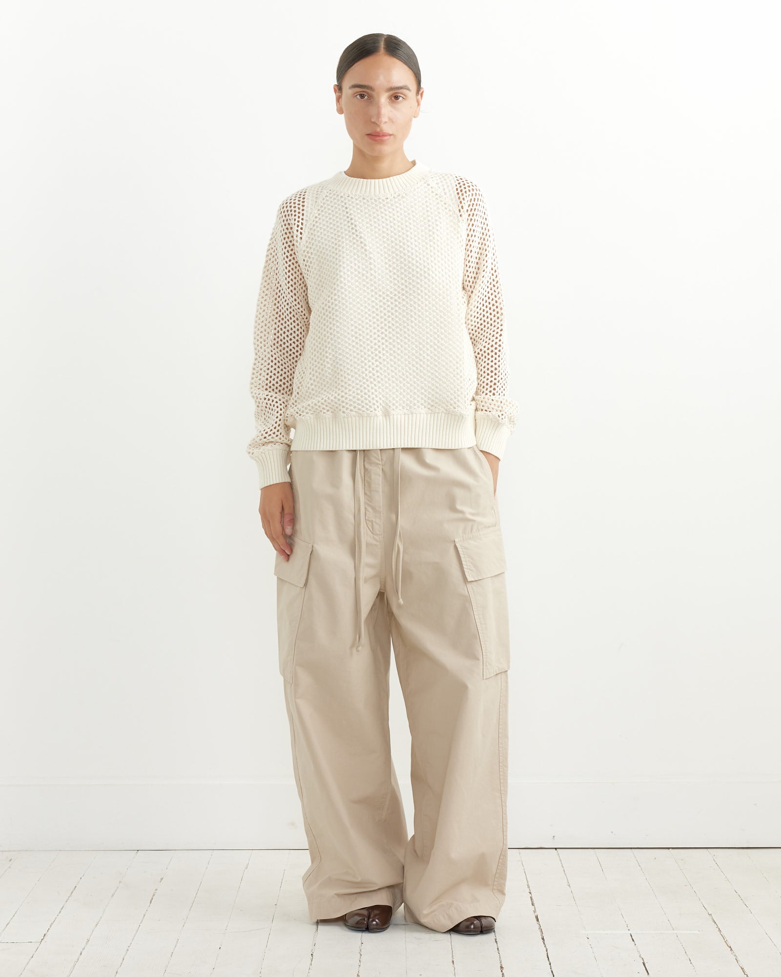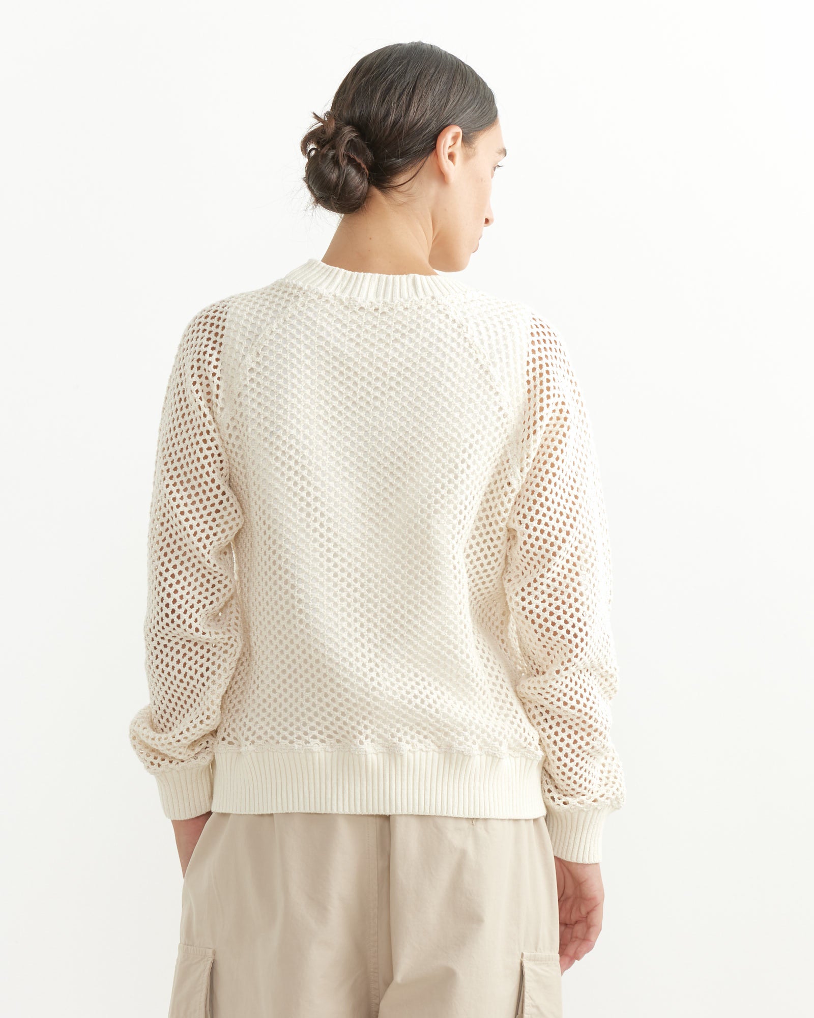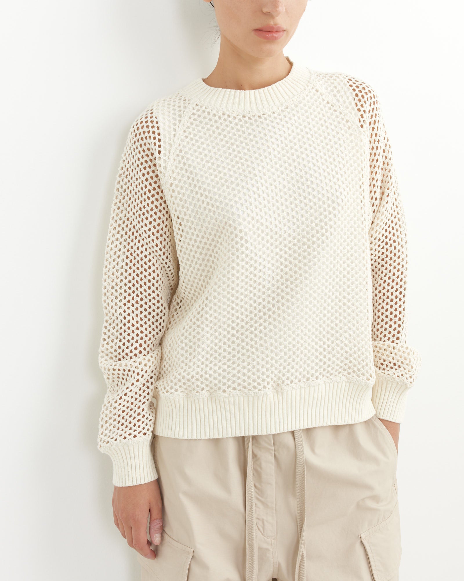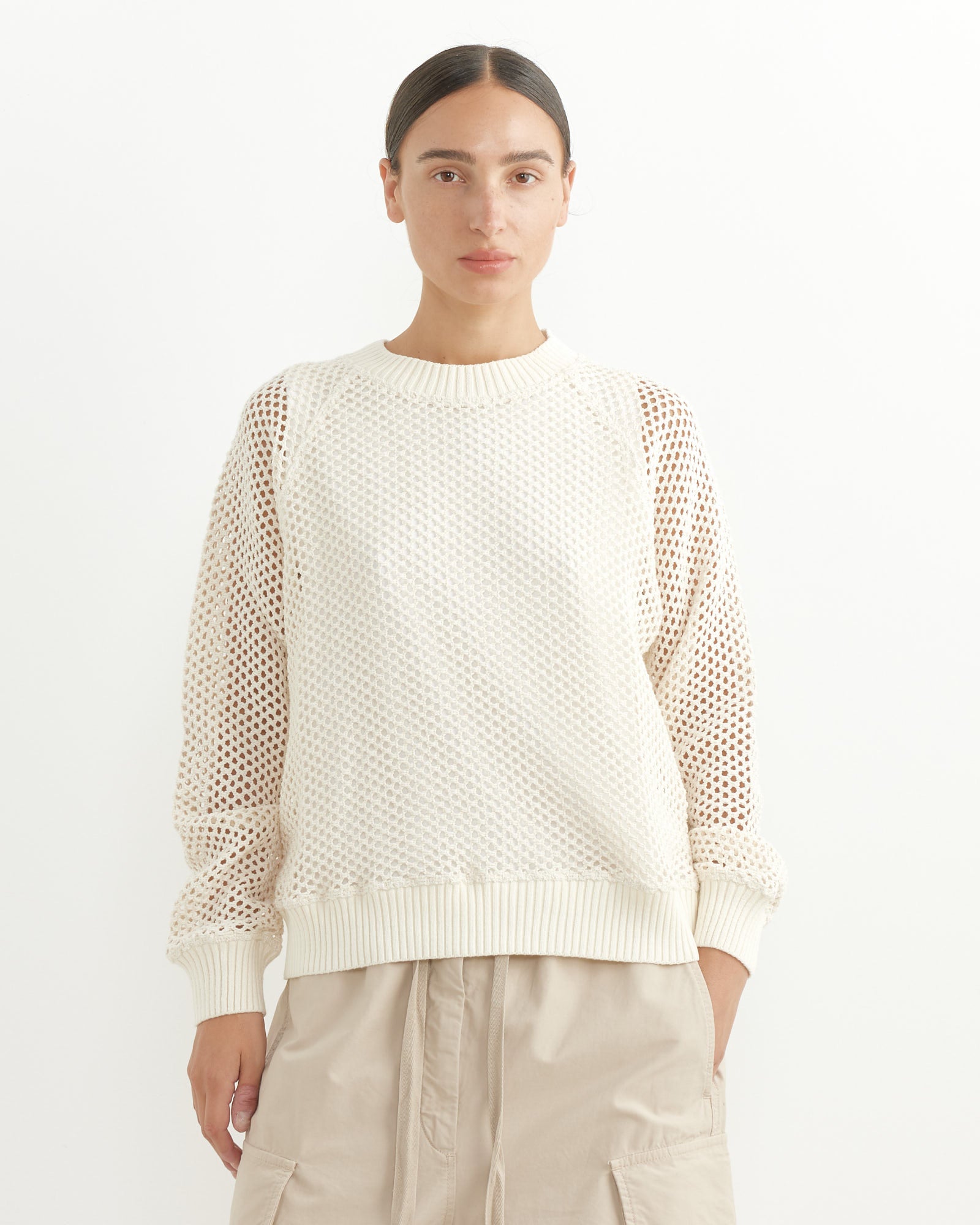 Girls of Dust's Boxy Knitted Sweater features a sheer, open-knit cotton-blend fabric constructed with classic athletic sweat construction and details: a crew neckline, raglan sleeves, and rib-knit trim.
