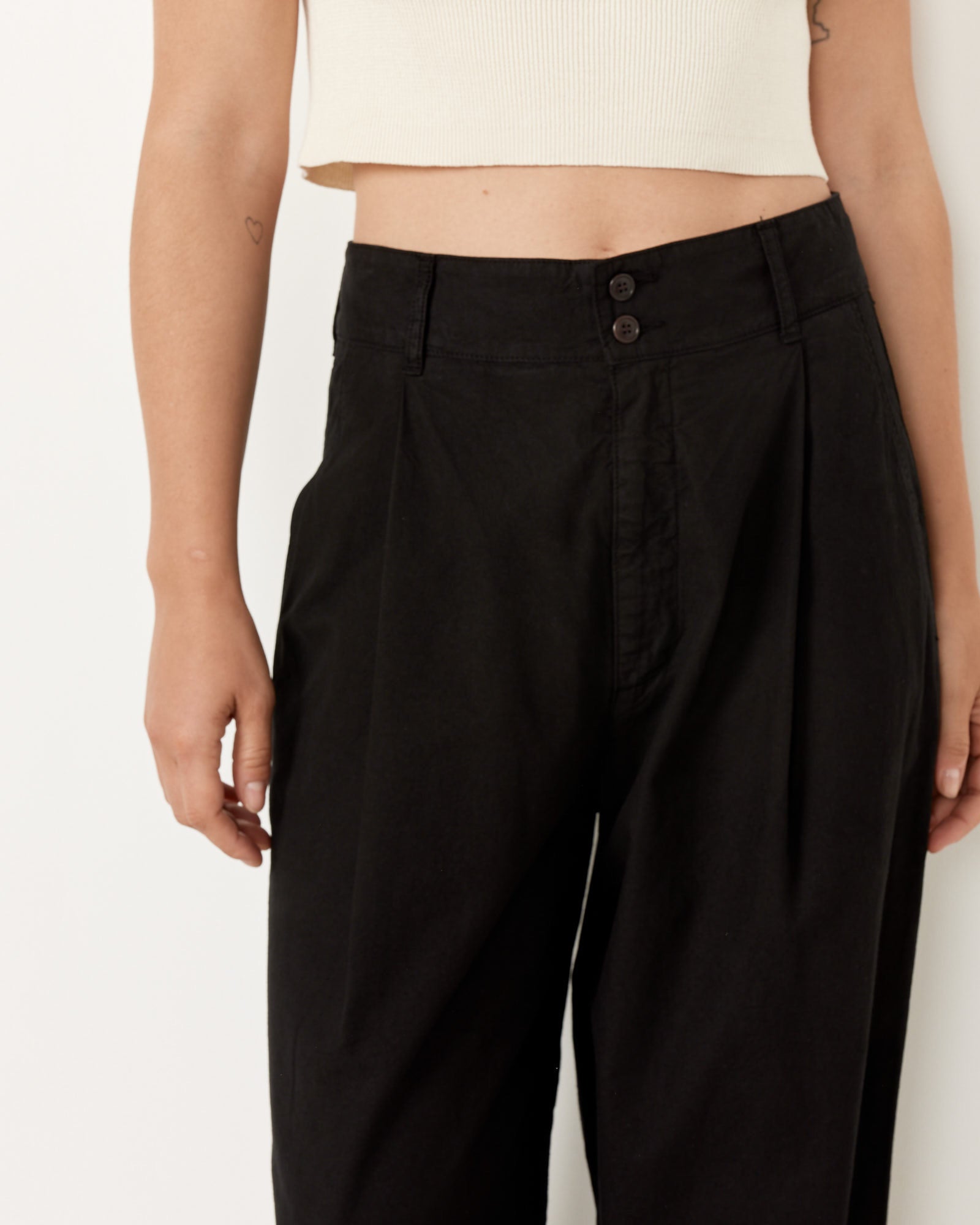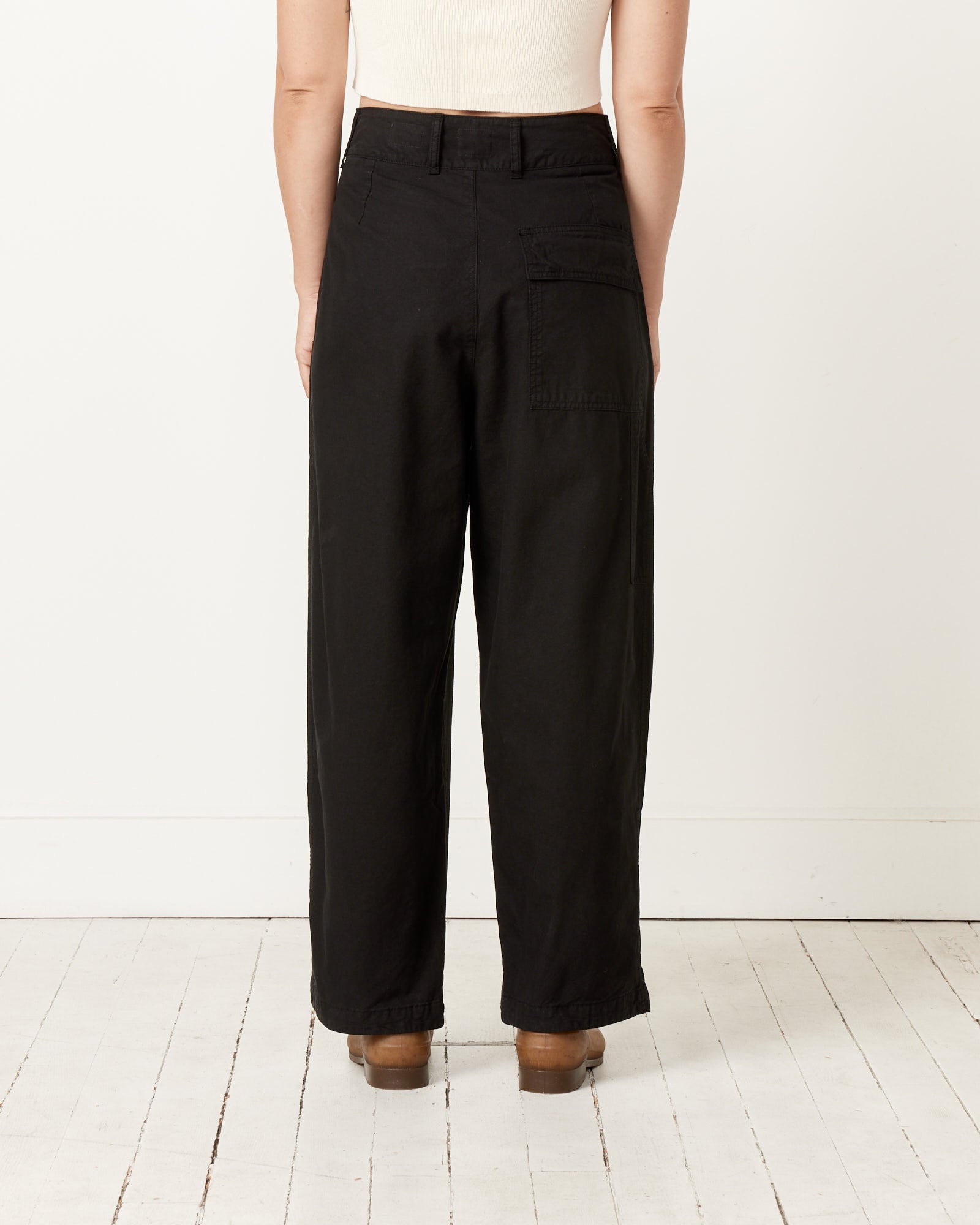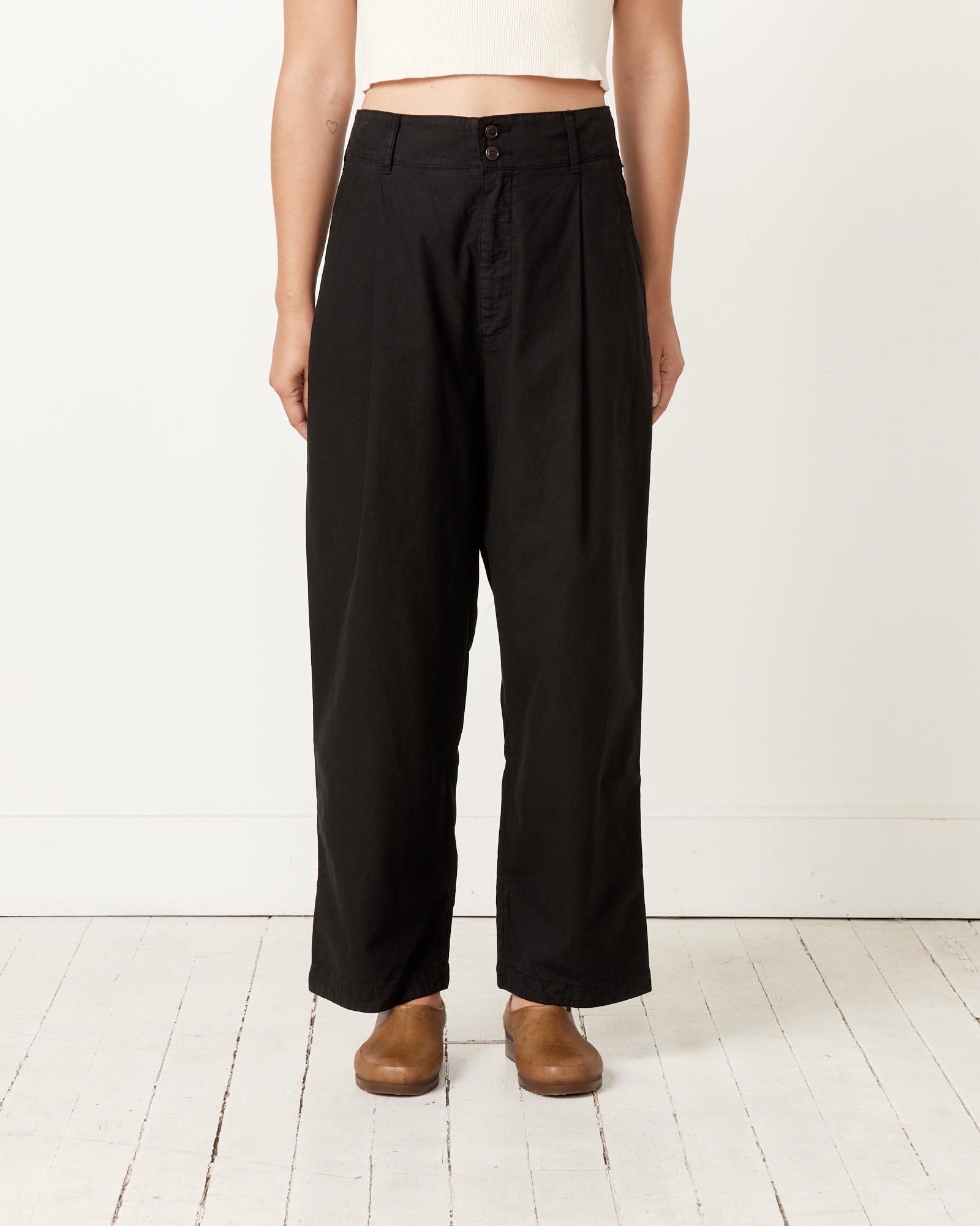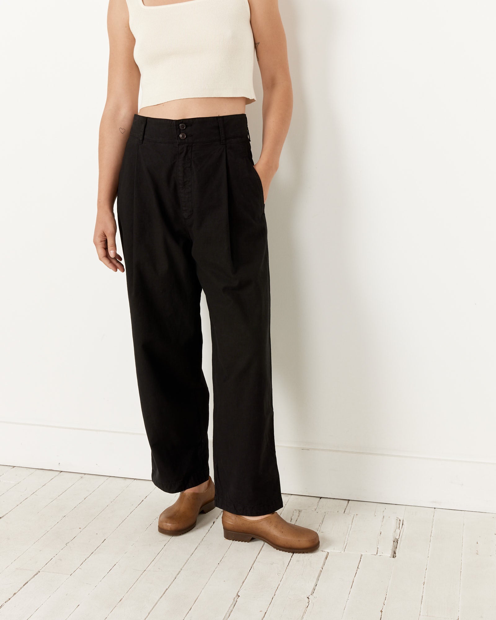 Among the Girls of Dust's top sellers for its classic British workwear silhouette and well-considered details, the British Worker Pants feature a high waist with a loose tapered fit accentuated by deep front pleats and is cut from an Italian cotton fabric that will break in beautifully with age and wear.