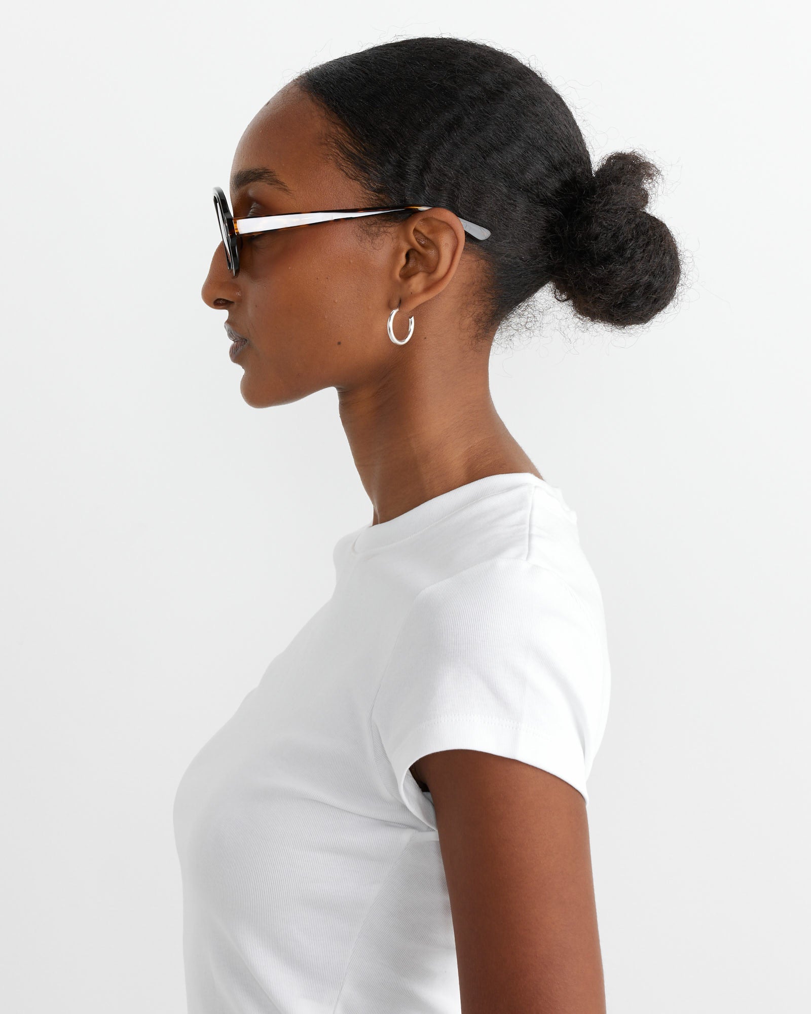 A striking pair of square sunglasses with rounded edges and rectangular lenses that leave gaps between the top and bottom of the lens and frame, Henrik Vibskov's Olga Sunglasses feature Category 3 protection that offers 100% UVA & UVB protection.