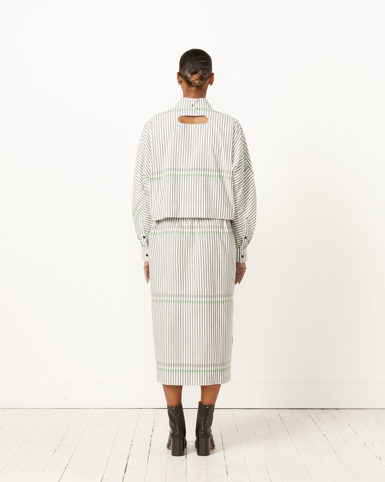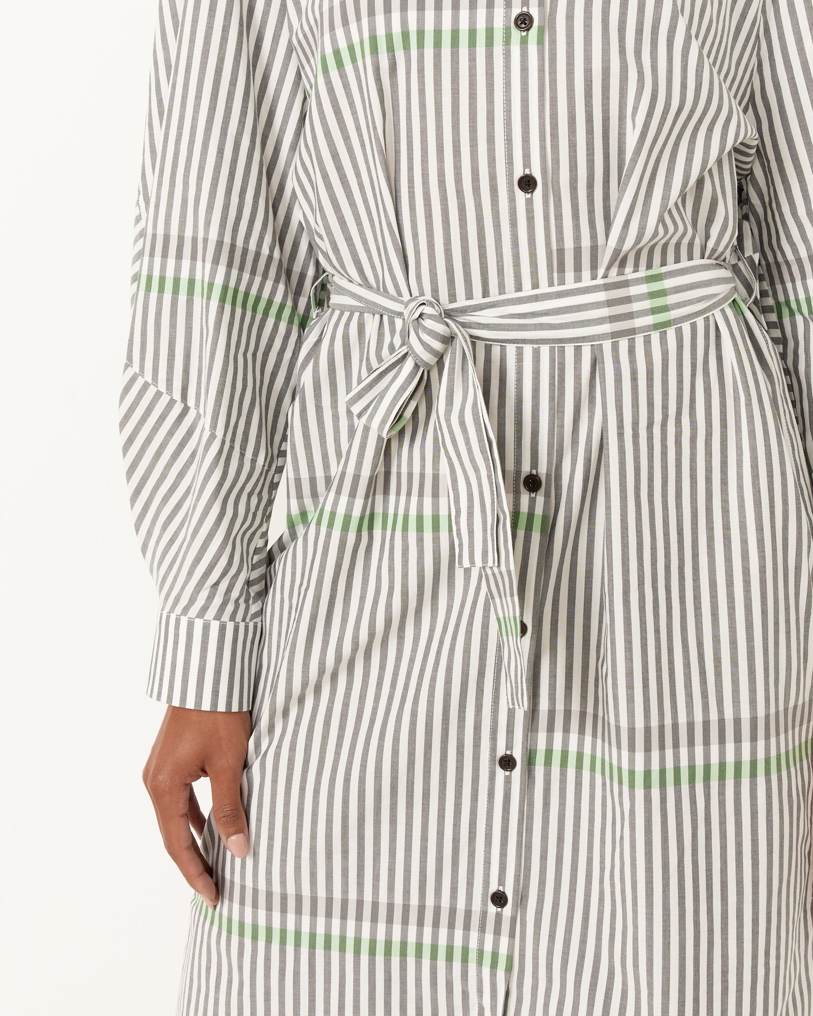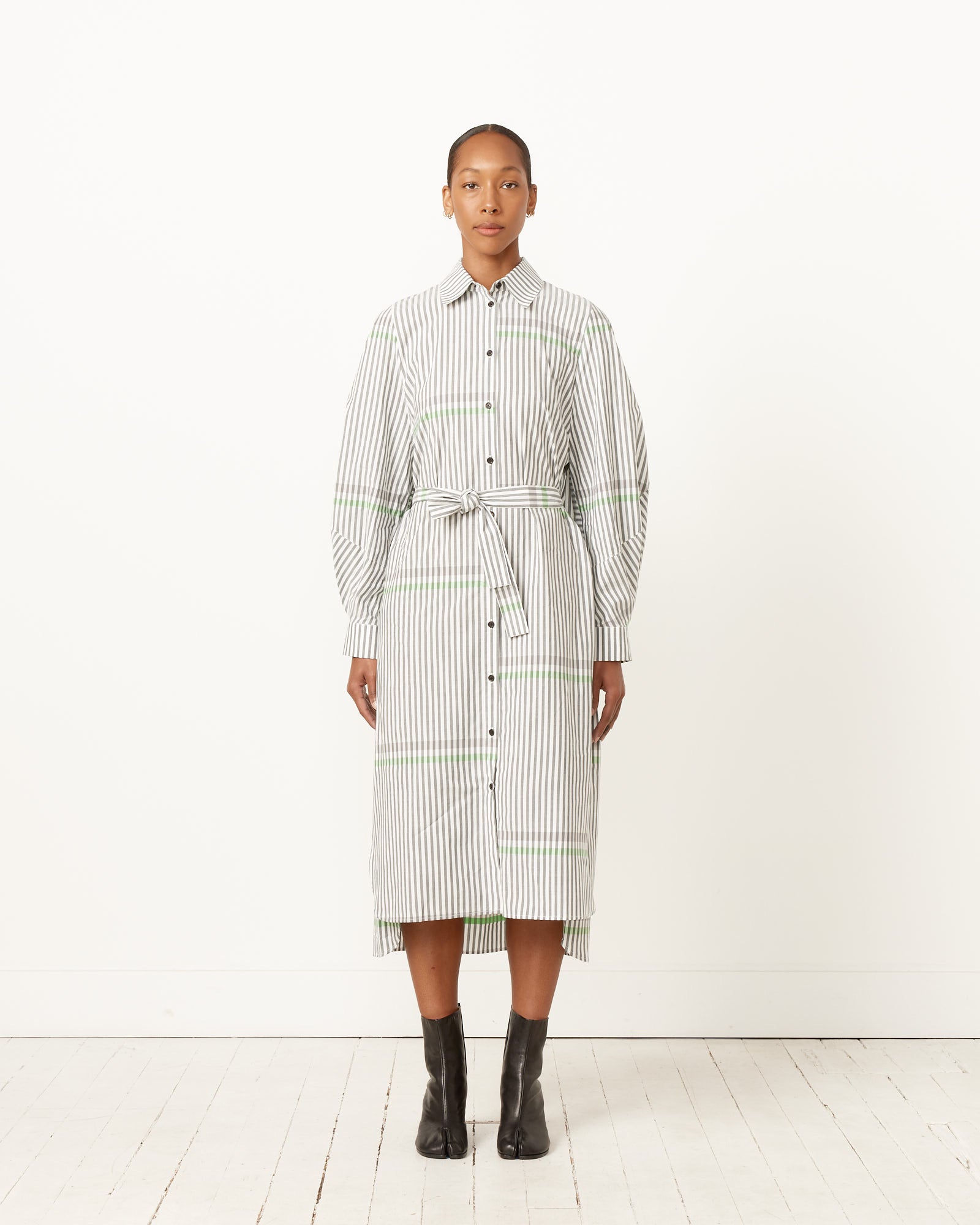 Henrik Vibskov's Parcel Stripes Dress is cut from lightweight organic cotton in a loose shirt dress silhouette that can cinched with a self-belt at the waist, and features voluminous sleeves that taper towards the cuffs and a back handle detail.