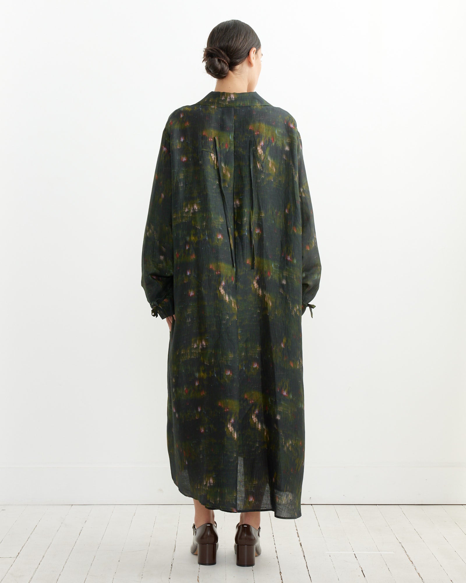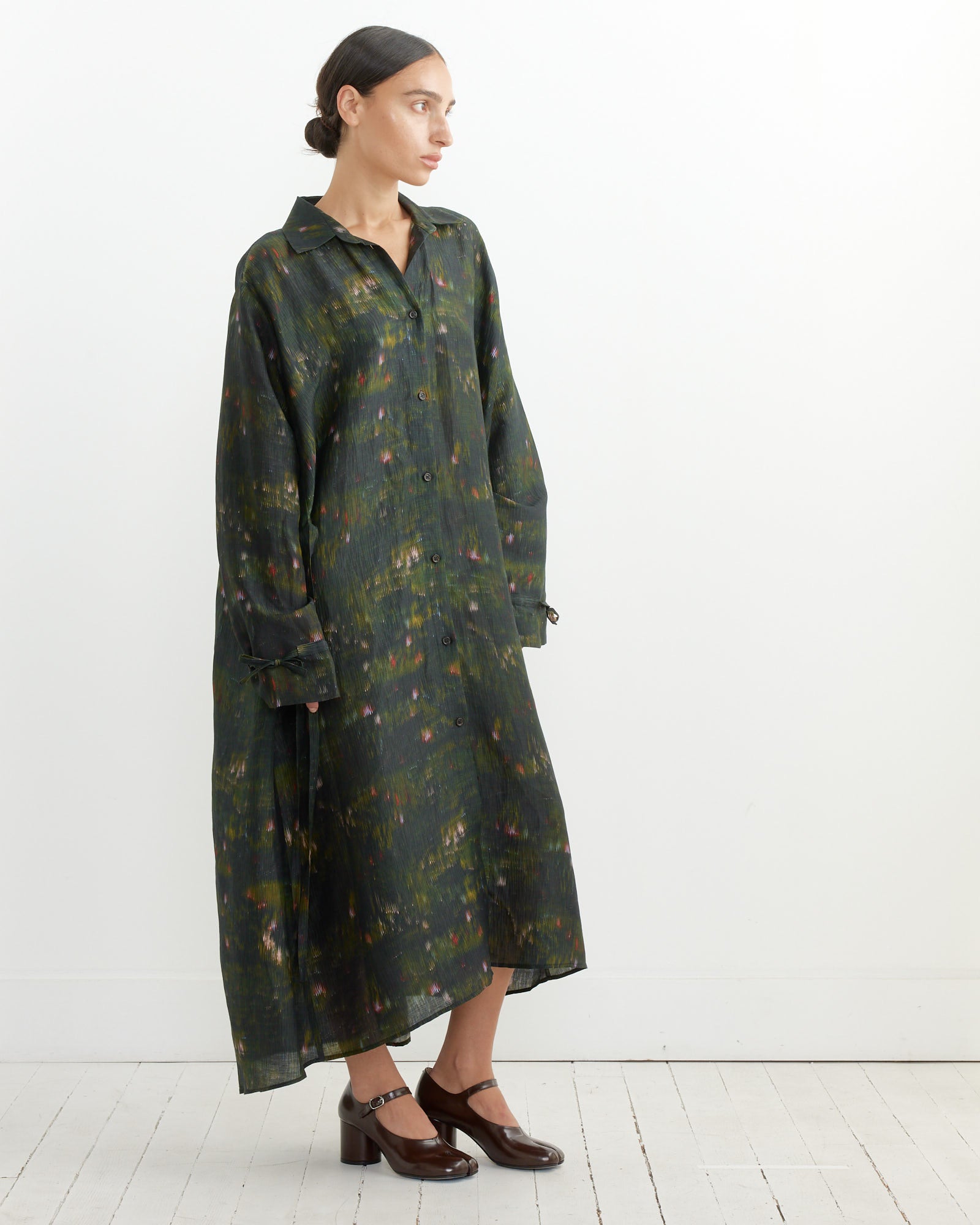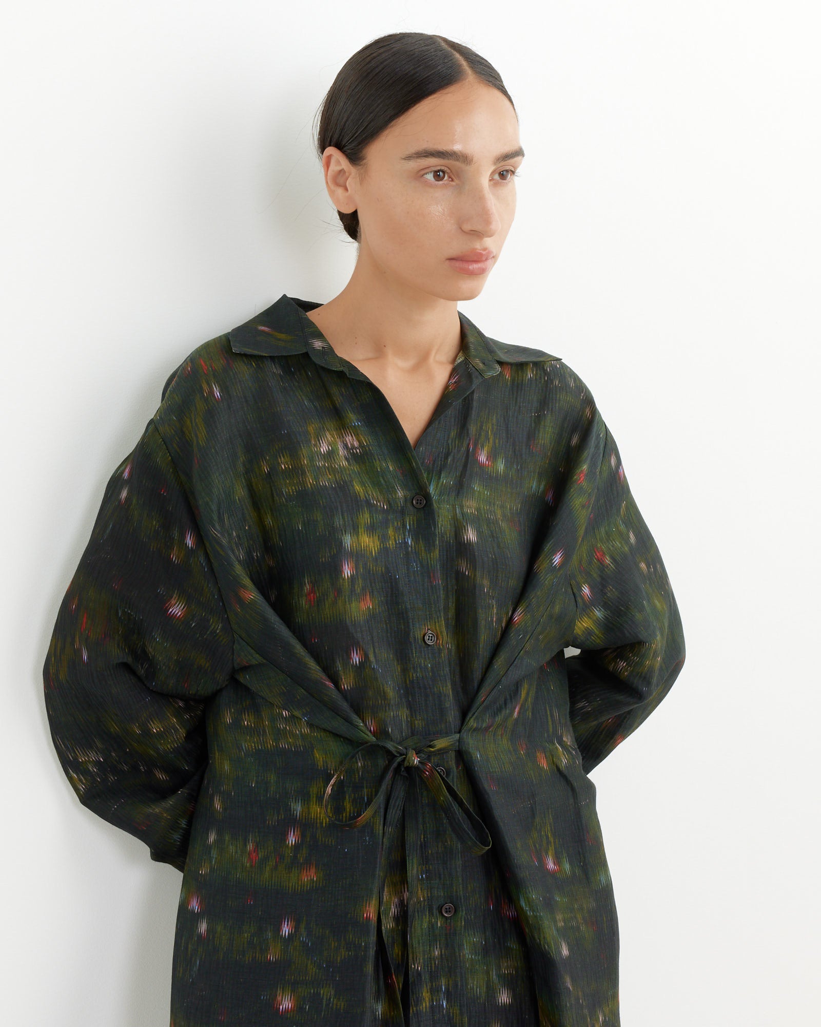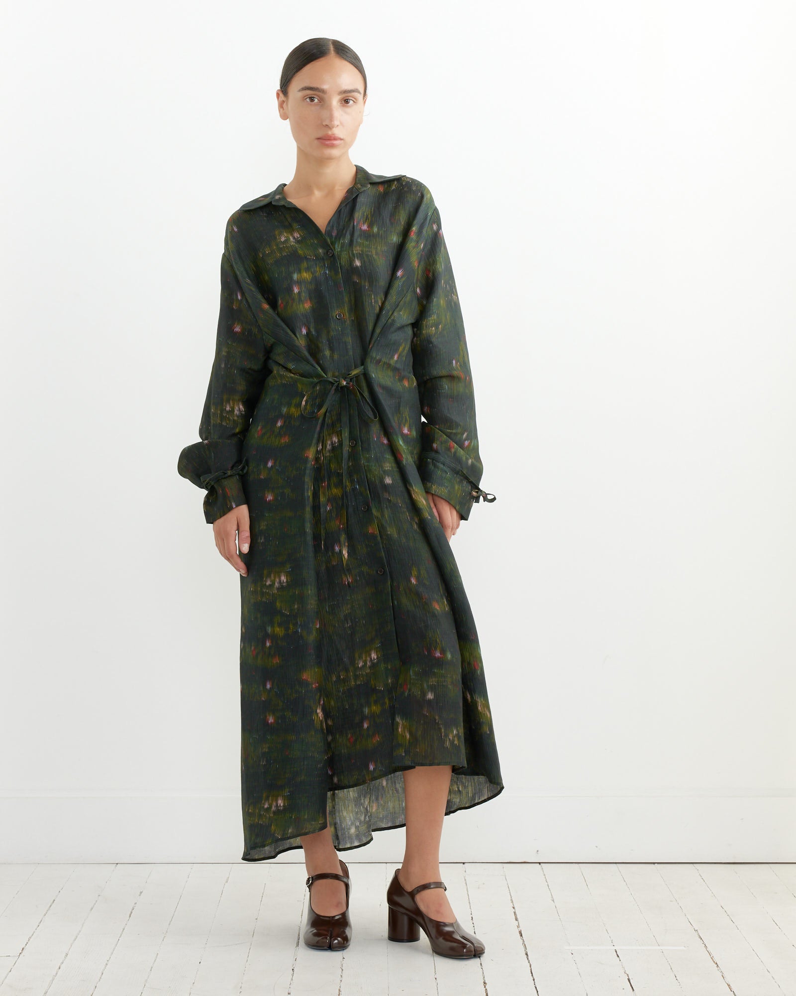 Henrik Vibskov's Pull Silk Dress is crafted from a blend of silk and linen that produces subtle texture and a beautiful drape, is cut in a relaxed silhouette, and features a full-length button placket, ties at the cuffs and waist, and a dark abstract floral print.