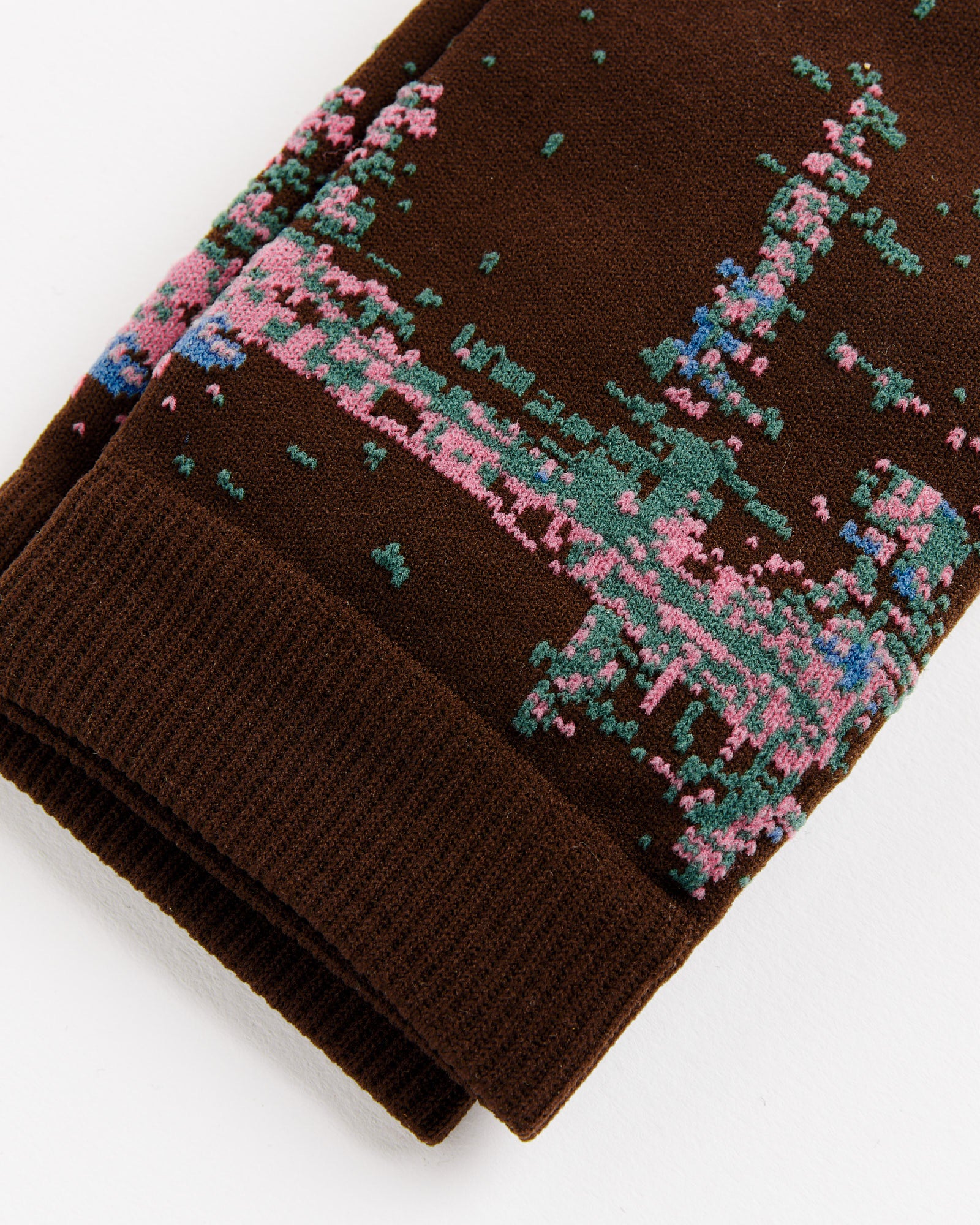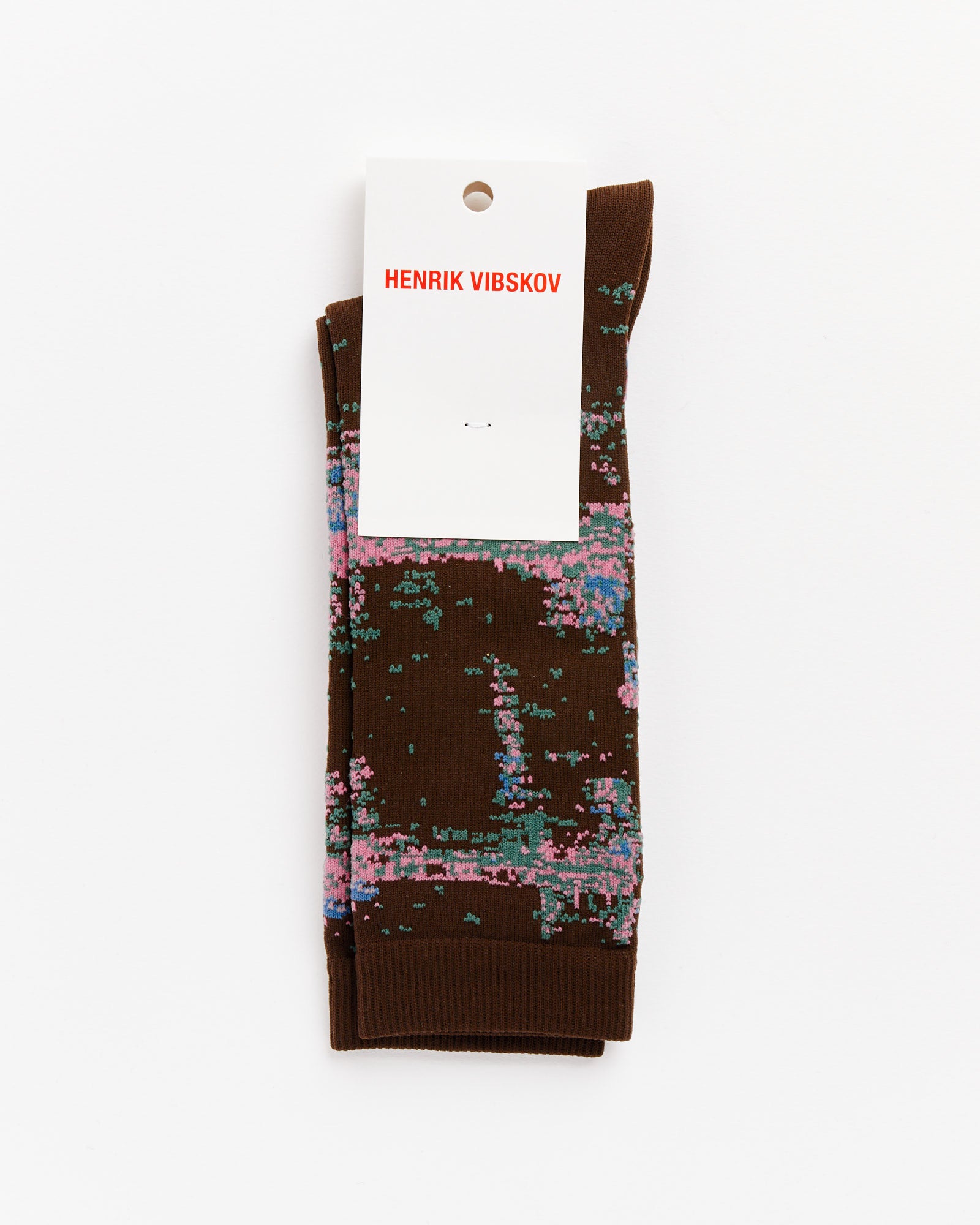 Henrik Vibskov's Screen Socks feature a beautiful colorway with a captivating pattern across a synthetic stretch fabric with a ribbed cuff.