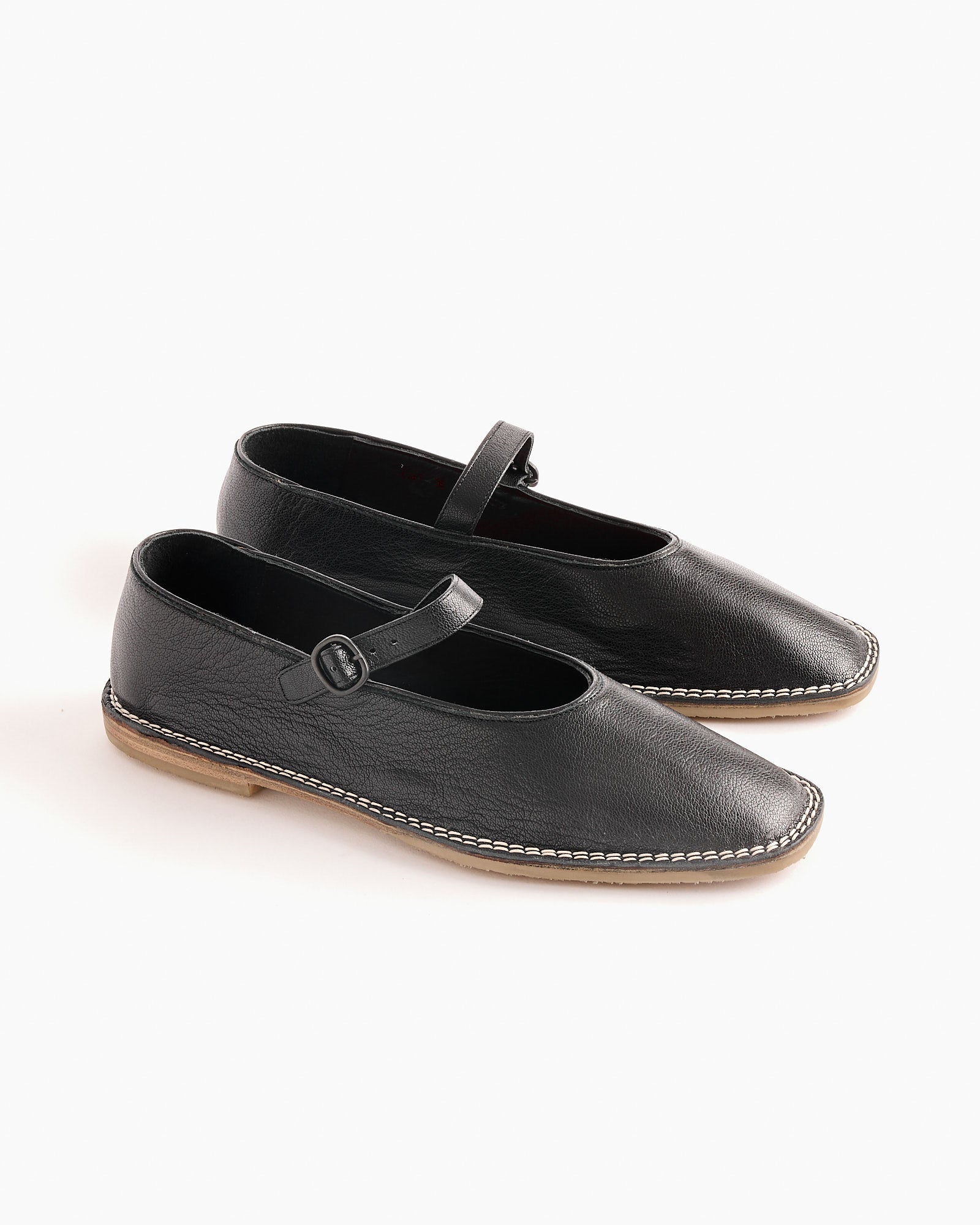 Mary Jane flat, crafted in supple shiny lambskin. Made in Spain by uniquely talented artisans, celebrating excellence in craftsmanship.