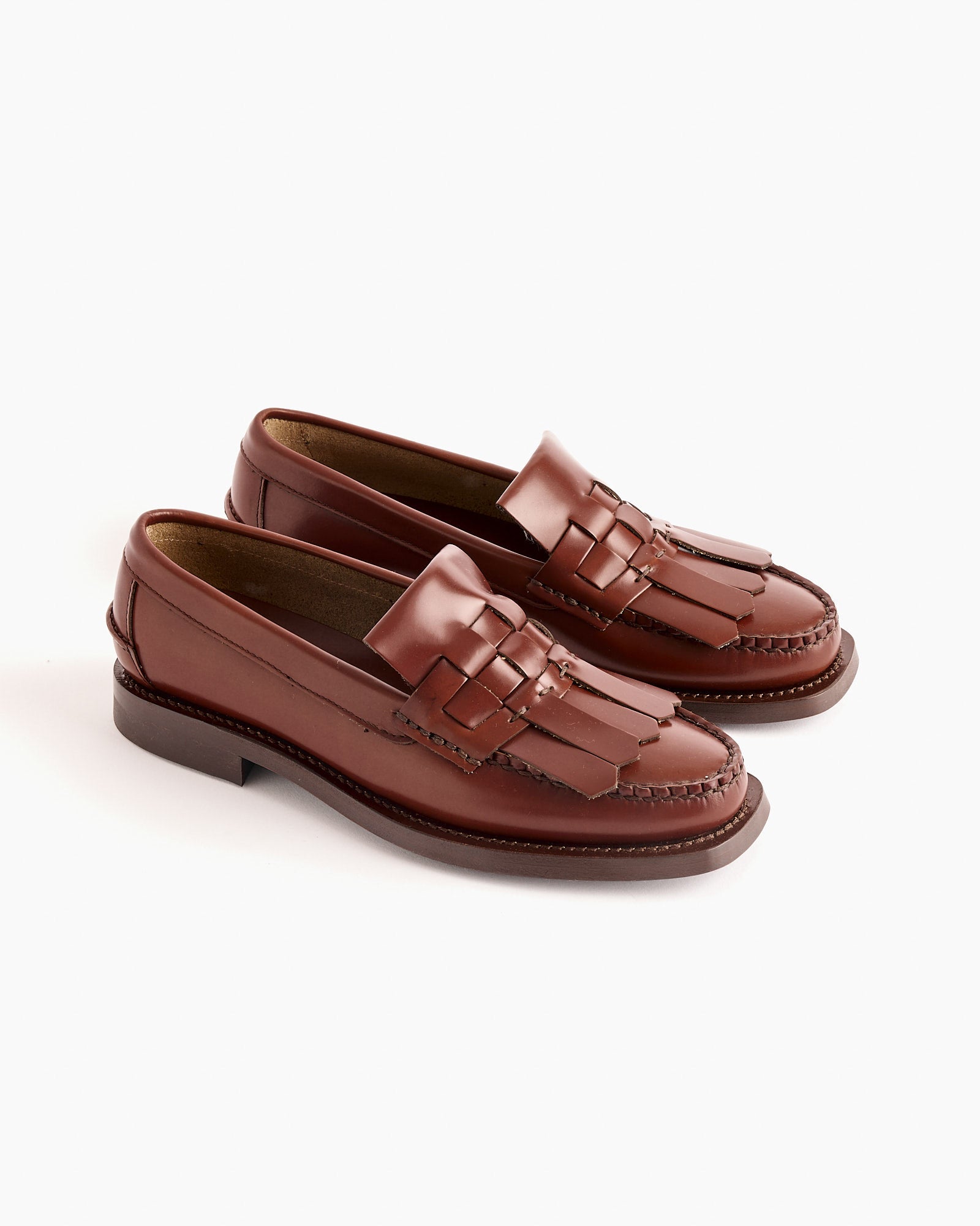 Slip-on loafer with interwoven fringe detailing, crafted in structured calf leather.