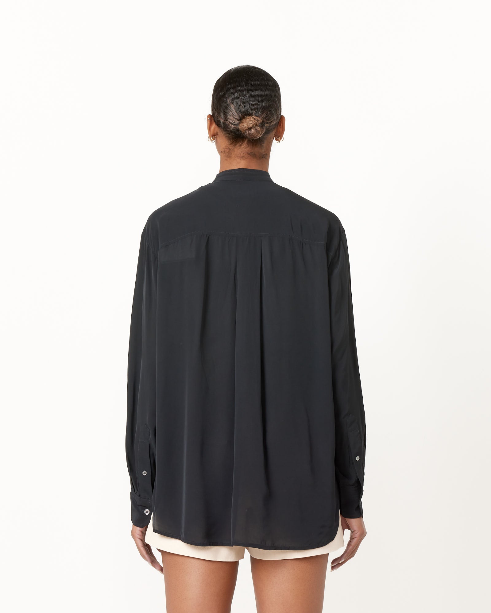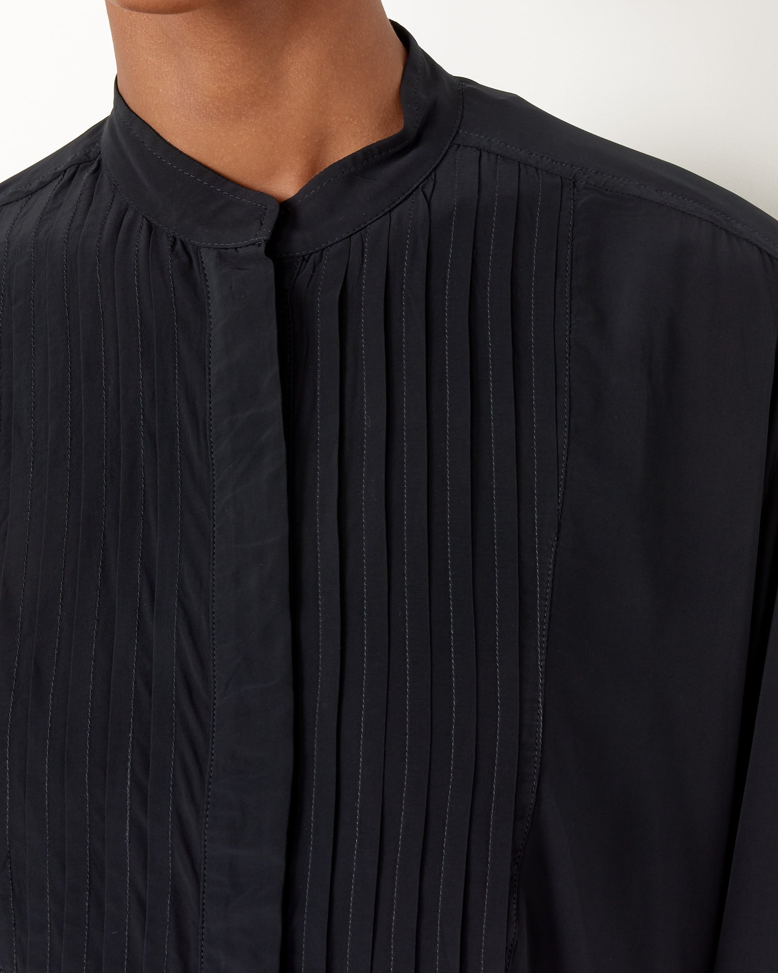Isabel Marant Vestiaire's Amel Blouse is an elevated, modern interpretation of the bib shirt, with a minimal band collar above a bib-shaped group of pleats at the front, and is done in a fluid viscose with a beautiful drape.