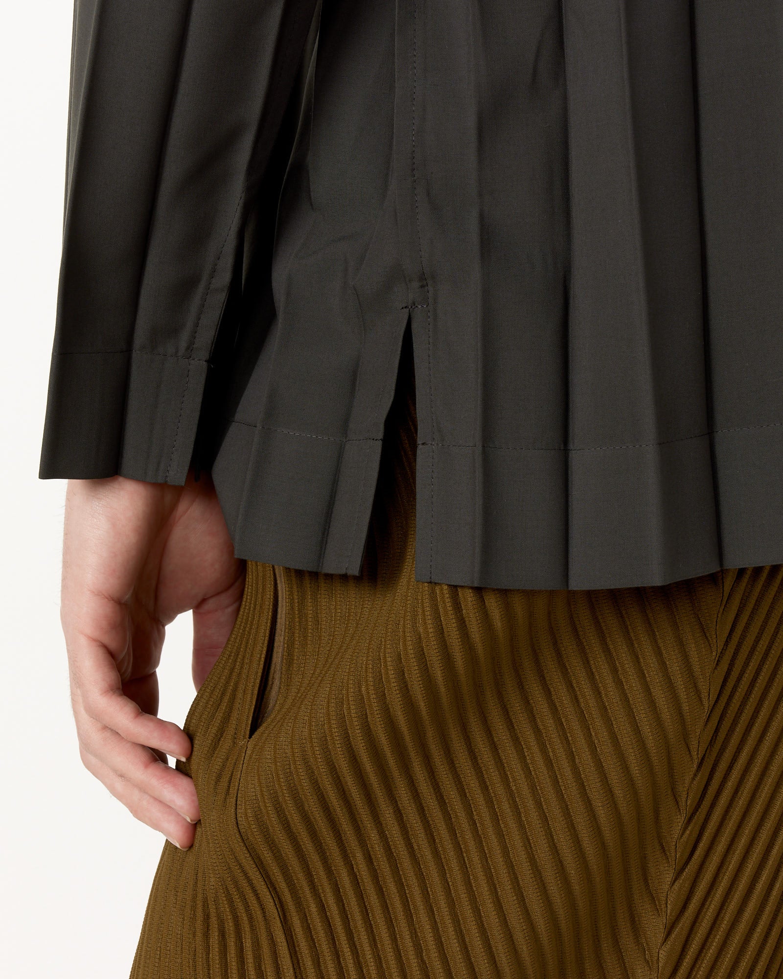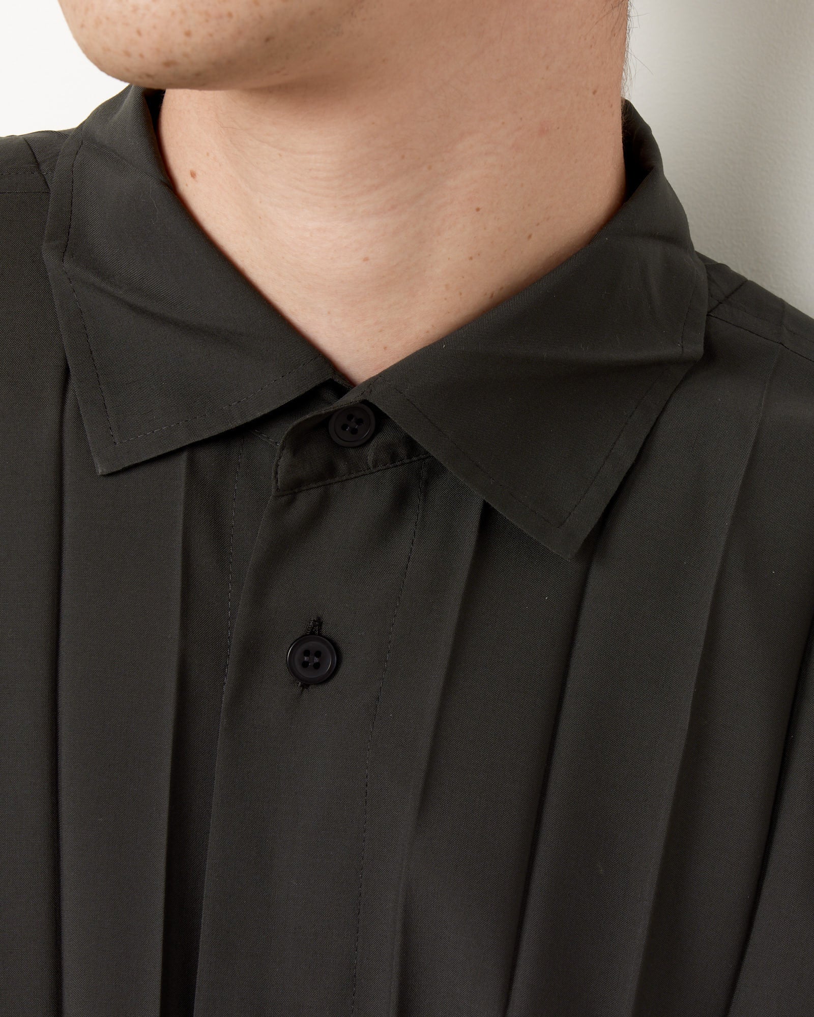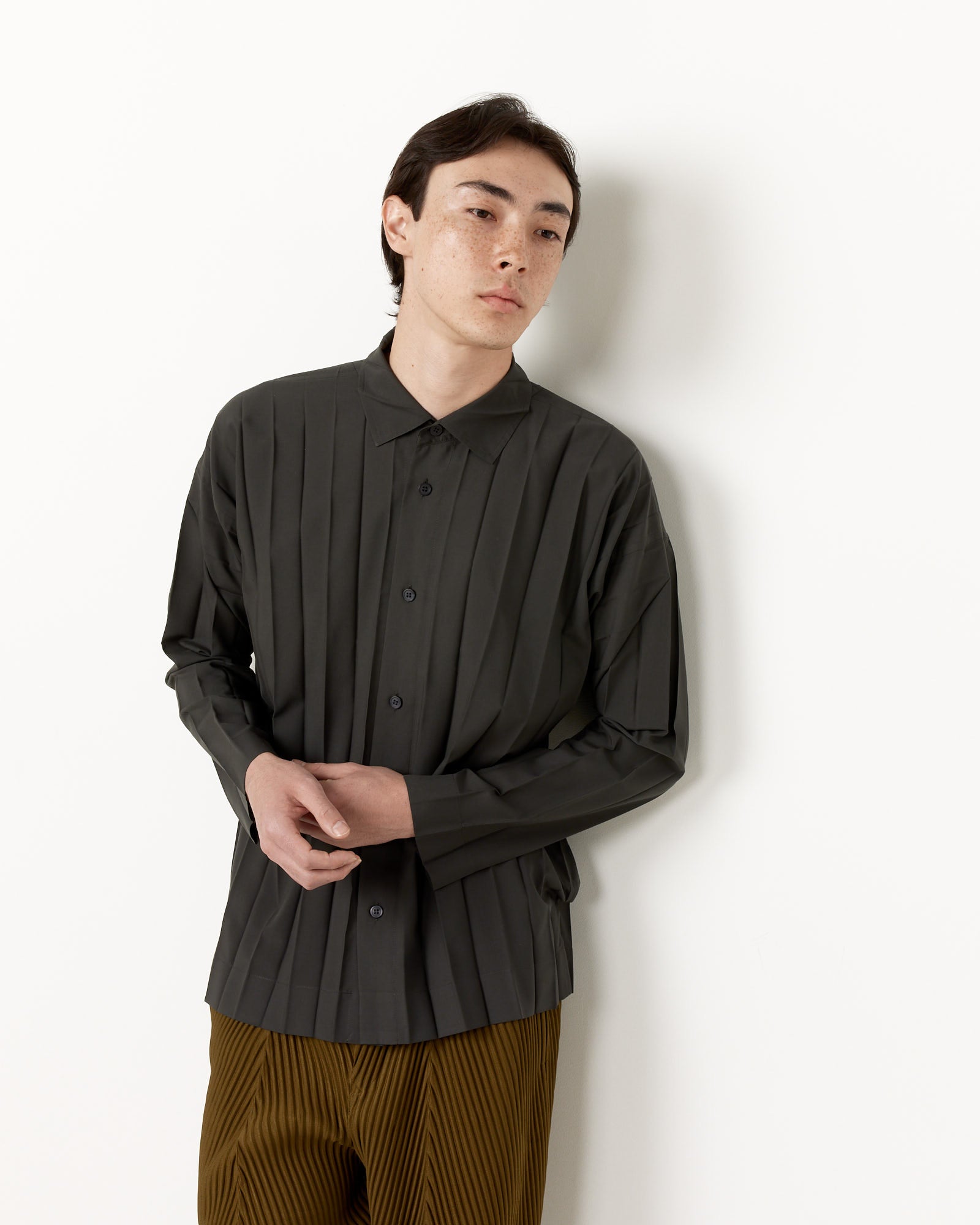 A lightweight shirt done with wide pleats made by hand, Issey Miyake Homme Plisse' Edge Shirt features a tiered design with a point collar, raglan sleeves, and a tailored fit.