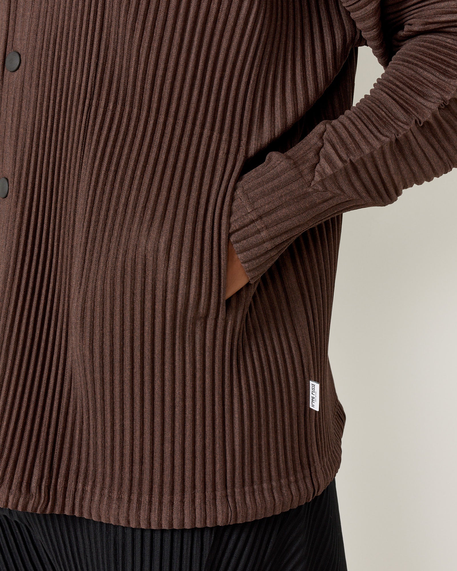 Issey Miyake Homme Plisse' Heather Pleats is a blouson featuring the brand's highly packable wrinkle-resistant garment pleating, a drawcord hem to adjust its fit, dropped shoulders, tapered sleeves, and welt pockets.