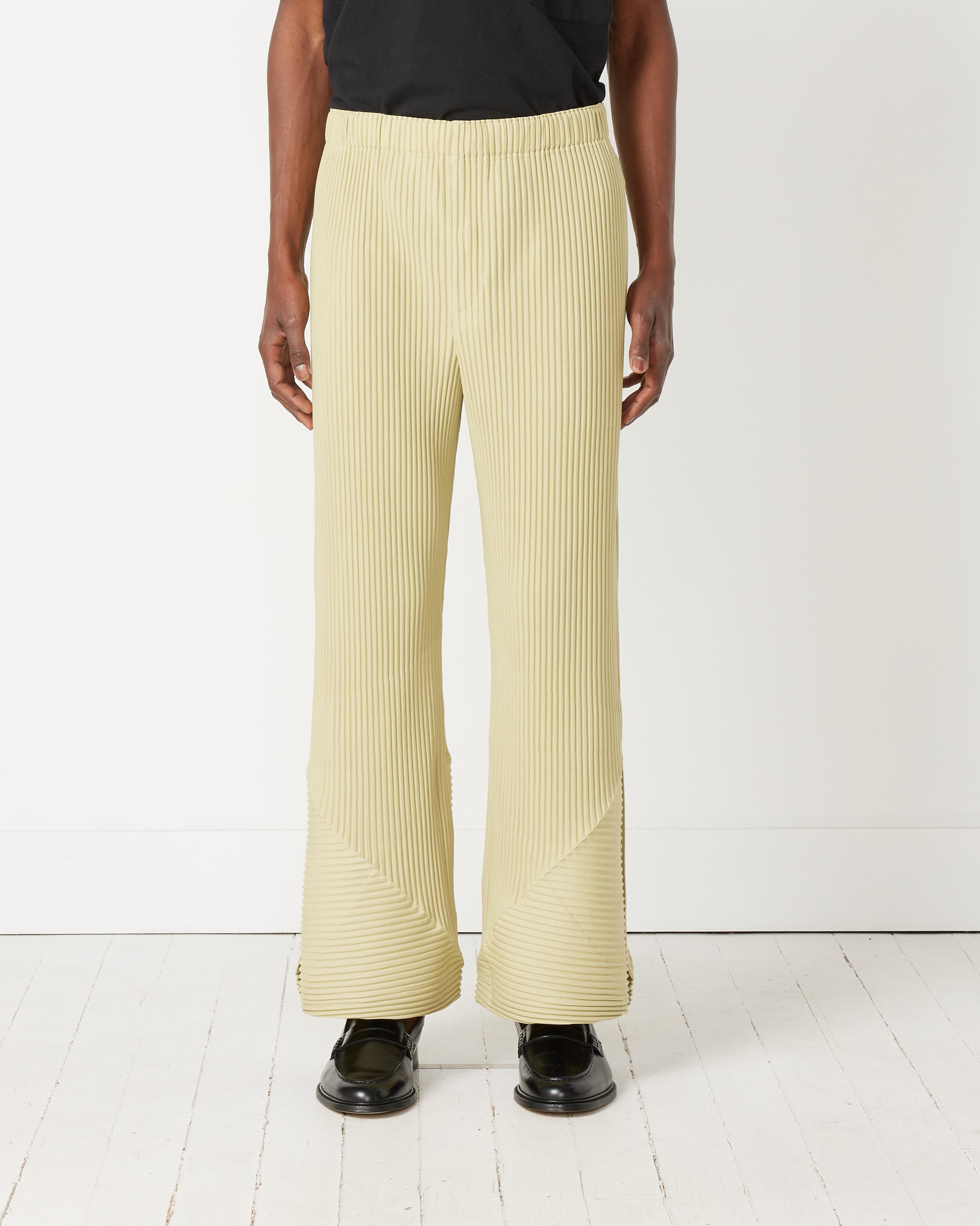 Inspired by the natural shape of plants, Issey Miyake Homme Plisse's JF198 Stem Pant features a flared-leg silhouette with slit hems, a comfortable elasticated waist, a button fly, side seam pockets, and garment pleating throughout.
