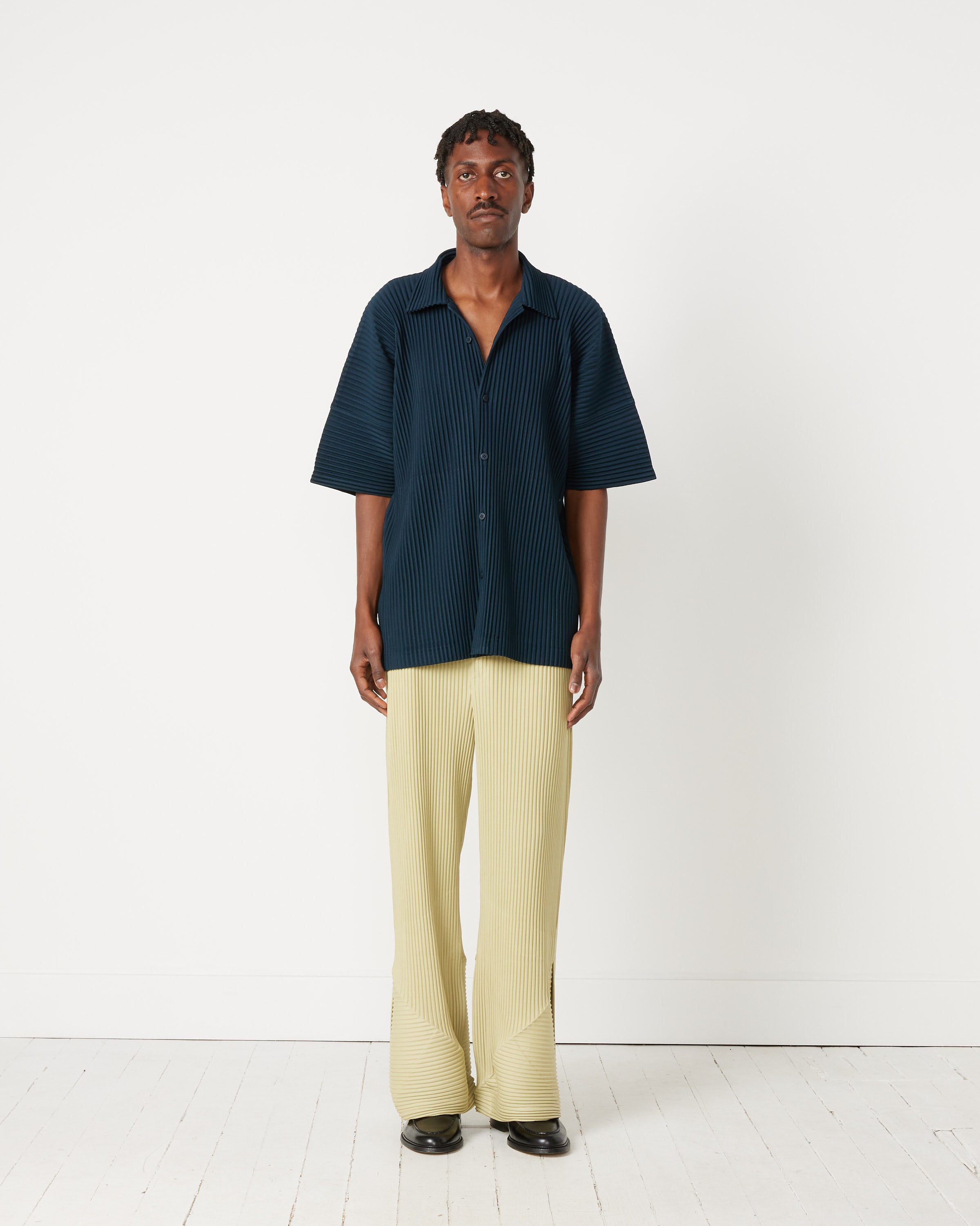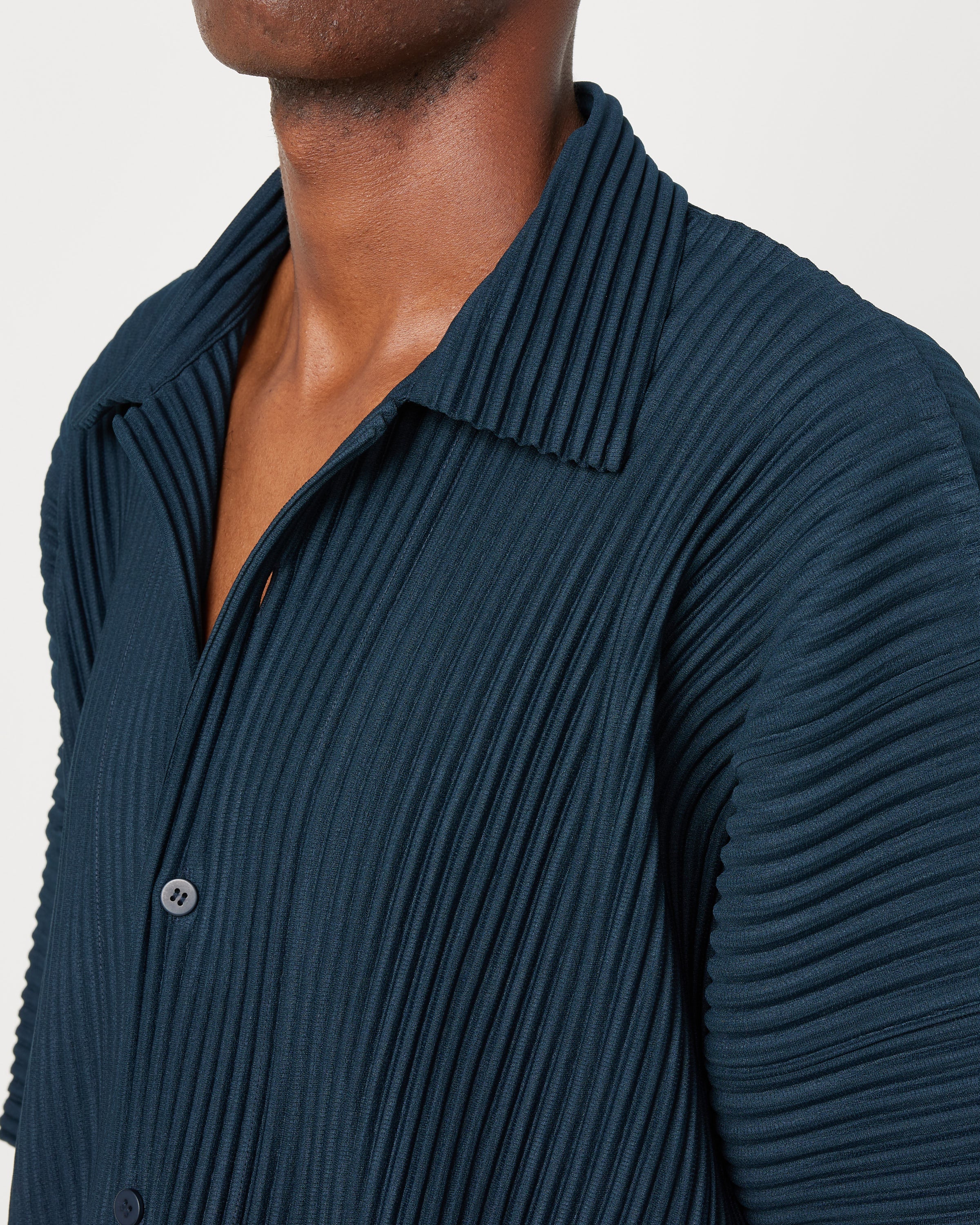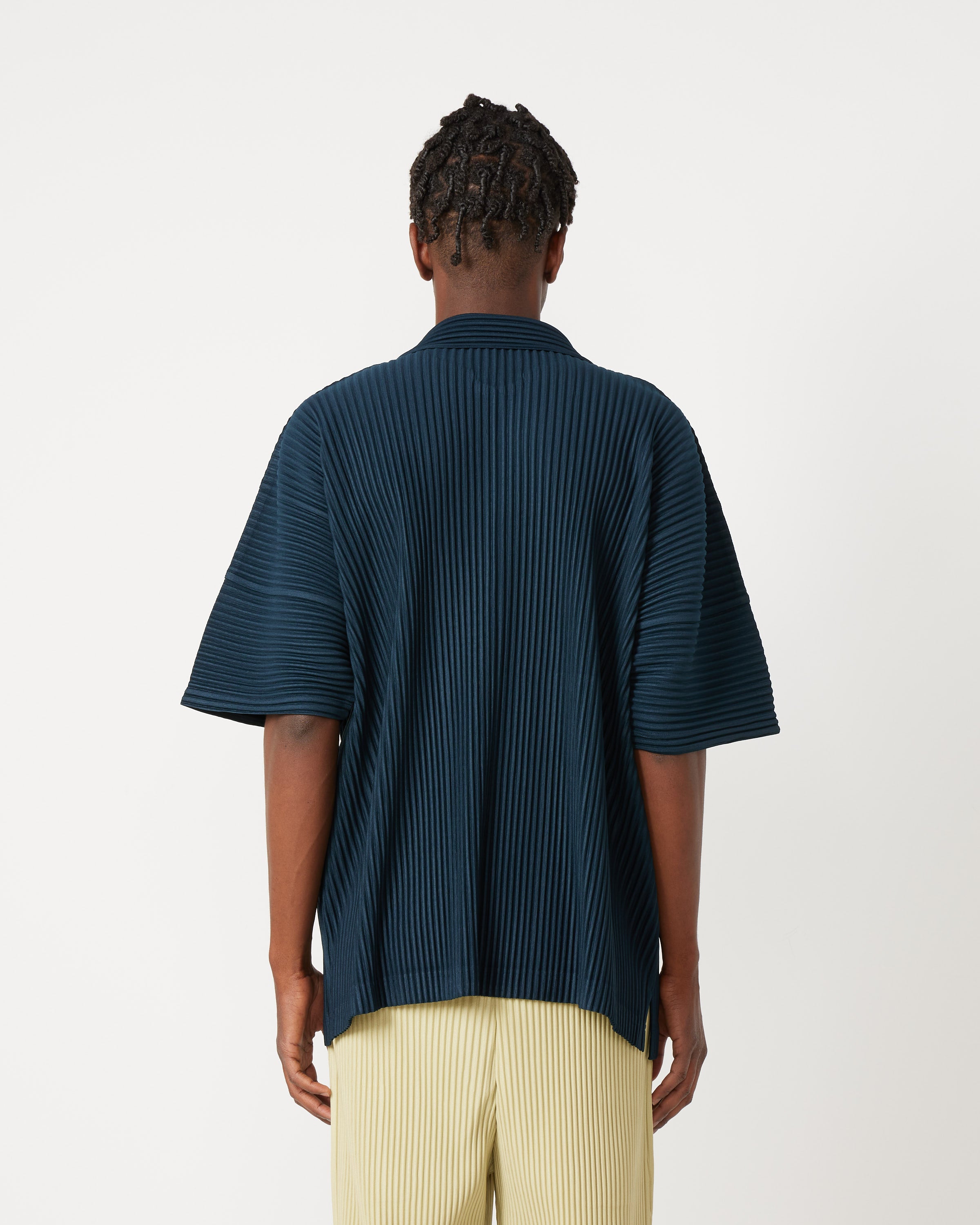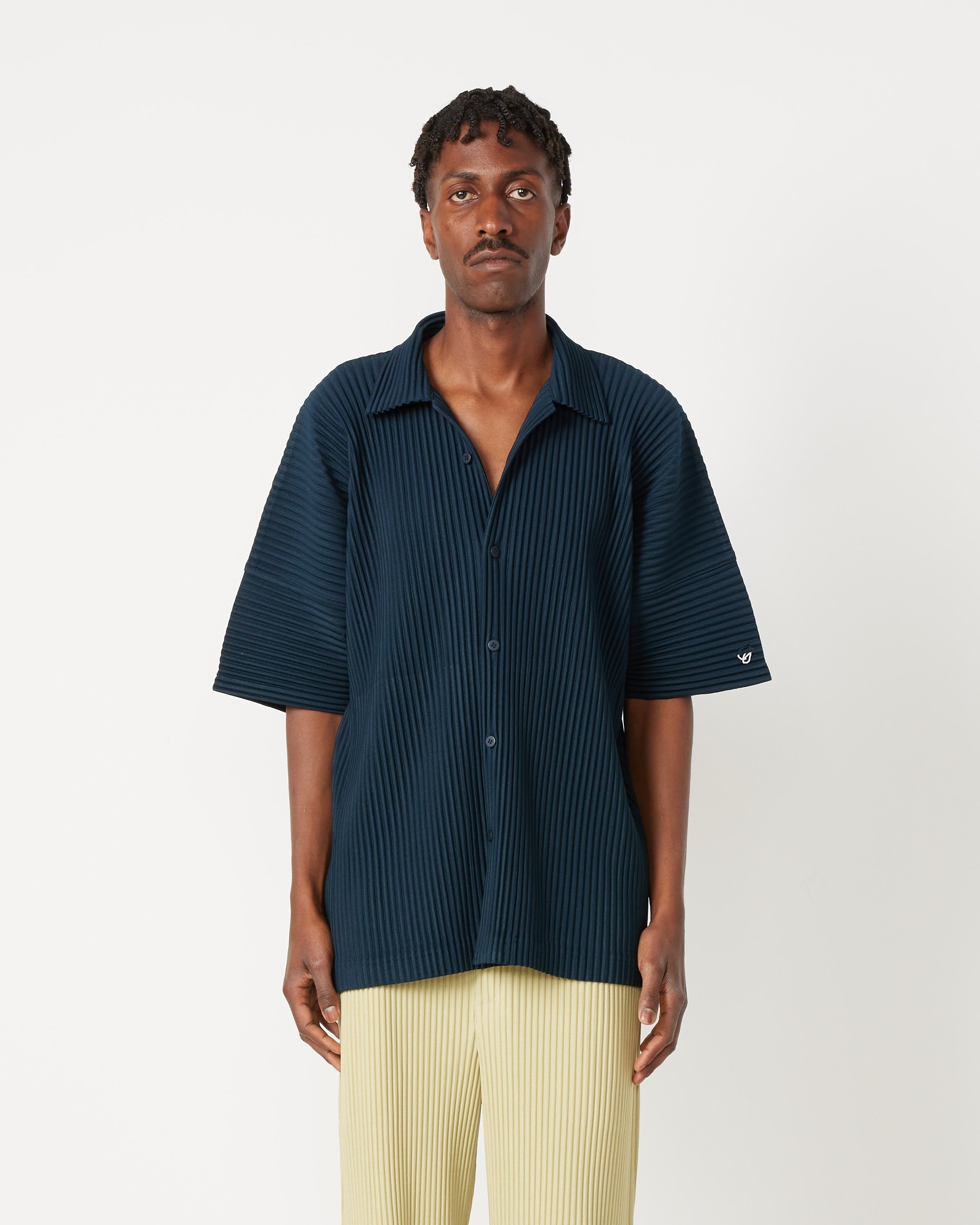 Issey Miyake Homme Plisse's JJ118 MC May Shirt is a relaxed, boxy-fitting top crafted with a textured garment pleating technique that allows the shirt to easily fold up and pack away without any creases or wrinkles.