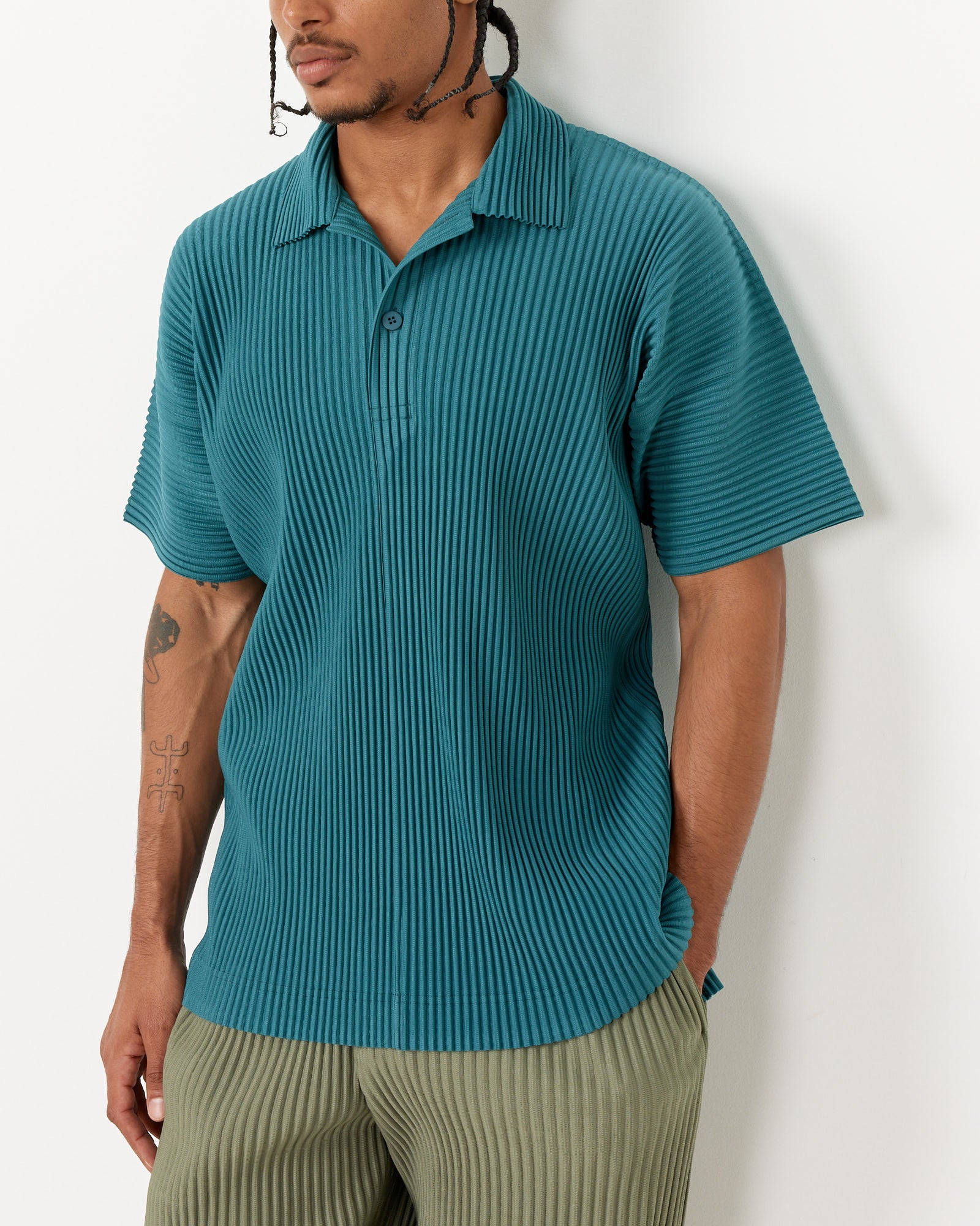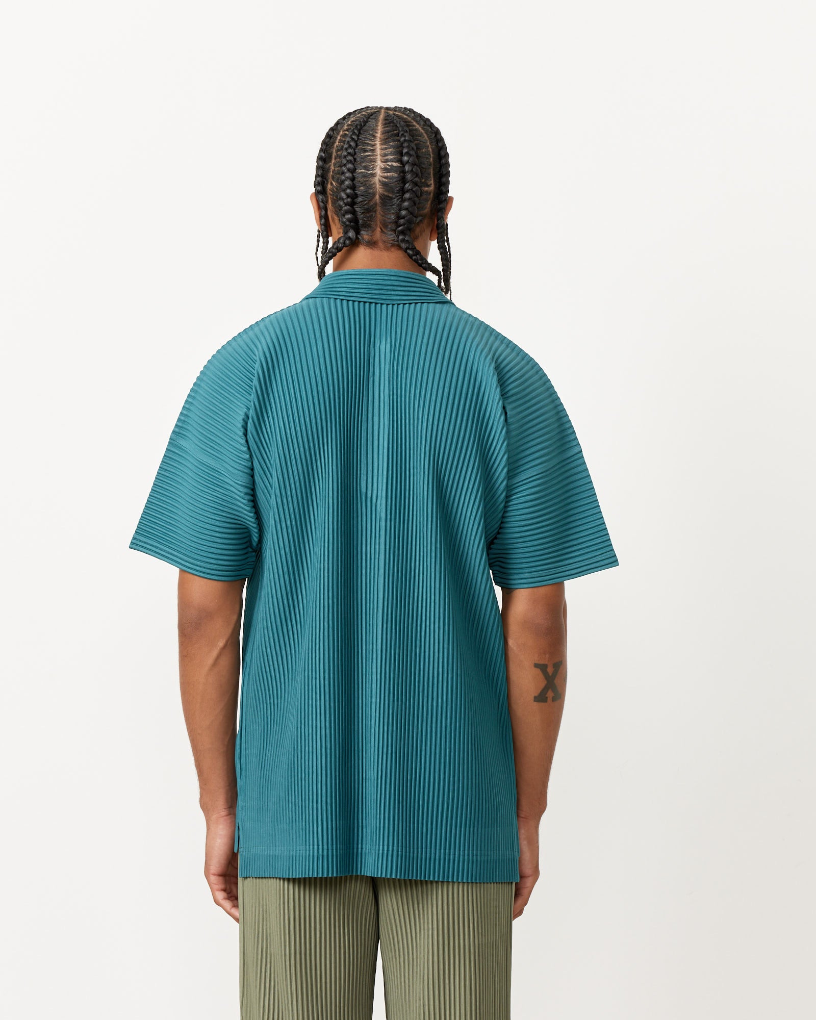 Homme Plissé Issey Miyake's highly-packable, travel-friendly MC May Shirt features the brand's iconic wrinkle-resistant garment pleating, a spread collar with a single-button closure, dropped shoulders, and a boxy silhouette.