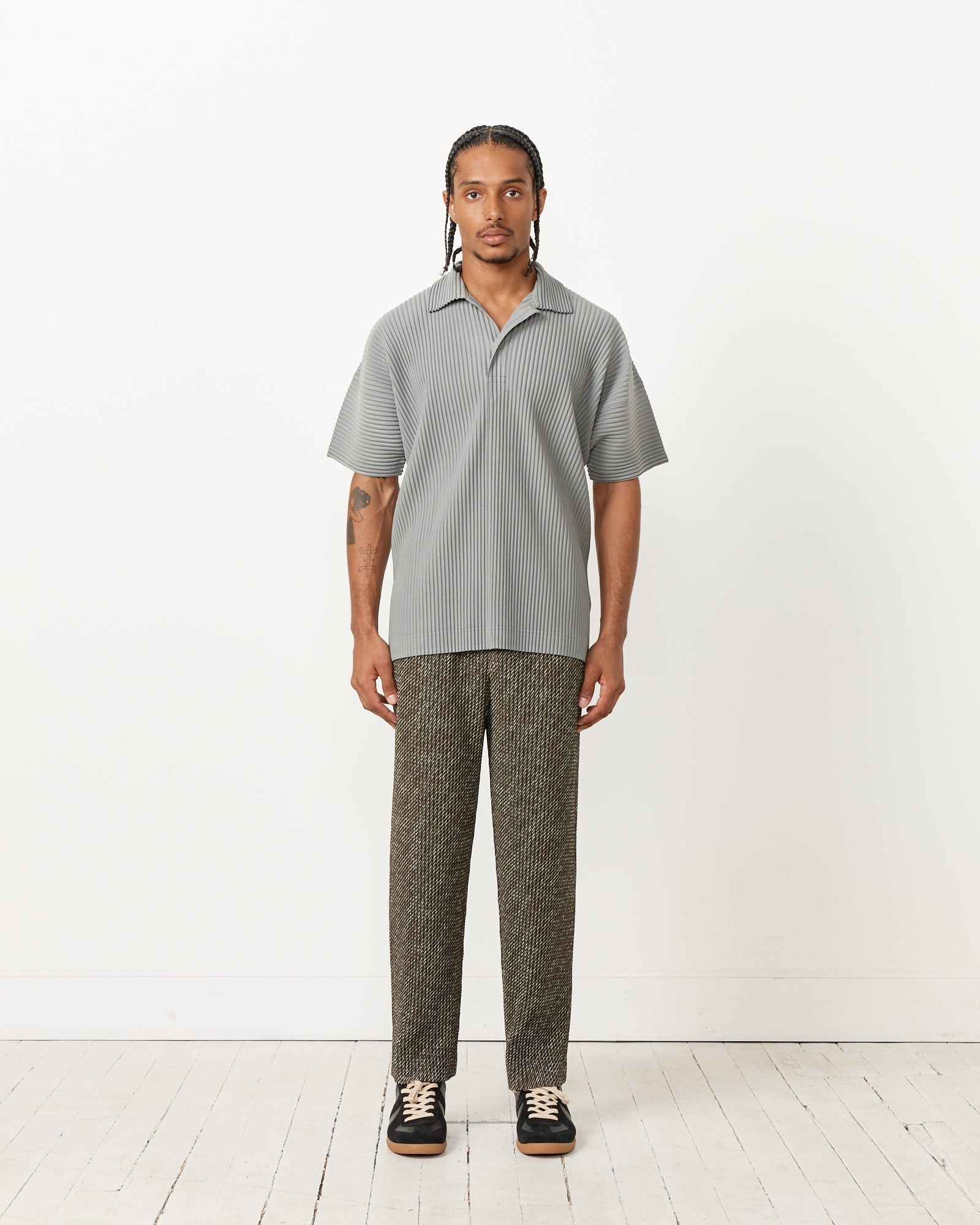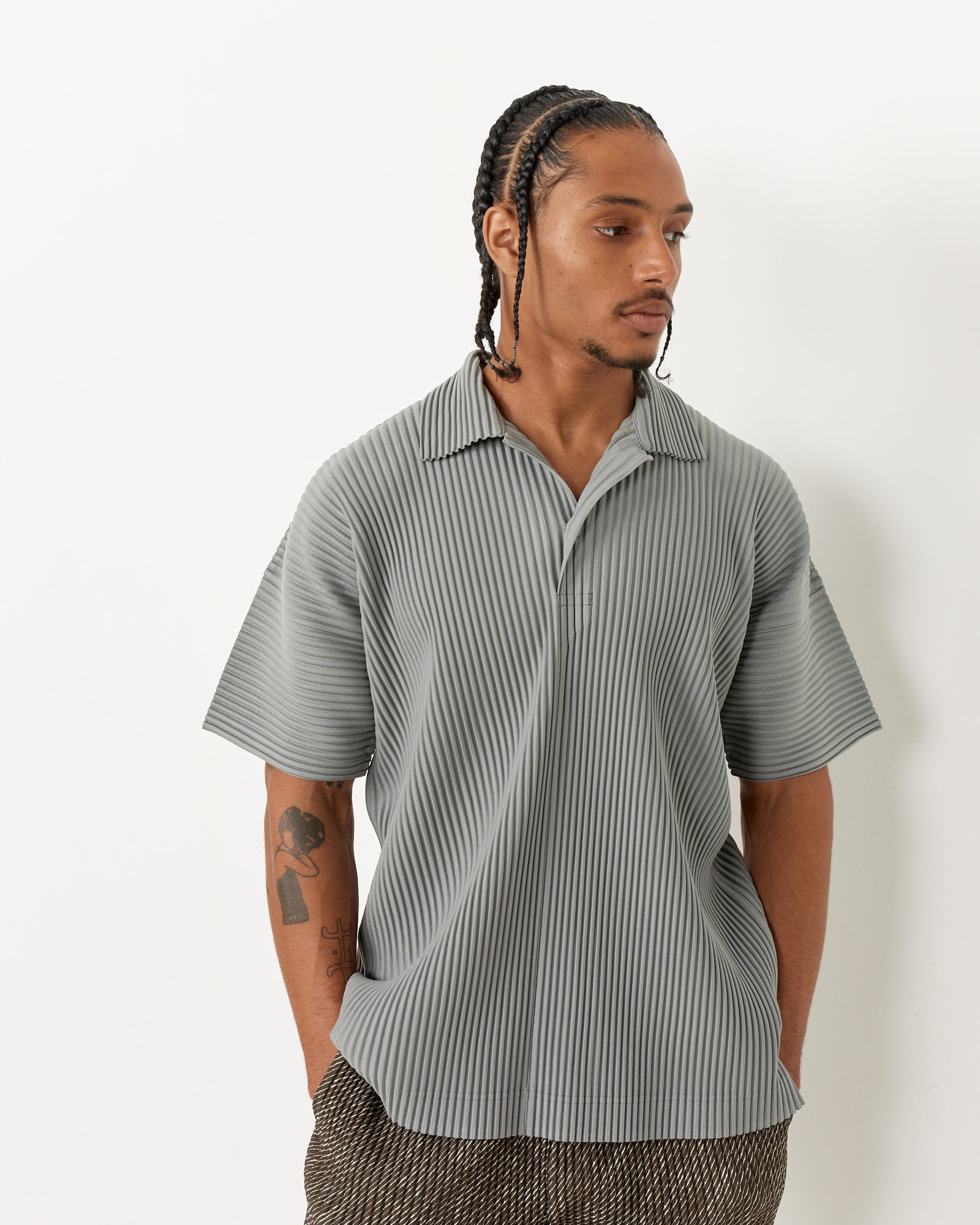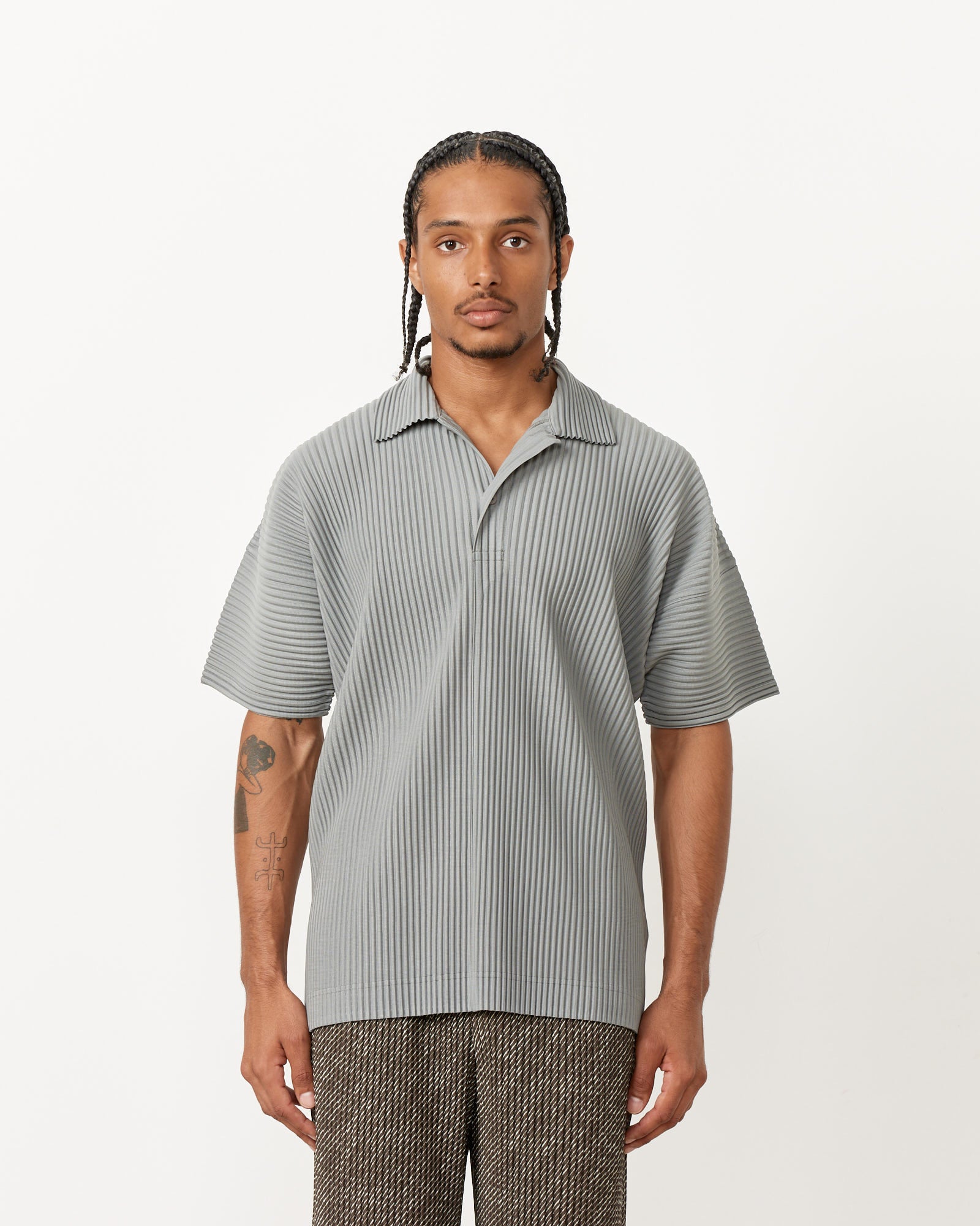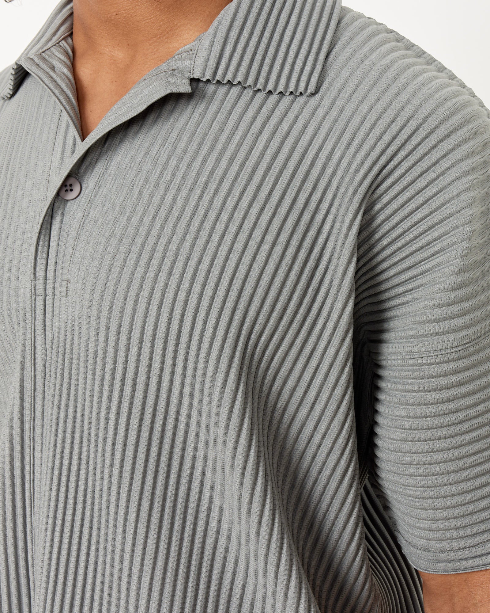 Homme Plissé Issey Miyake's highly-packable, travel-friendly MC May Shirt features the brand's iconic wrinkle-resistant garment pleating, a spread collar with a single-button closure, dropped shoulders, and a boxy silhouette.