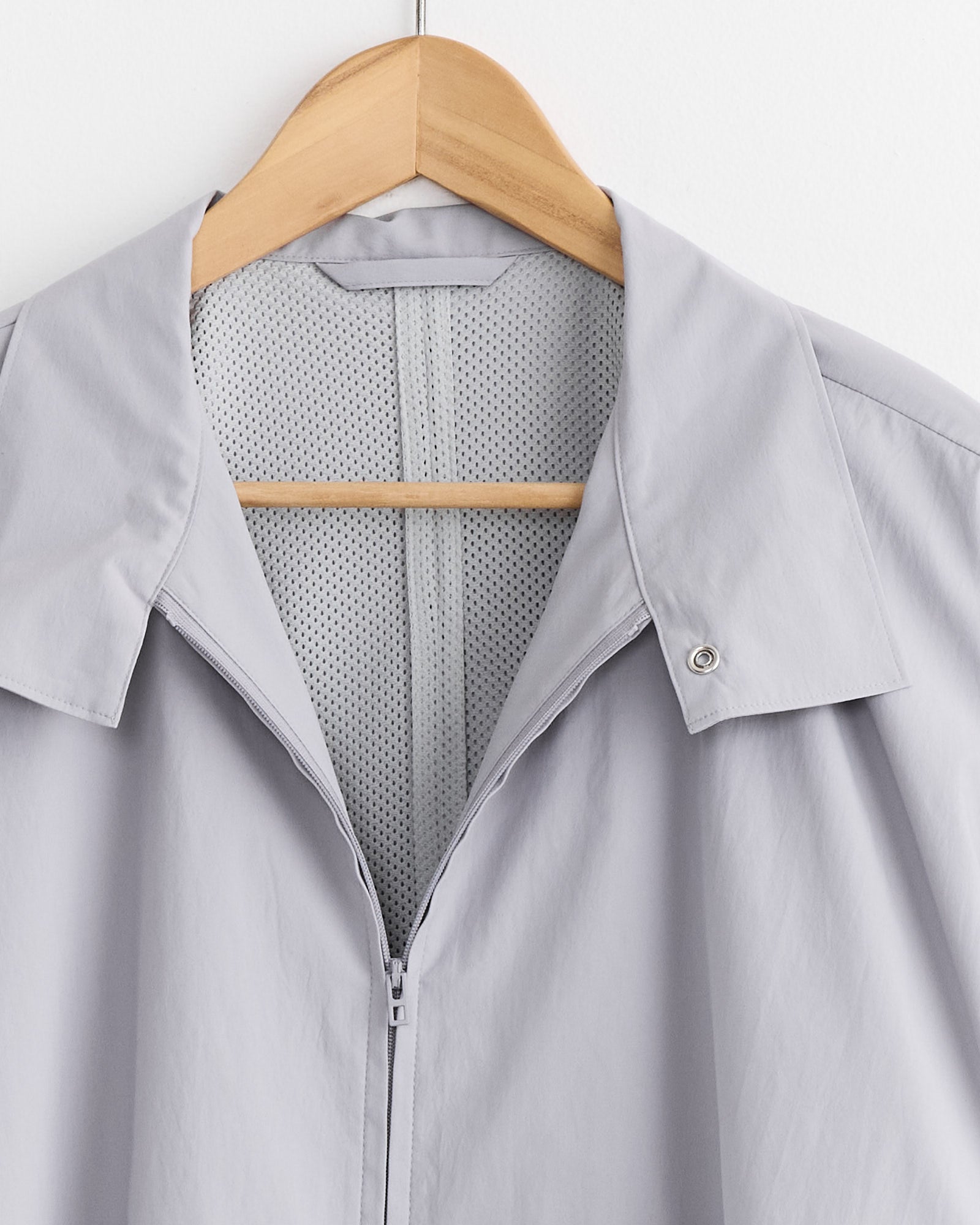 The Issey Miyake Homme Plissé Packable Shirt in Black features a long-sleeved design with a two-way zip closure and a stand collar with a snap button. Its relaxed fit and lightweight construction provide ease of movement and comfort. Made from uniquely textured fabric, it offers an airy, soft feel while maintaining the brand's signature pleated structure.