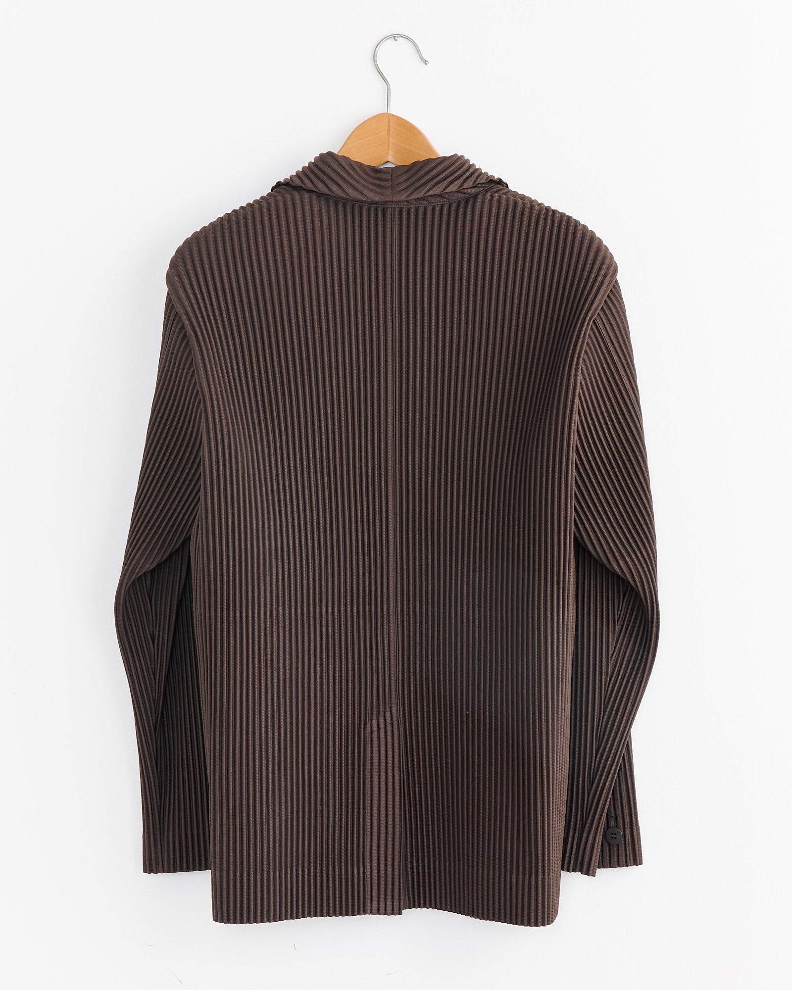 The HOMME PLISSÉ ISSEY MIYAKE Tailored Pleats 2 Blazer in Mud Brown combines classic tailoring with the ease of pleated fabric. Designed with a three-button closure, side and inner pockets, and a back vent, it offers both structure and comfort. Partially lined for lightweight layering and designed with practicality in mind.