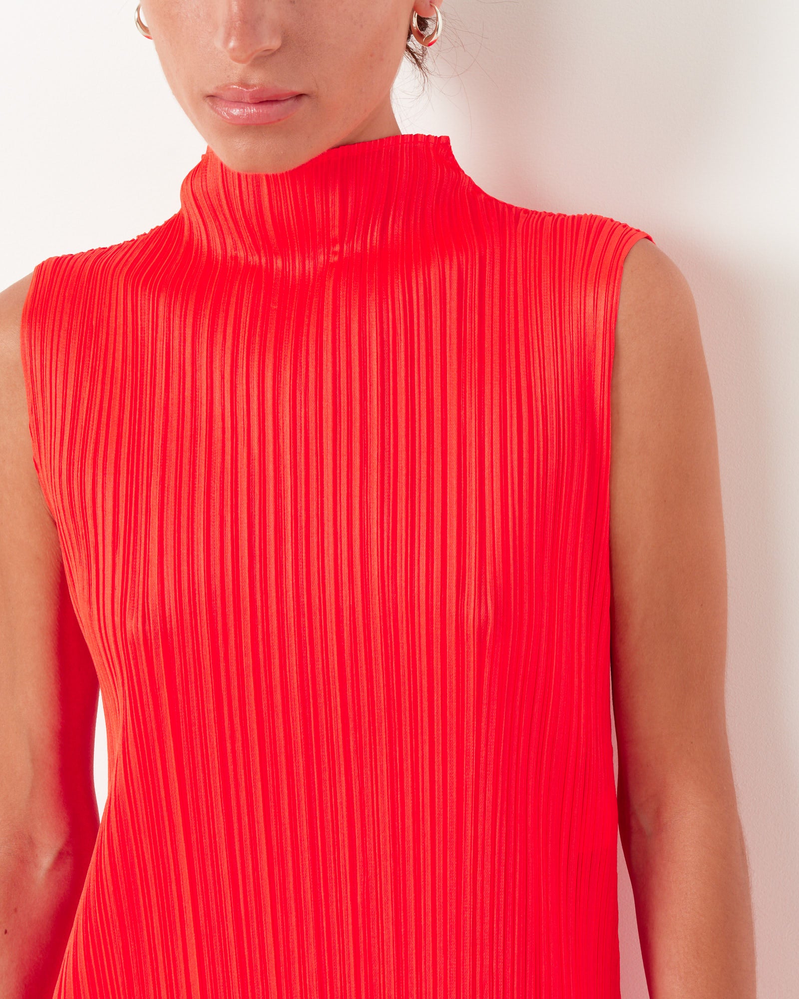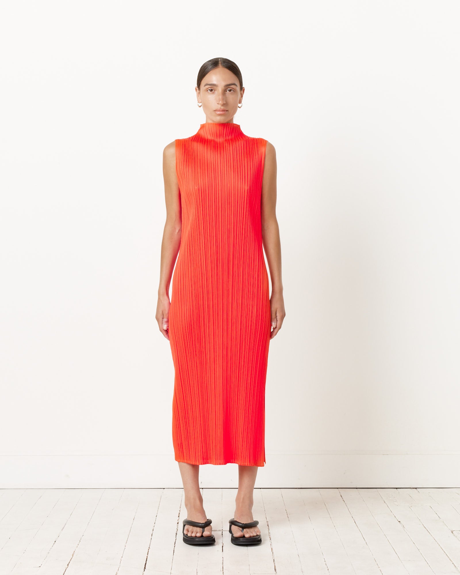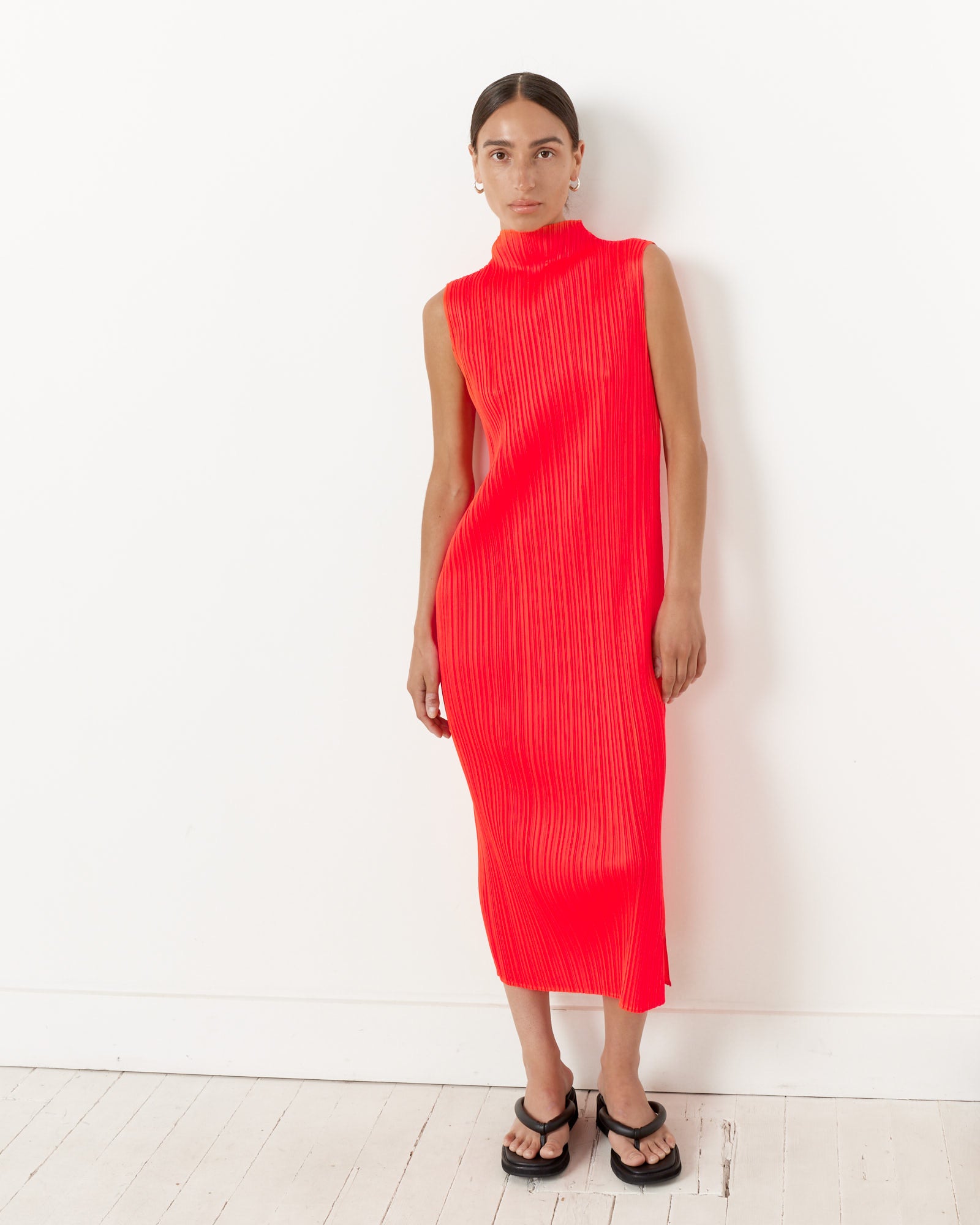 Done in Issey Miyake's iconic garment-pleated fabric that's highly packable and wrinkle-resistant, making it ideal for travel, the Pleats Please MC April Dress is done in a spicy vegetable tone and features a high neck, a straight fit, and two side slits.