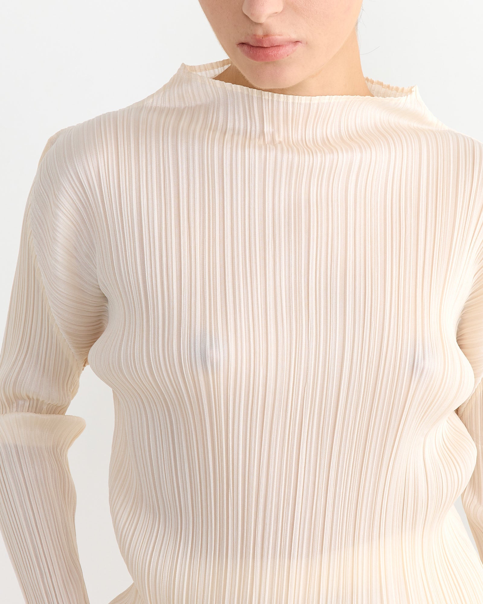 The Pleats Please Issey Miyake MC Dec Top in Off White showcases the brand's signature pleating in a versatile silhouette. Crafted from lightweight, wrinkle-resistant fabric, it combines effortless style with practicality.