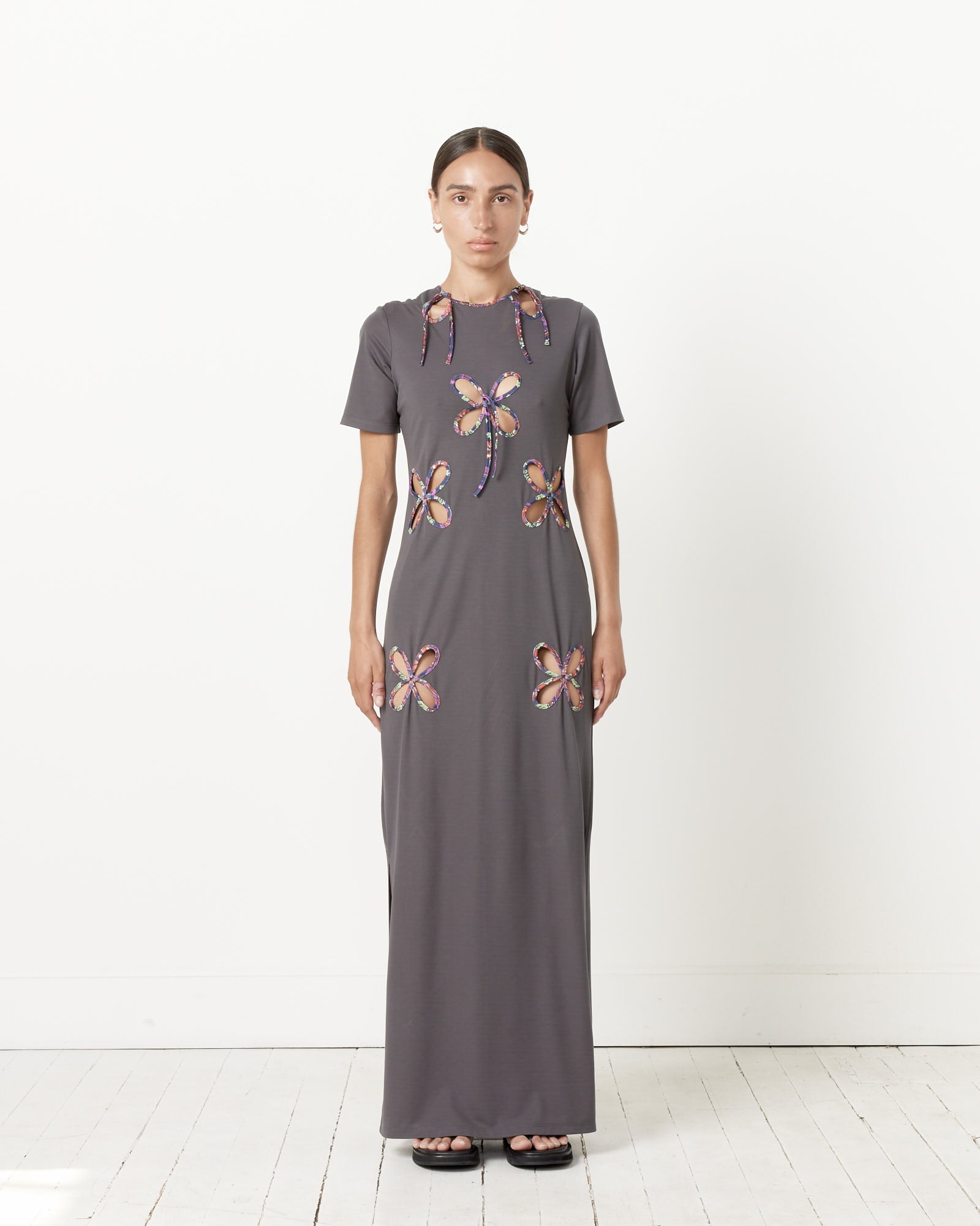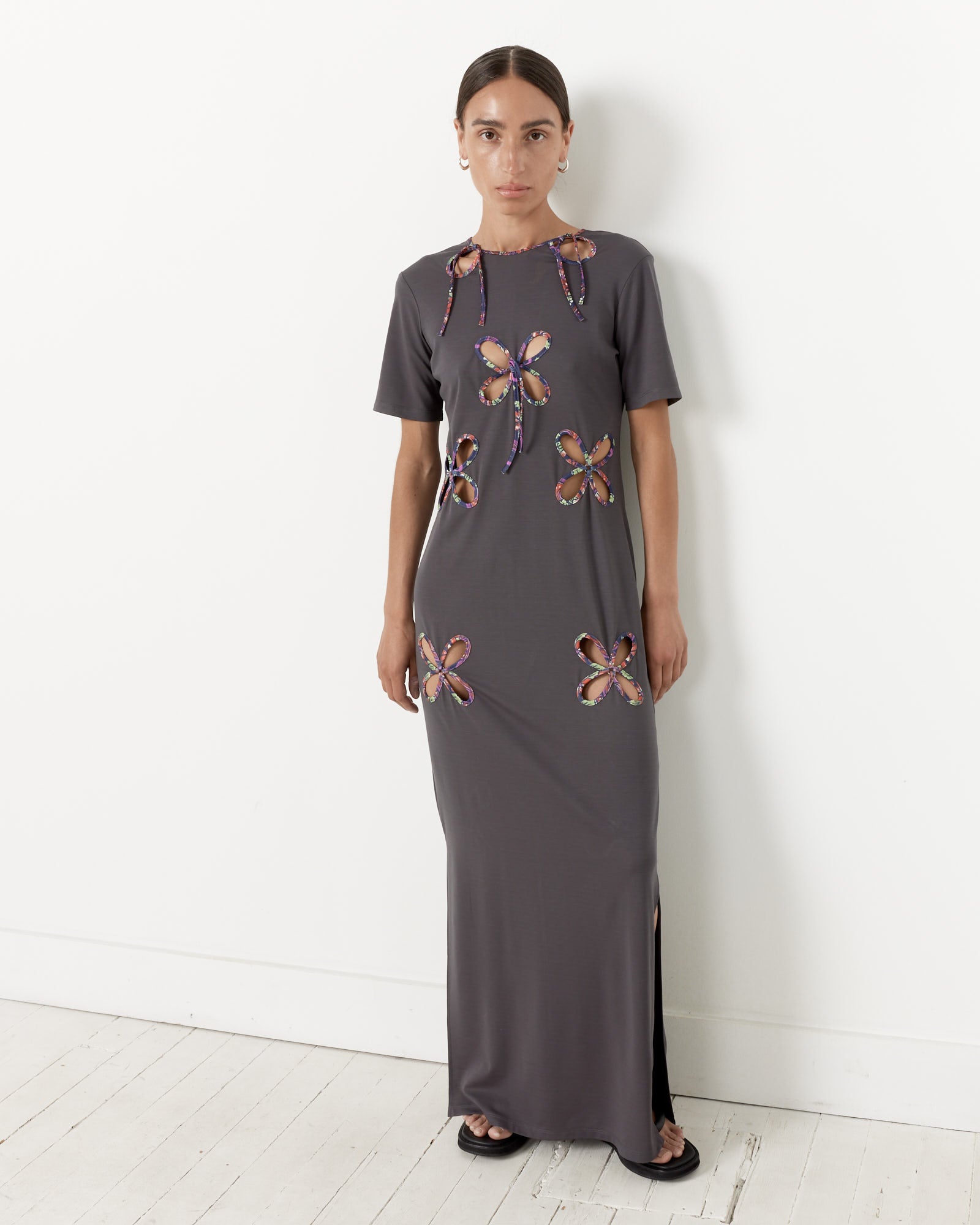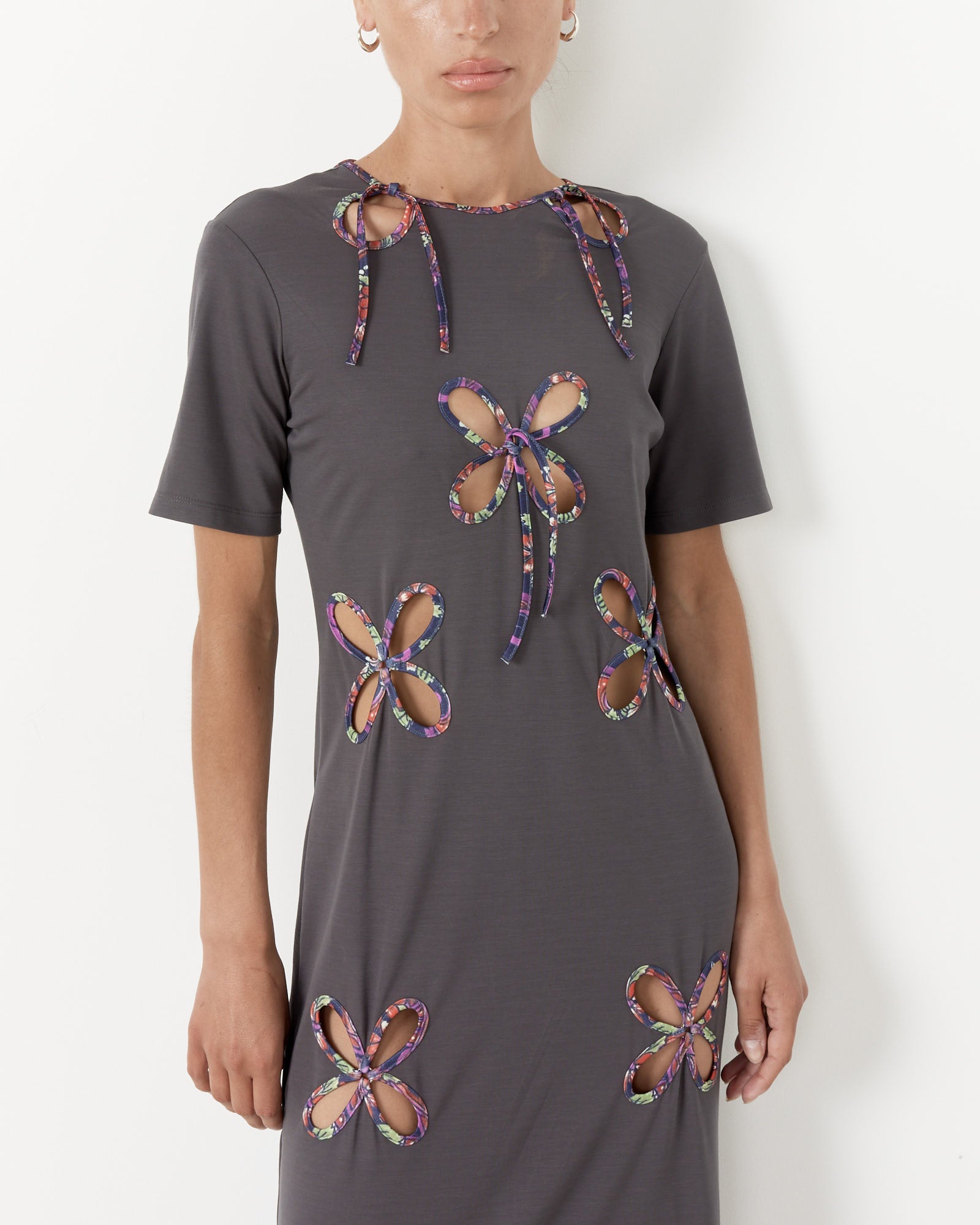 J. Kim's Petal Edged Flowers Dress is crafted from a stretch jersey made from a bamboo-blend and features the brand's signature flower petal cutouts with self-tie fastening and floral trim.
