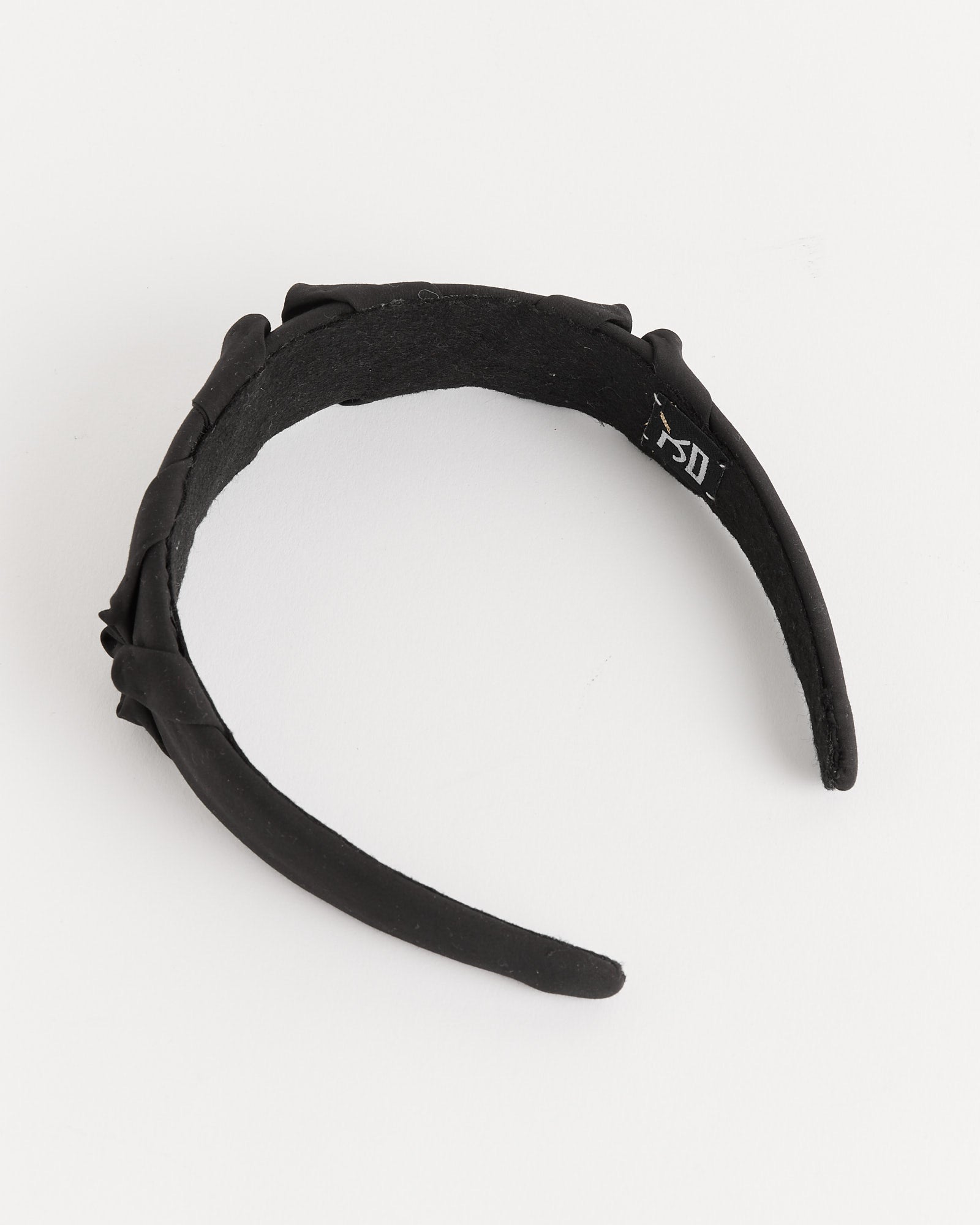 The J.Kim Satin Smocked Flower Headband is crafted from smooth silk satin and detailed with sculpted, smocked floral forms. Each piece is structured yet delicate, creating soft volume that sits comfortably along the head. A subtle statement accessory rooted in craft.