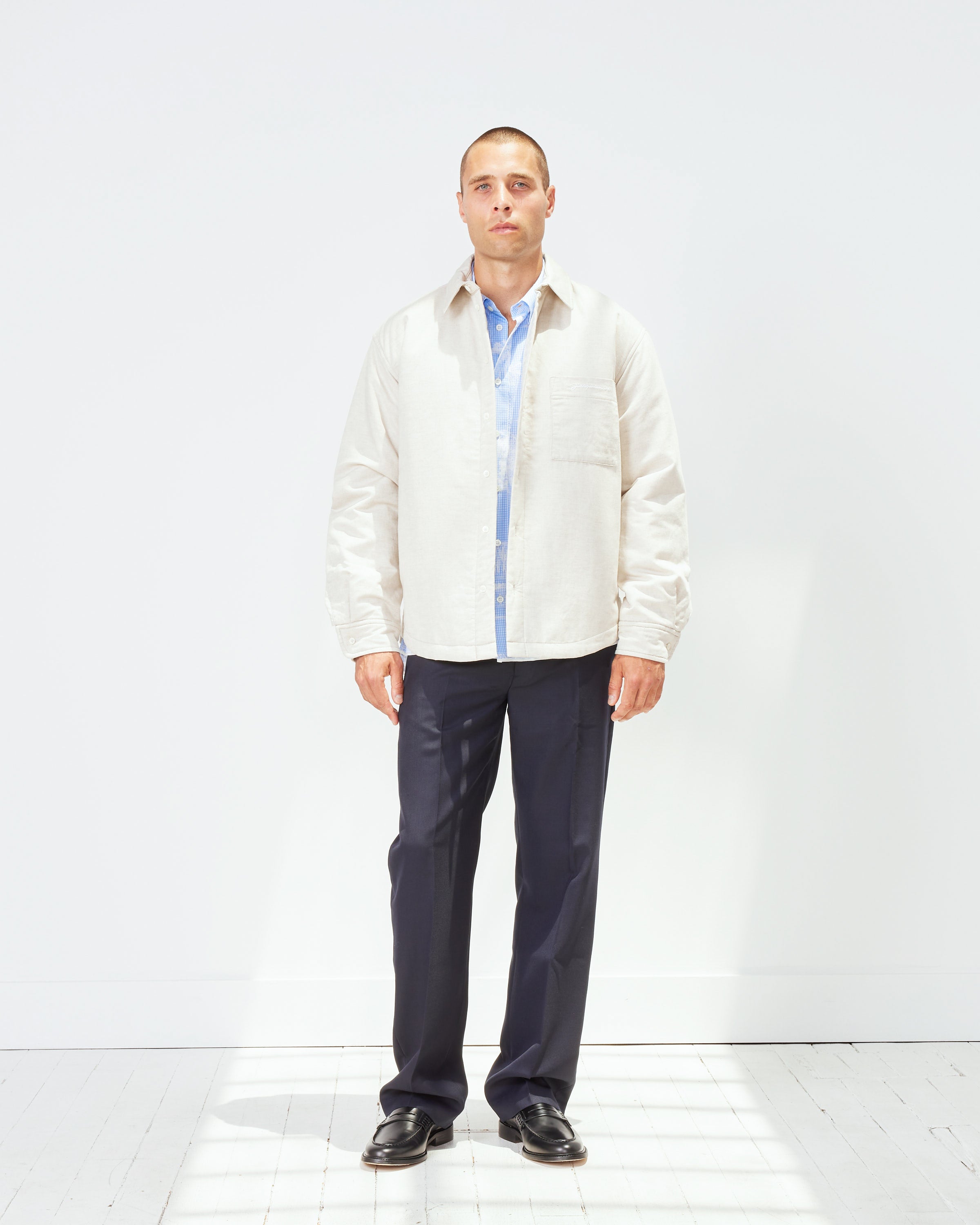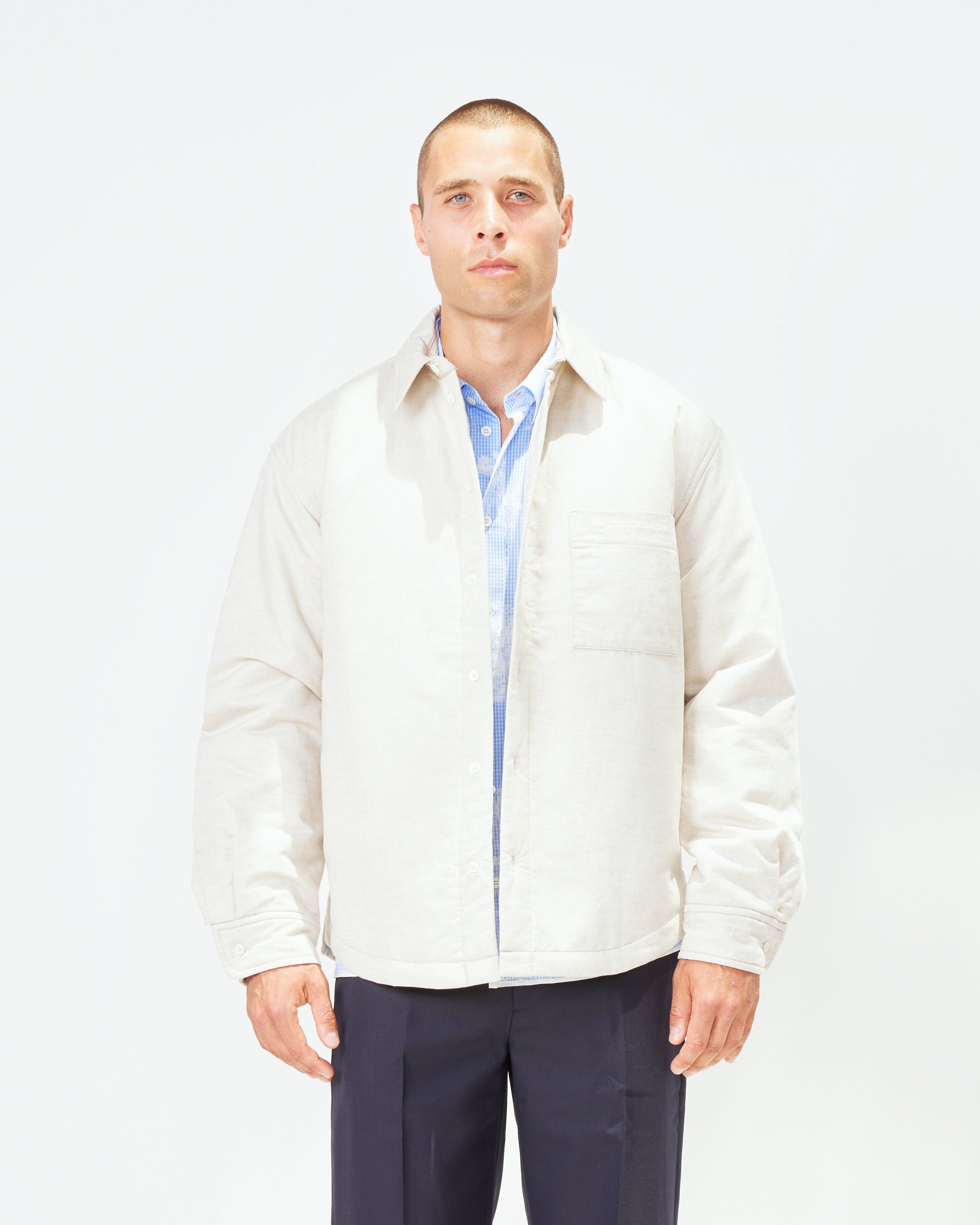 Jacquemus' lined and padded La Chemise Boulanger Shirt makes its return, retaining it's boxy silhouette, chest pocket with embroidered logo, and point collar with button closure, now in updated fabrics for the season.