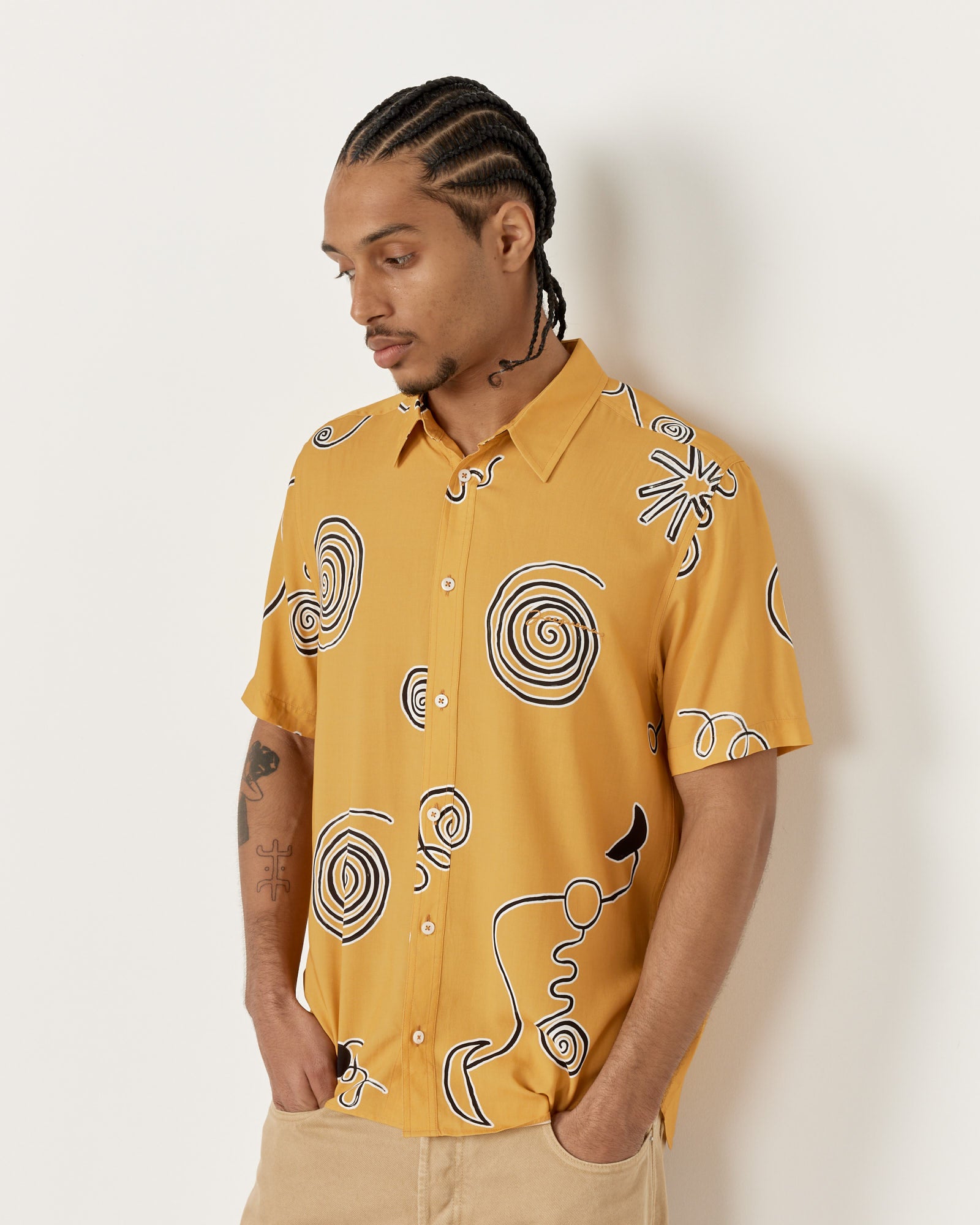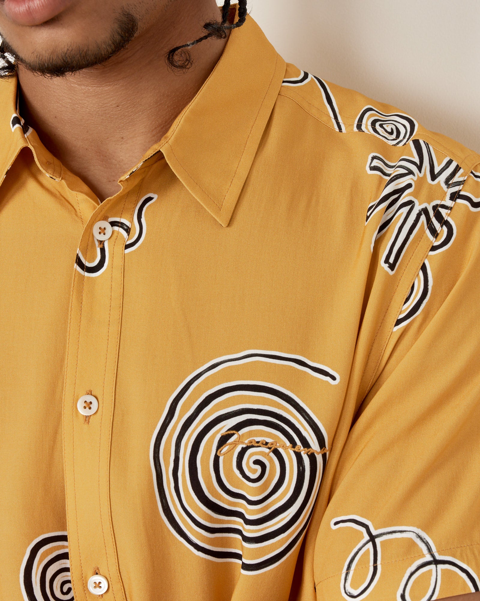 Jacquemus' La Chemise Melo Shirt features a charming, hand-drawn spiral motif printed across its smooth viscose fabric that's cut in a straight fit with elbow-length sleeves, engraved mother-of-pearl buttons, and an embroidered logo at the front.