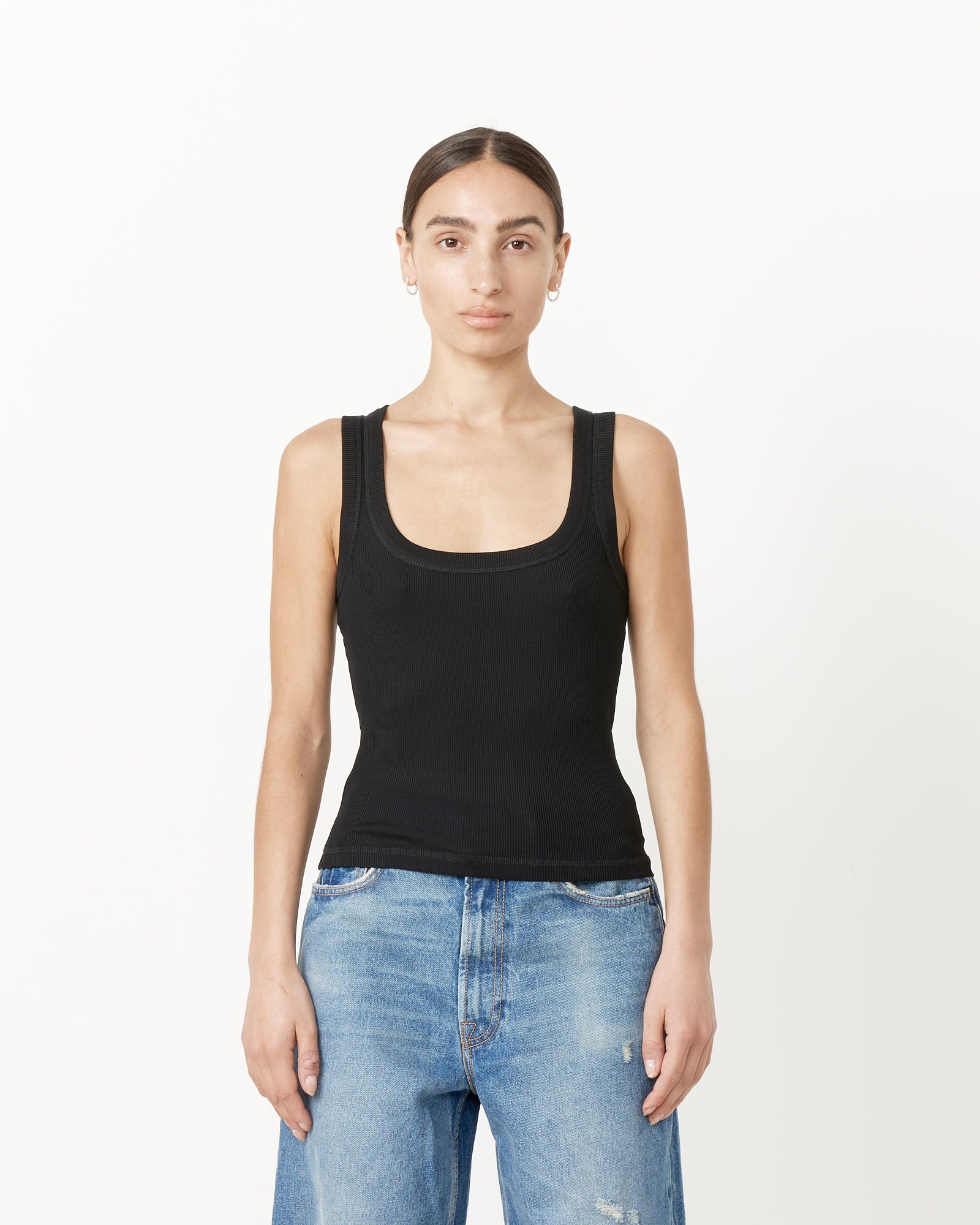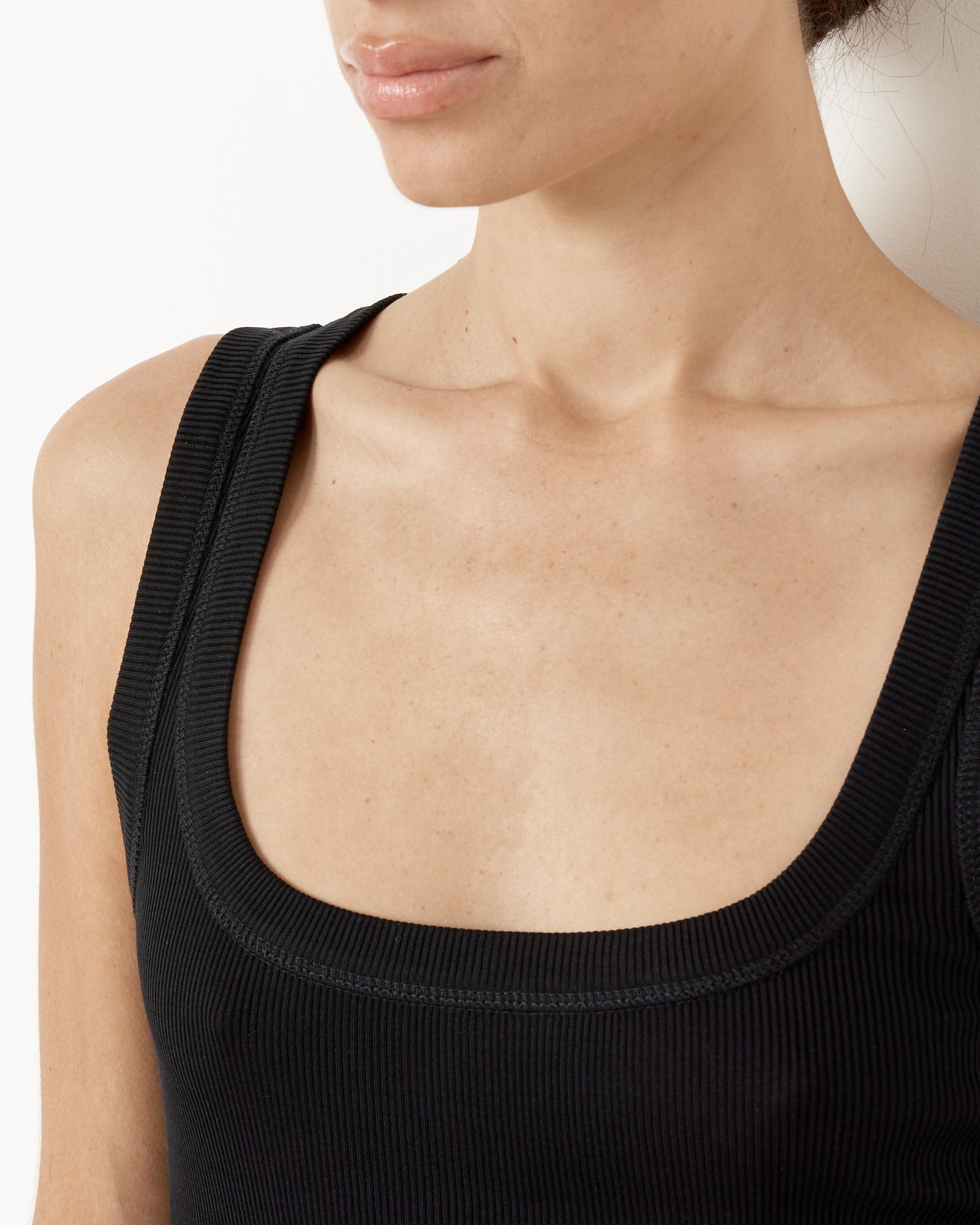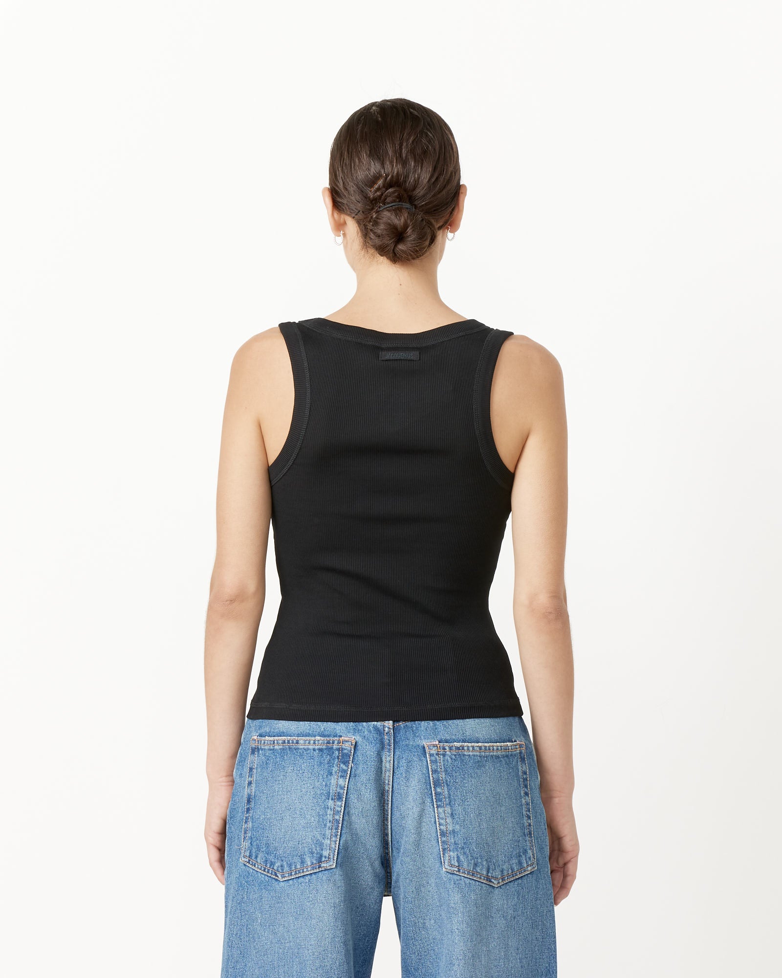 Jacquemus' Le Debardeur Gros Grain Top is a second-skin tank cut done in a Jersey rib with a square neckline, ribbed collar and armholes, and an embroidered grosgrain logo at the back.