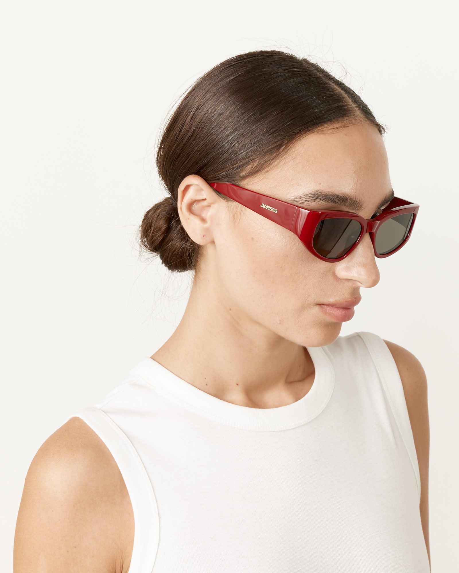 Jacquemus' acetate Les Lunettes Gala Sunglasses are designed in a 90's silhouette with curvilinear lines, and are done with logo detailing at the temples.