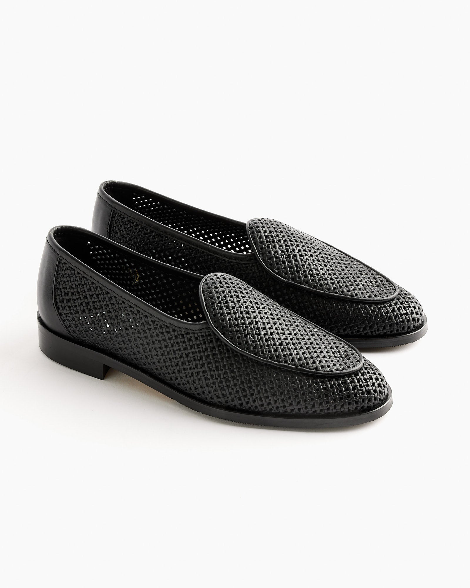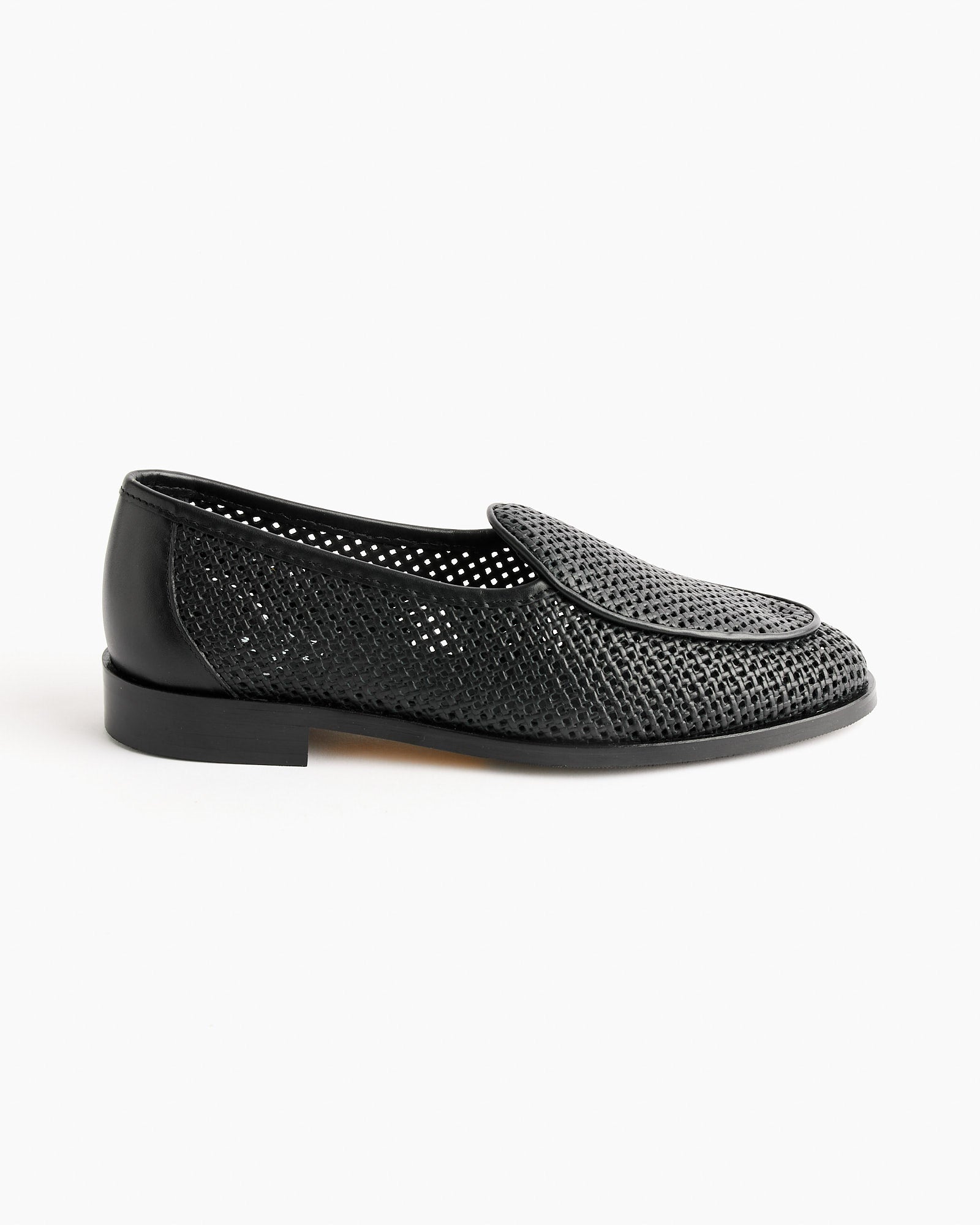 The Jacques New Loafer in Fishnet Black by Jacques Soloviere Paris is a lightweight, breathable take on the brand's signature silhouette. Crafted from soft perforated Nappa leather and trimmed with tonal calf leather, it molds comfortably to the foot with a glove-like fit. Finished with a leather sole and rubber pad, this loafer offers refined ease for spring-summer wear in both city and coastal settings.