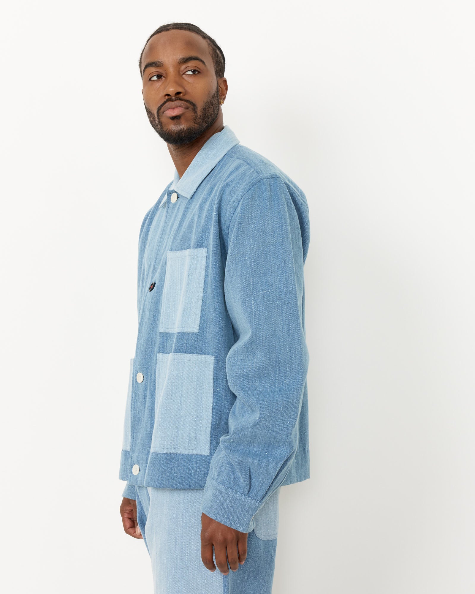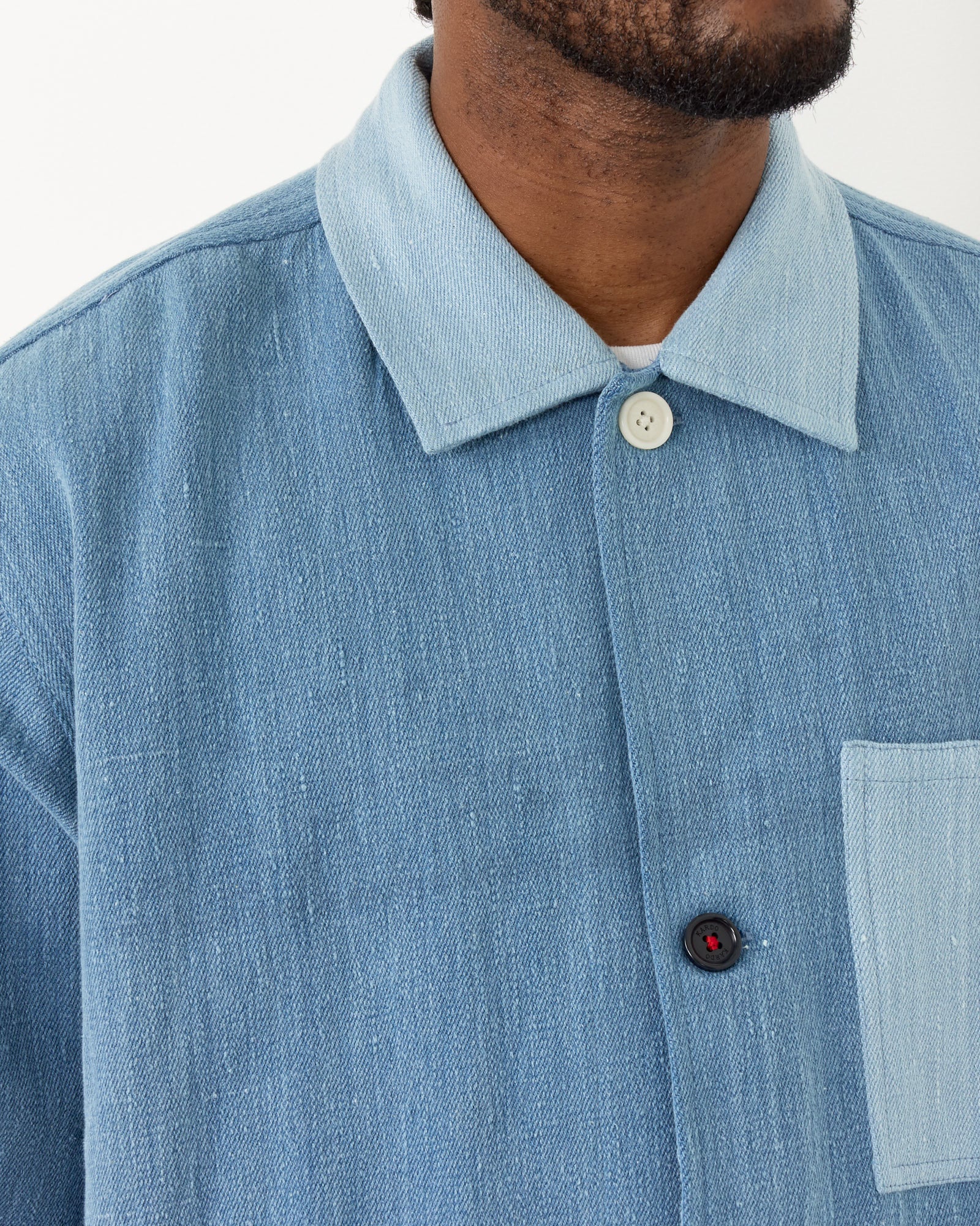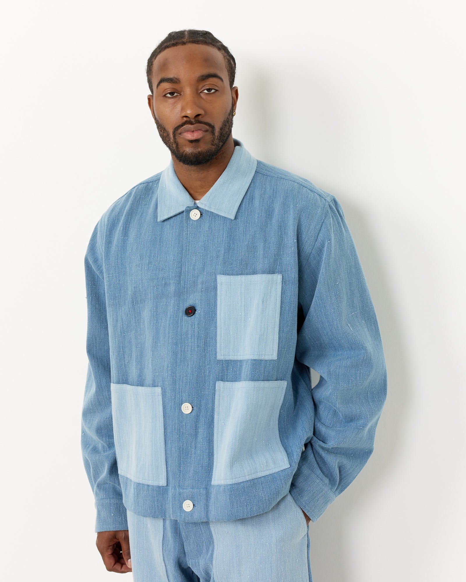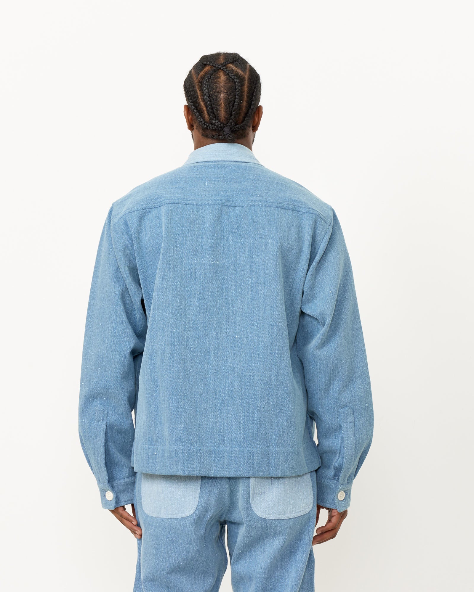 Kardo's Bodhi Hand Woven Jacket is a hand-finished garment made by a single tailor from beginning to end using the brand's 3×1 denim crafted from khadi (handspun) yarn. This craft-forward garment features contrasting denim used at the collar and three front patch pockets and is cut in a boxy fit.