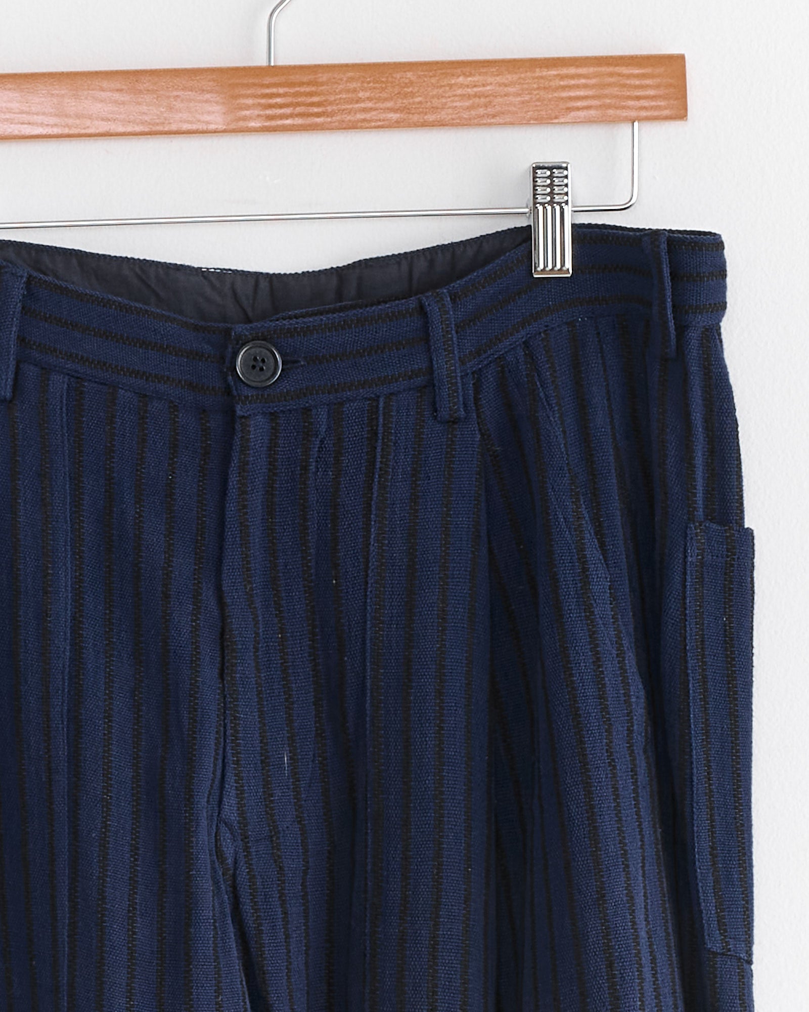The Kardo Yuki Pant in Extra Weft is a workwear-inspired trouser featuring an oversized fit, pleated front, and patch pockets. The fabric is handwoven using the extra weft technique, where motifs are intricately inlaid by hand—an intensive process requiring skilled artisans. The result is a richly textured piece that highlights craftsmanship and structure.