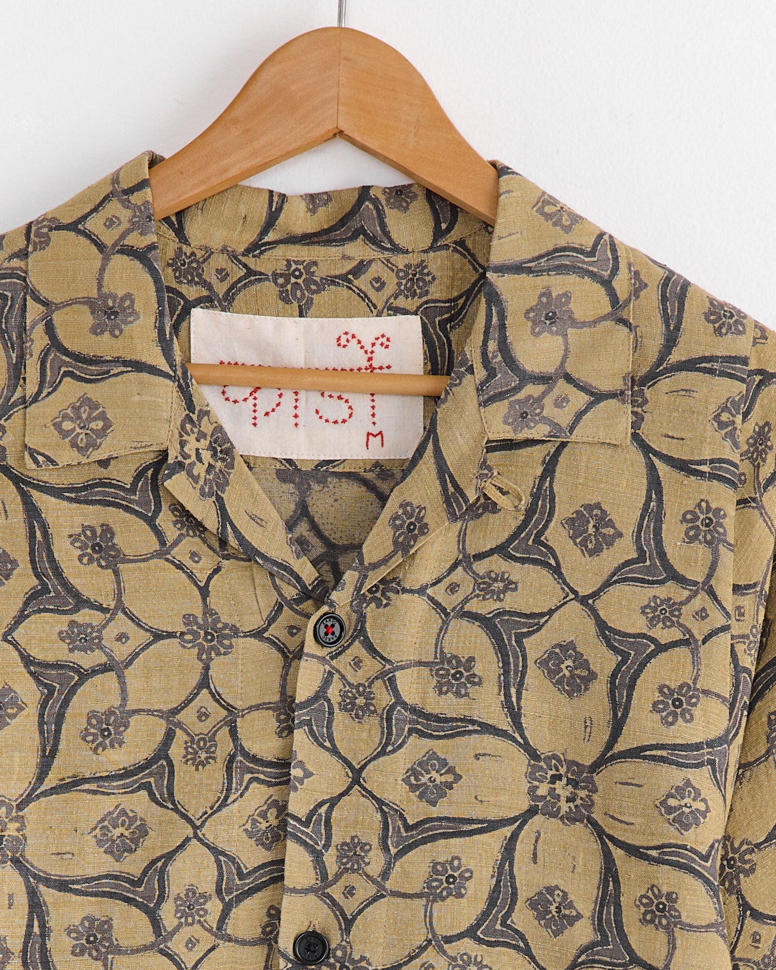 The Kardo Yusuke Shirt in Ajrakh is an oversized camp collar shirt featuring exaggerated circular armholes for added drape and volume. Cut from handwoven Matka silk, it offers a unique texture and softness between cotton and cashmere. Finished with natural dye block printing by artisan Sufiyan Khatri and his team in Ajrakhpur, Gujarat.