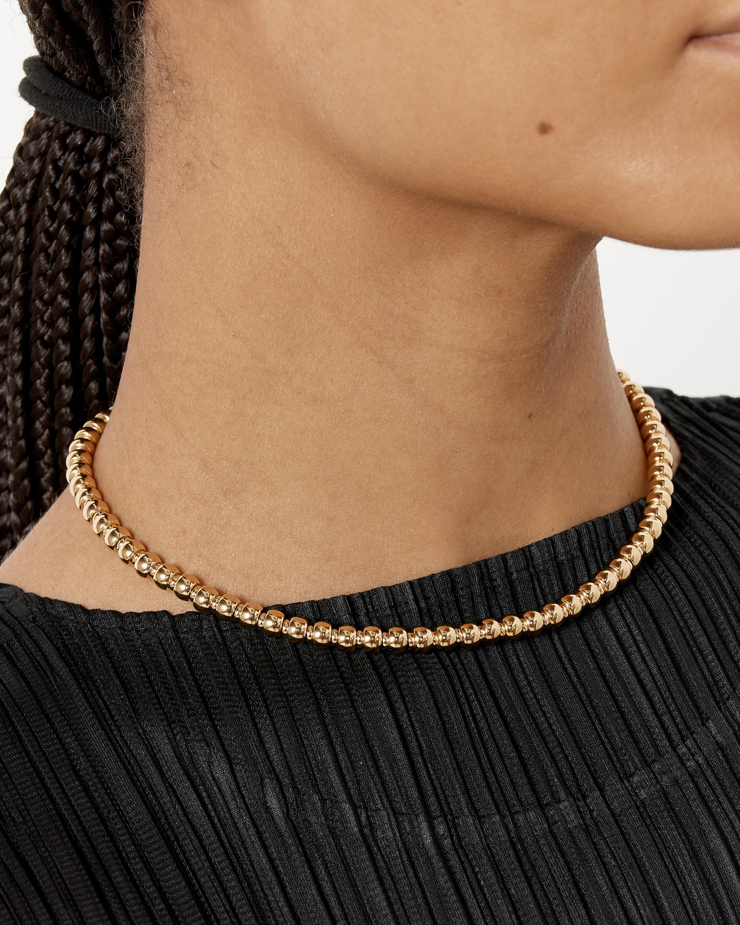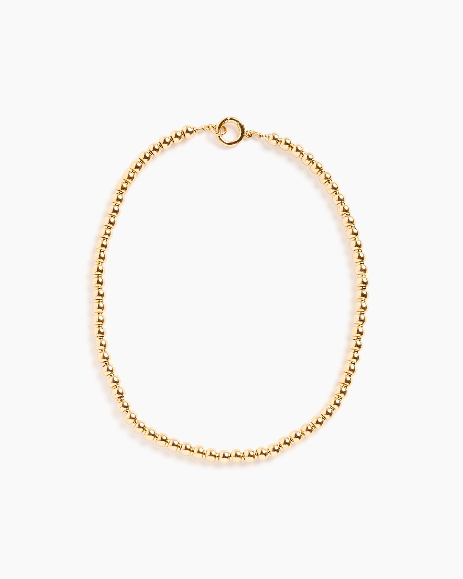 Laura Lombardi's 14K Gold Plated Brass Maremma Necklace is a hand-beaded gold-plated brass necklace featuring beads strung on a 2mm ball chain.