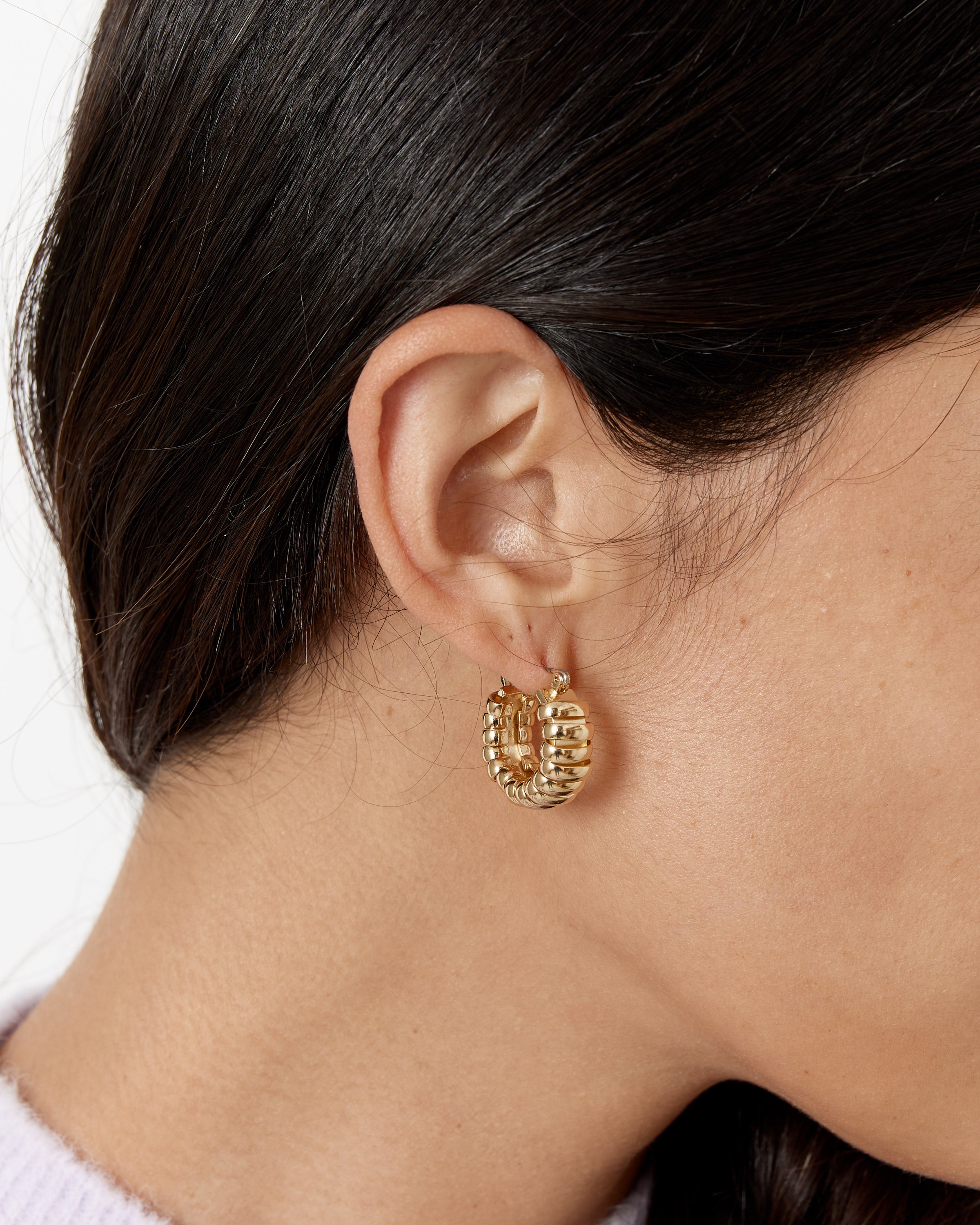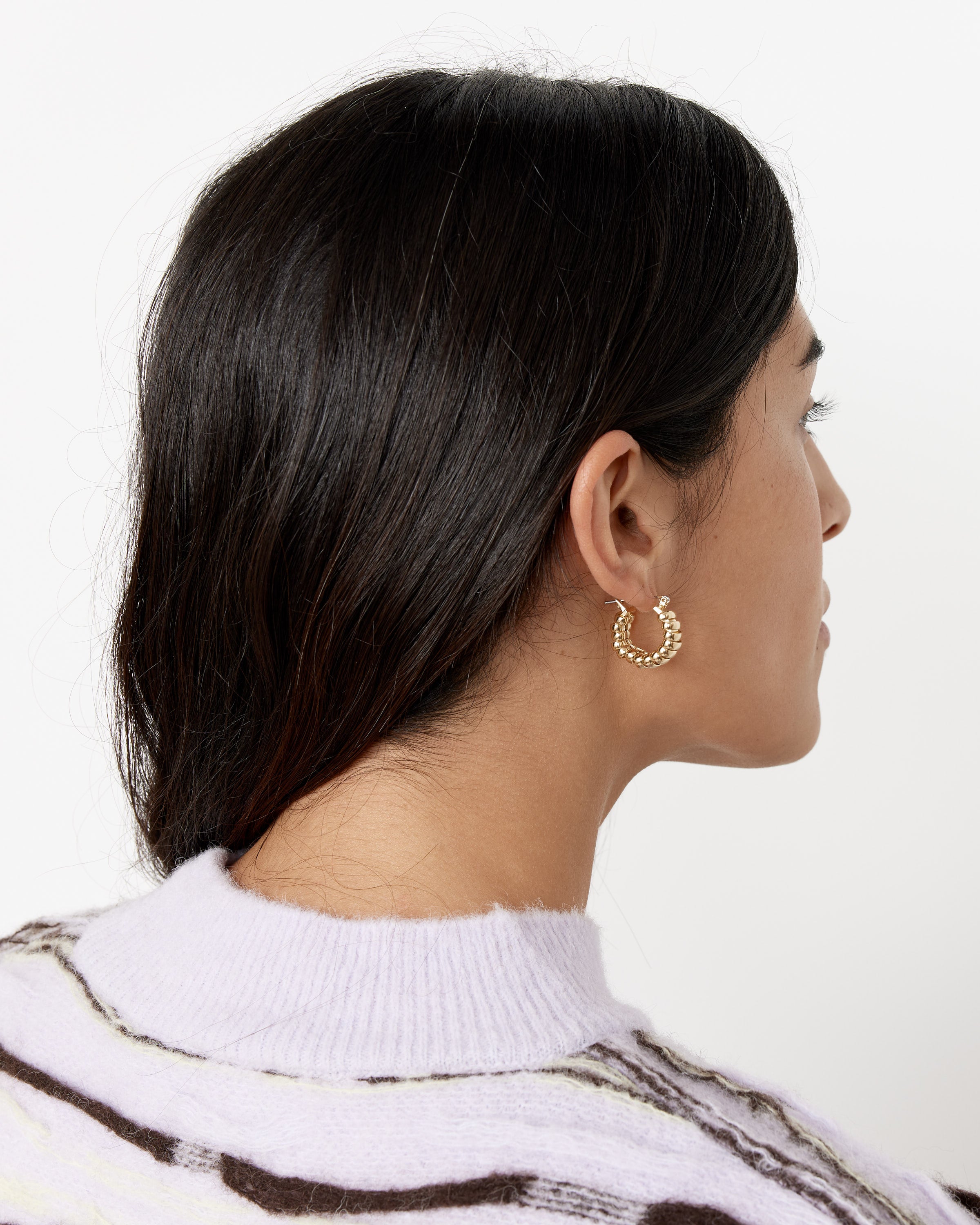 Laura Lombardi 18K Gold Plated Brass Mini Camilla Earrings are a sculptural pair of hoops crafted with a textured surface made from upcycled brass components.