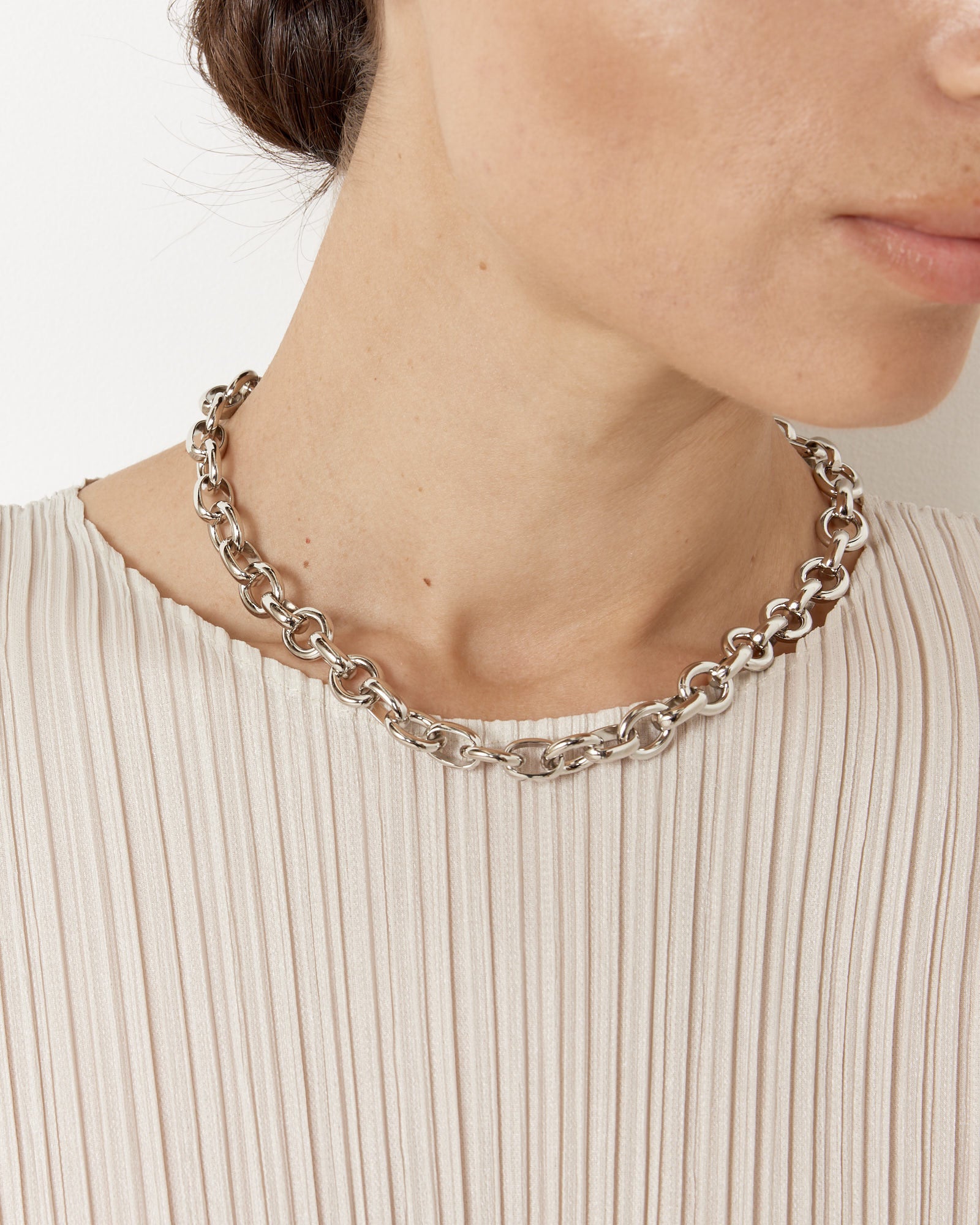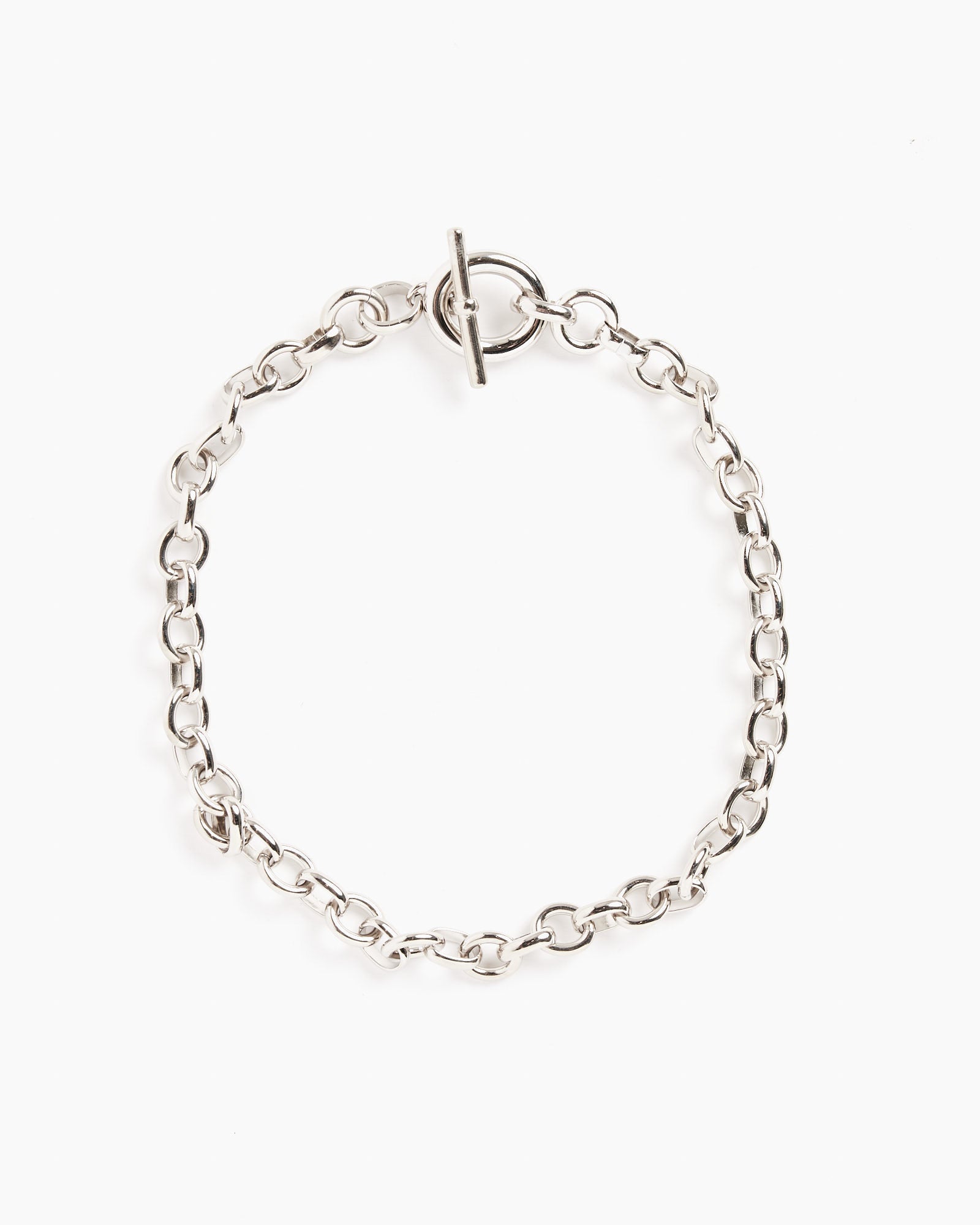 The Portrait Necklace is hand-assembled in Laura Lombardi's NYC studio from interlocking round and oval links and features toggle fastening.