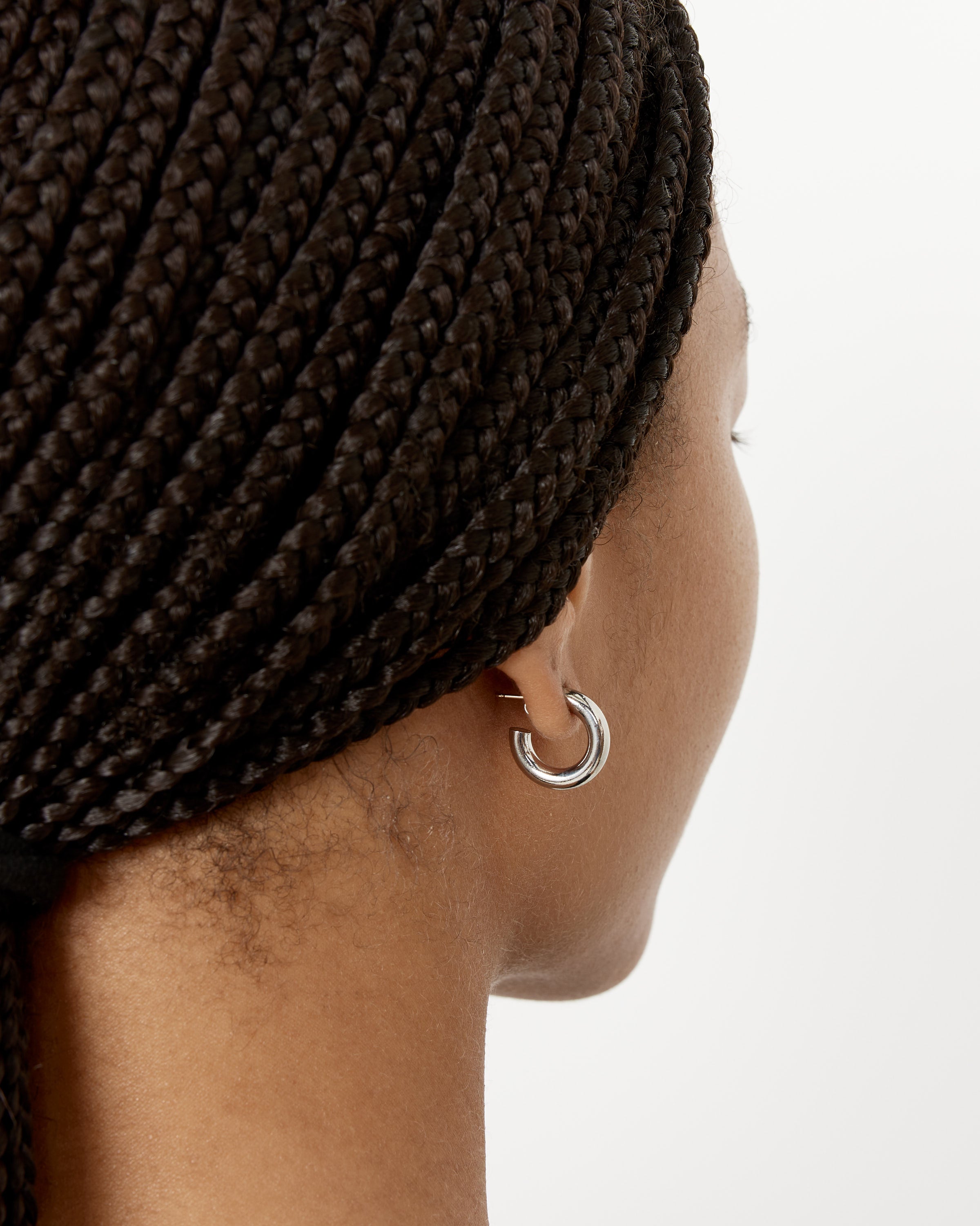 Laura Lombardi's Silver Mini Hoops are a versatile, everyday staple made from platinum-plated brass with 14k gold-filled posts.
