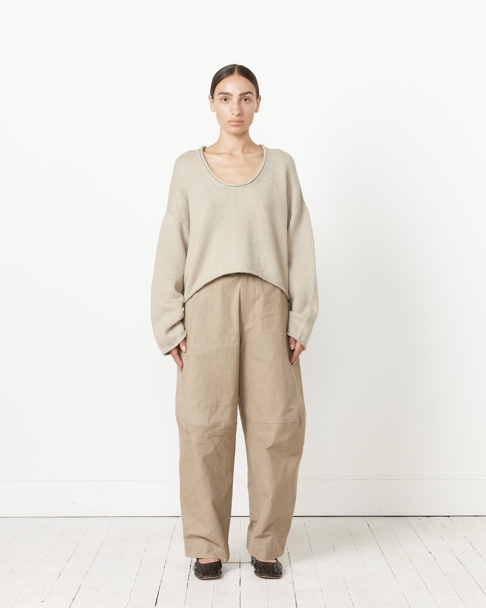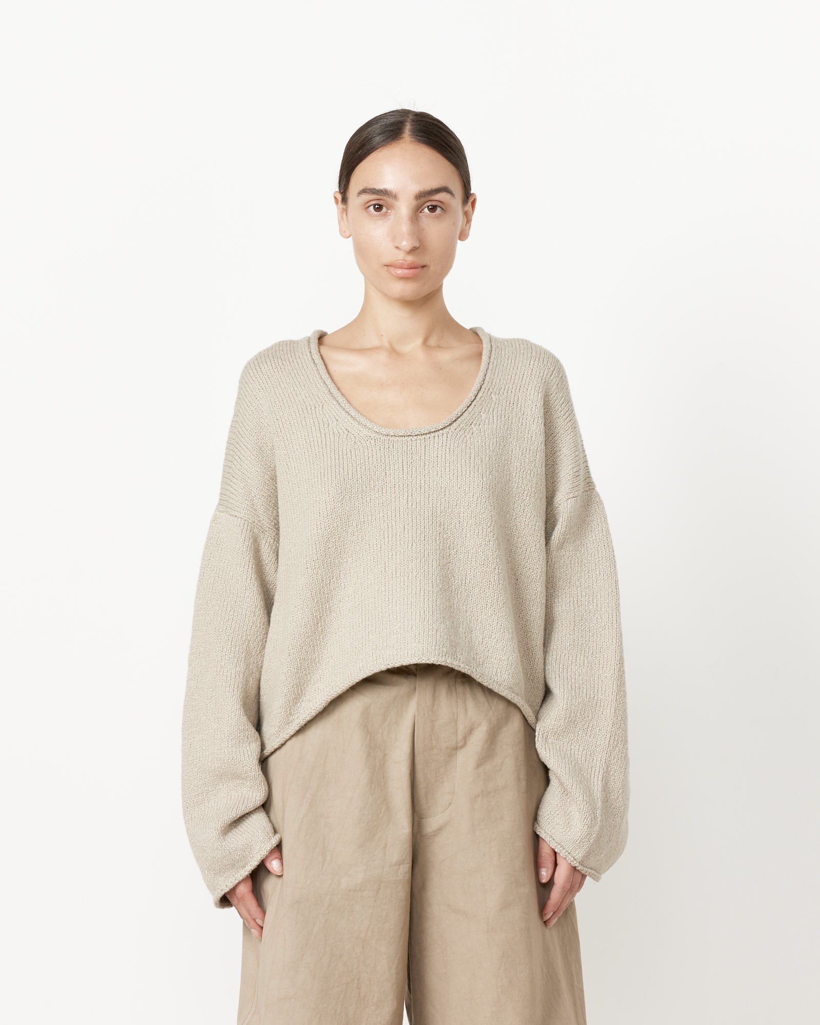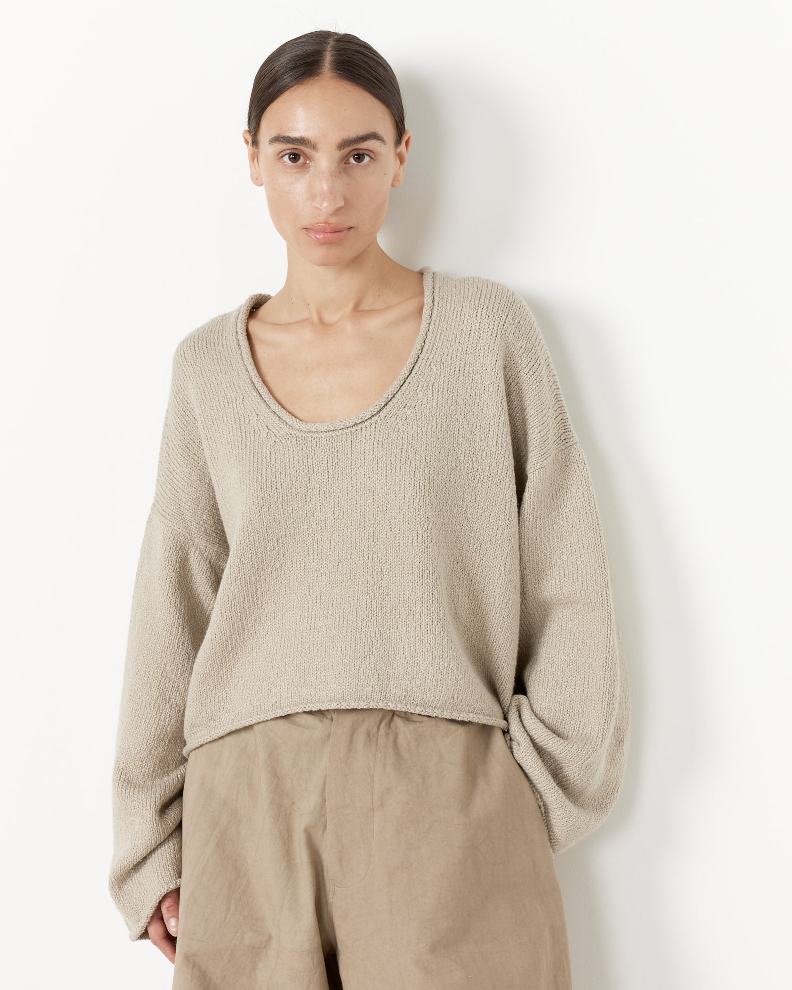 Roving U Neck Sweater in Cement