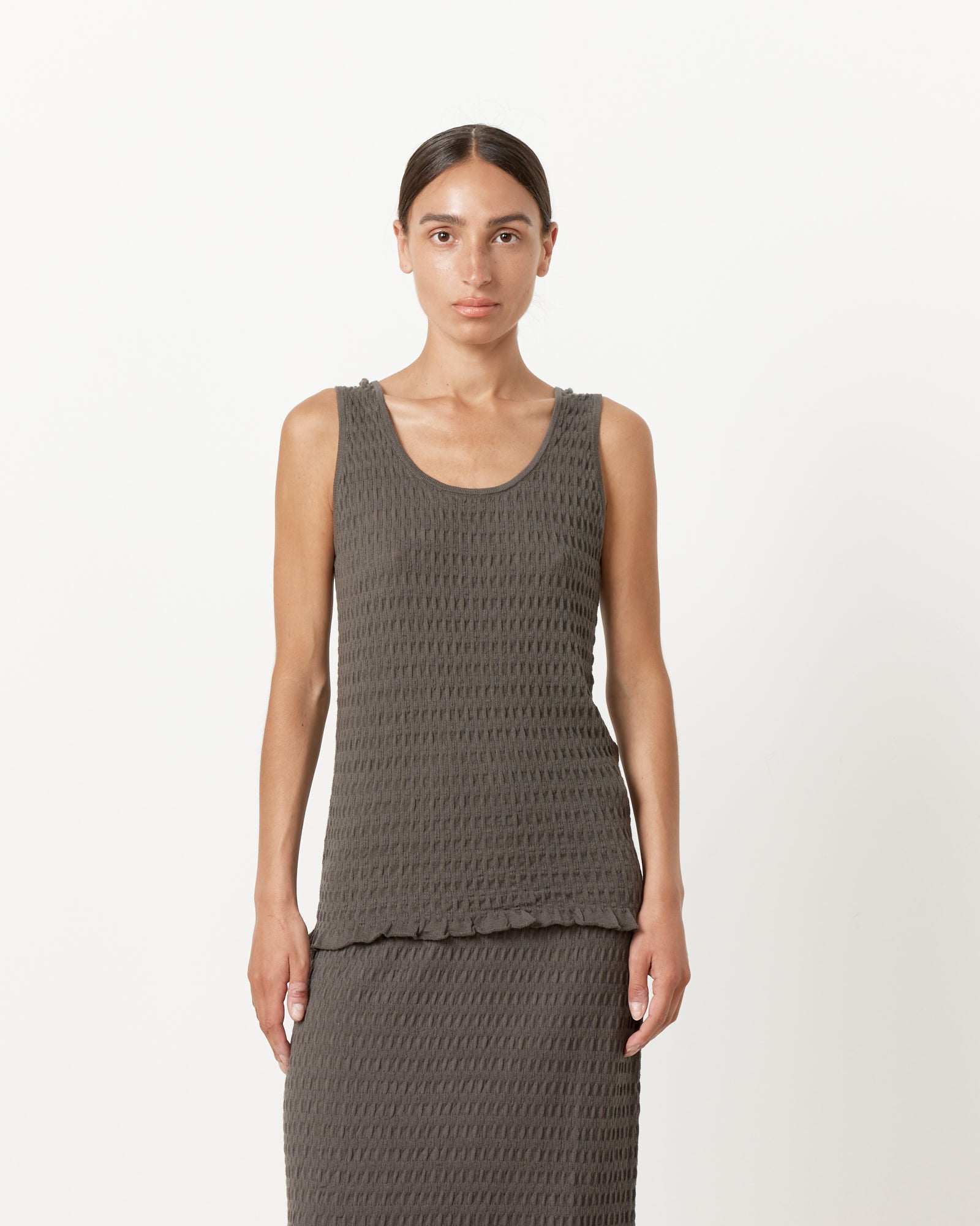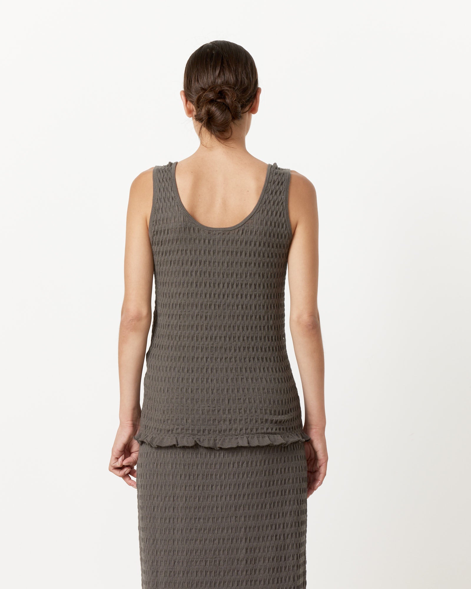 Lauren Manoogian's Smocked Tank is crafted from a fine gauge knit with stretch and a beautiful texture, and features a ruffled hemline.