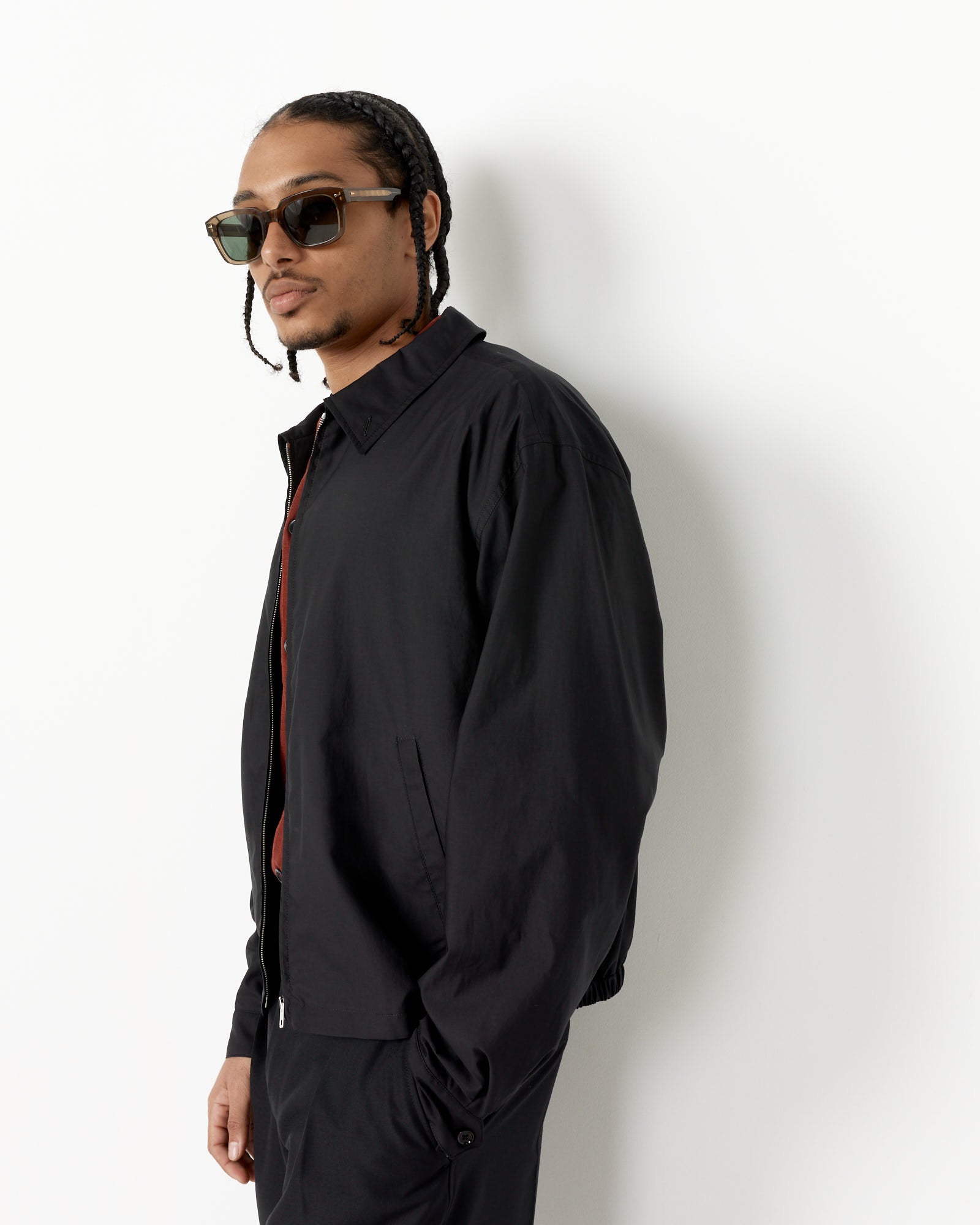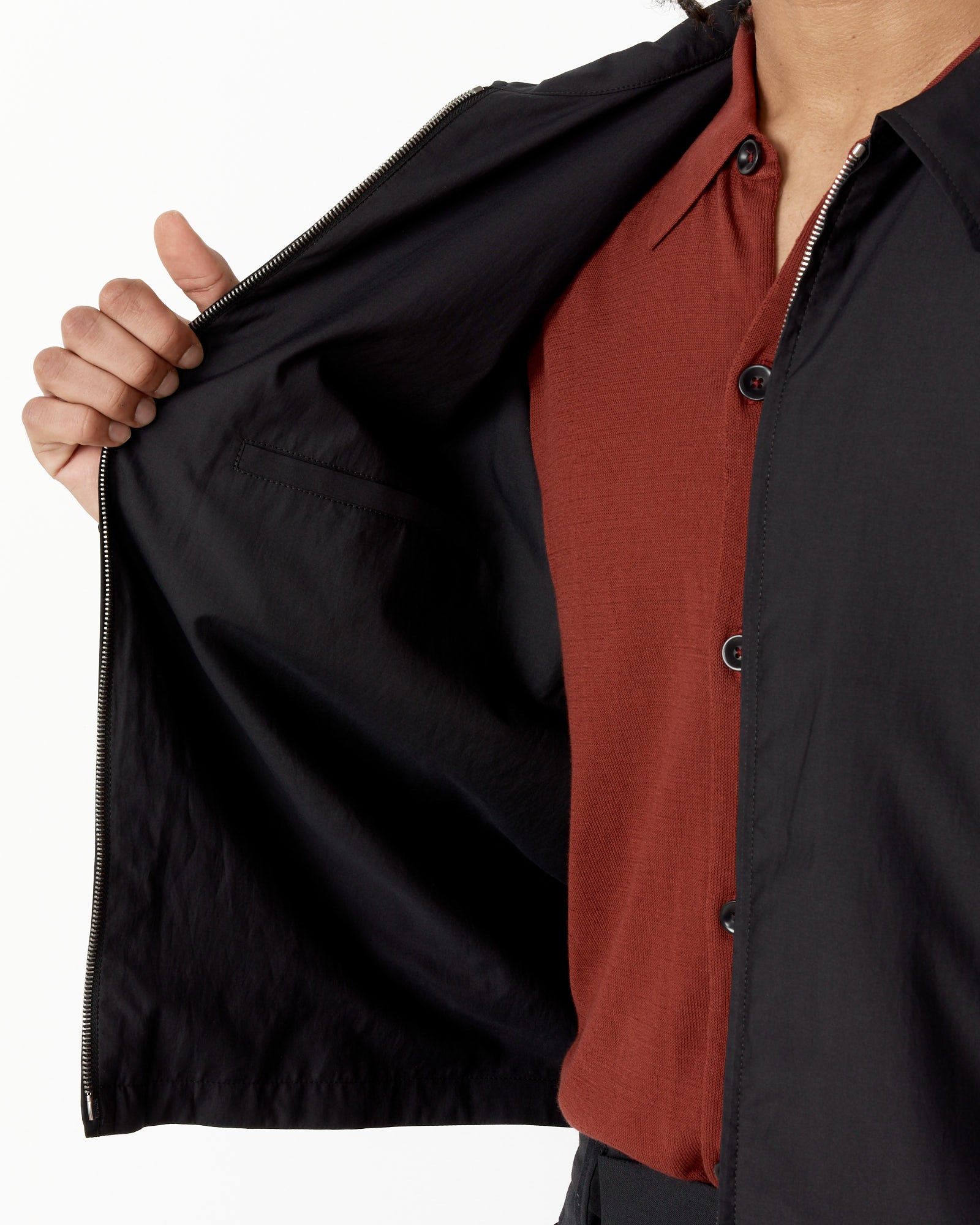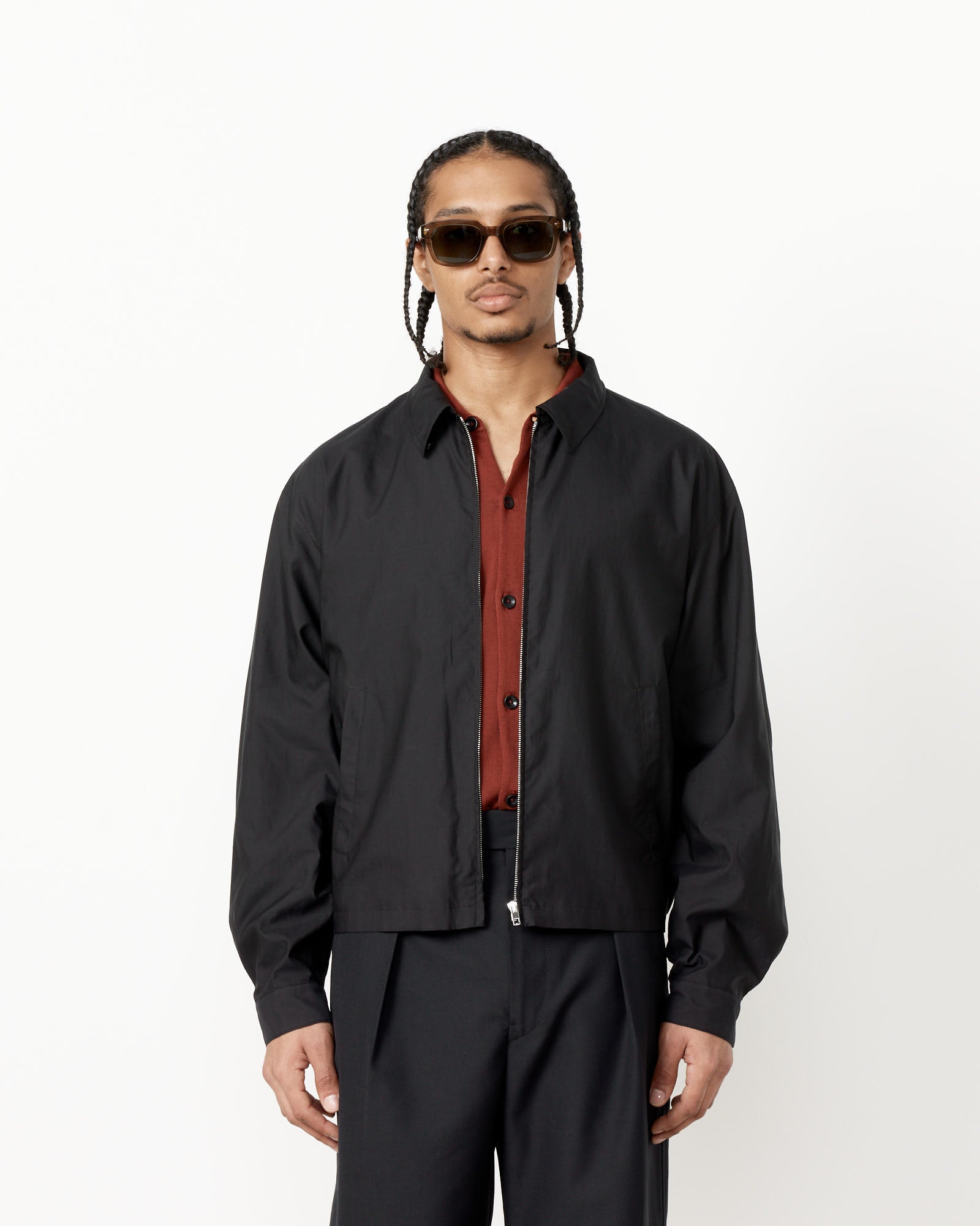 The Shirt Blouson in Black is made of cotton silk that has been washed, granting the garment fluidity and lightness. With its straight fit enhanced by a square hem, the Shirt Blouson features adjustable cuffs and a convertible collar.