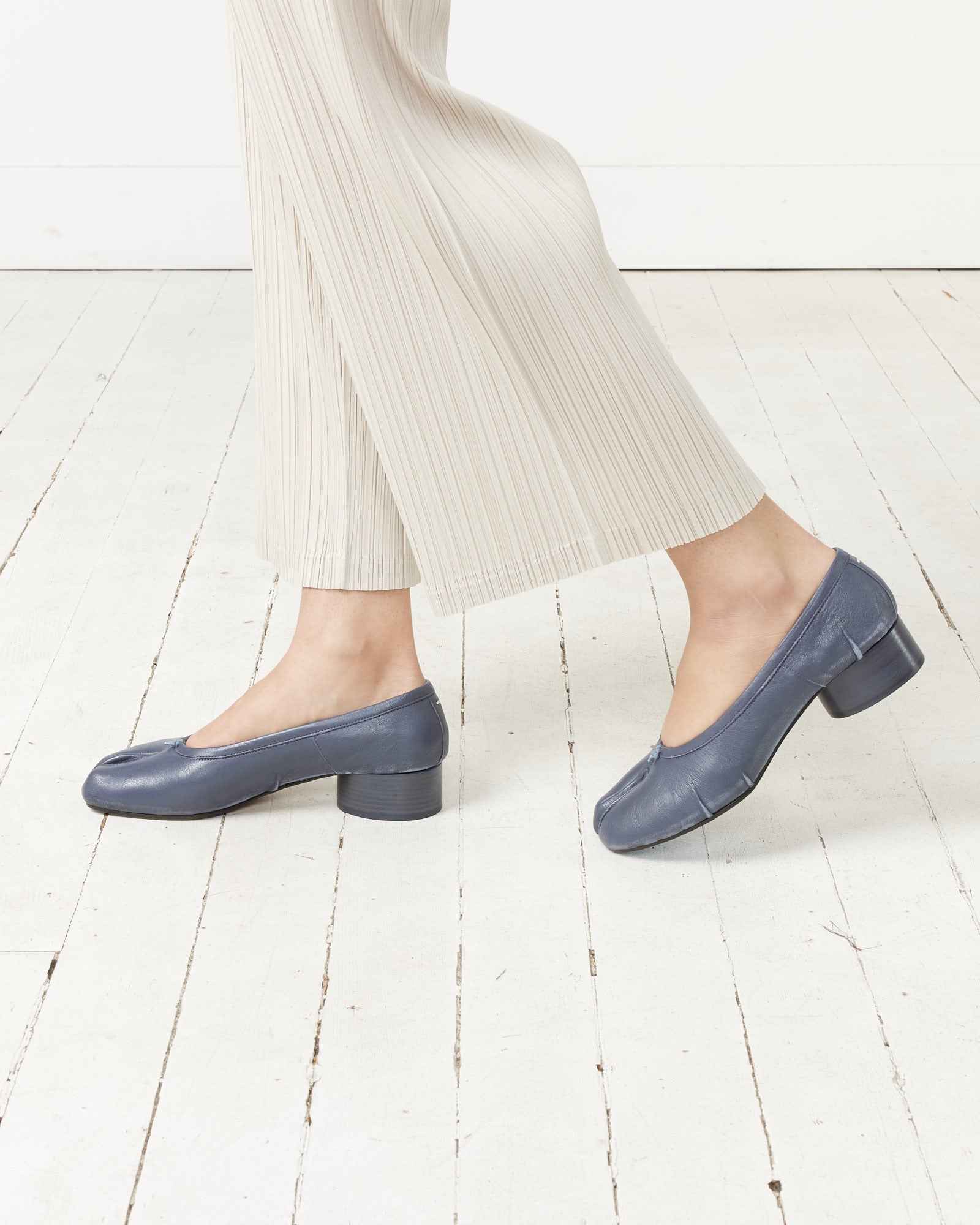Inspired by soft ballet slippers, Maison Margiela's Ballerina Heels in Black are composed of two pieces of smooth lamb nappa leather stitched together, covering the upper and the heel, and feature a one inch cylindrical heel with a rubber outsole for traction