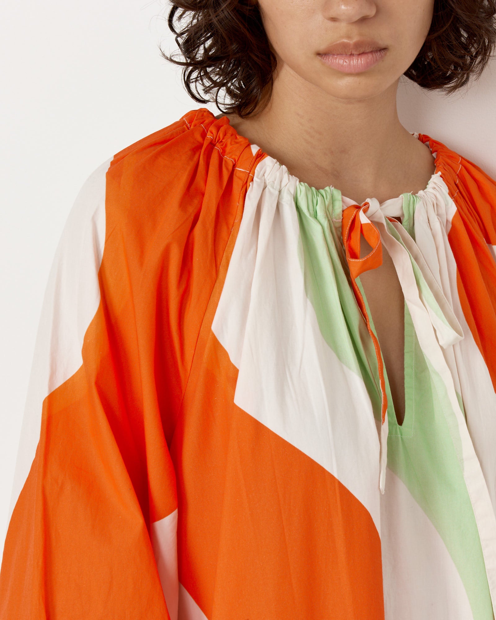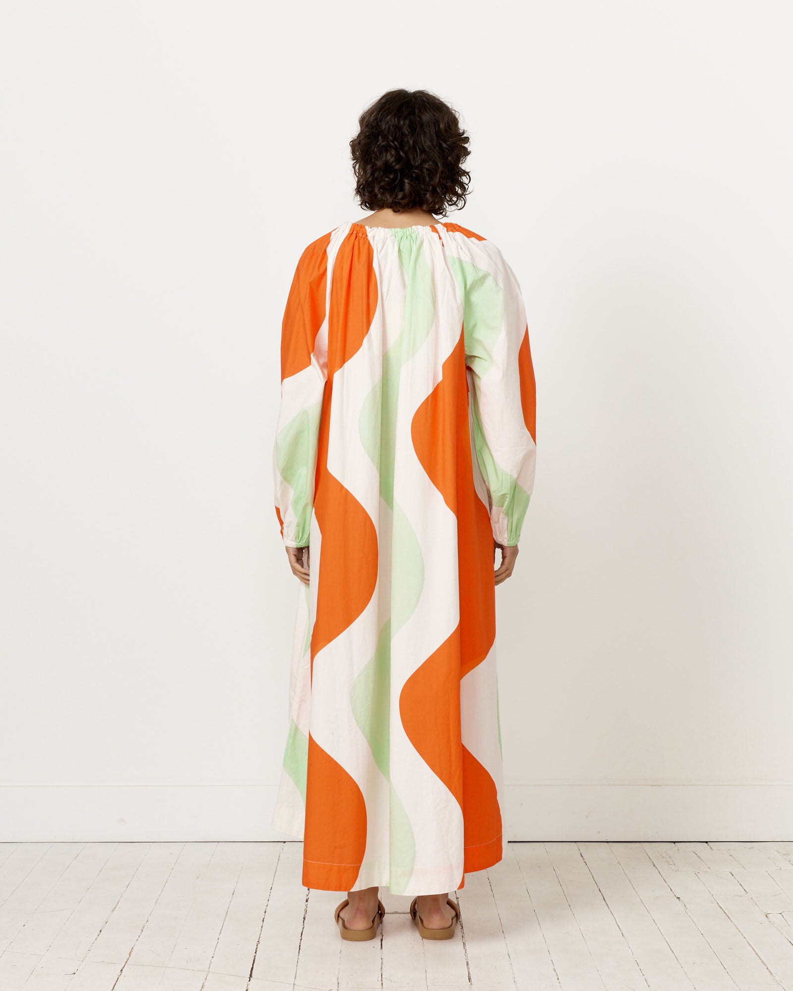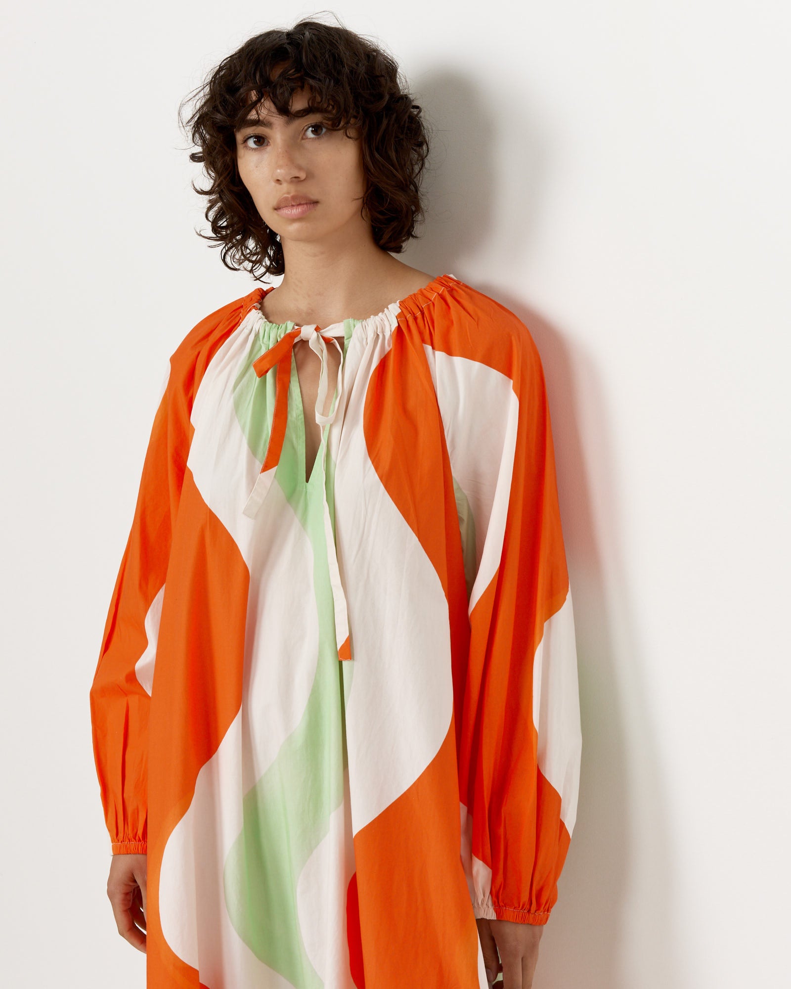 Done with an op art print in a vivid colorway, Mara Hoffman's Fair Trade Certified Salma Dress is cut in a loose silhouette with a drawstring-adjustable v-neckline, long dolman sleeves with elasticated cuffs, and side seam pockets.
