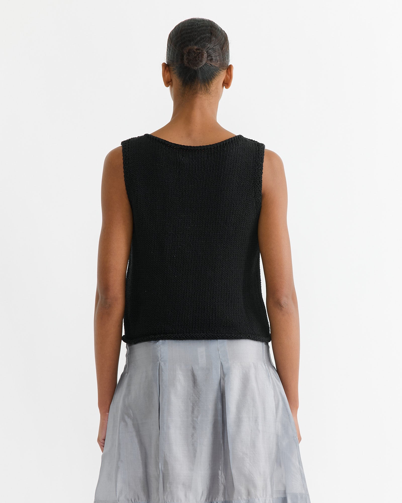Boat Neck Knit Tank in Black