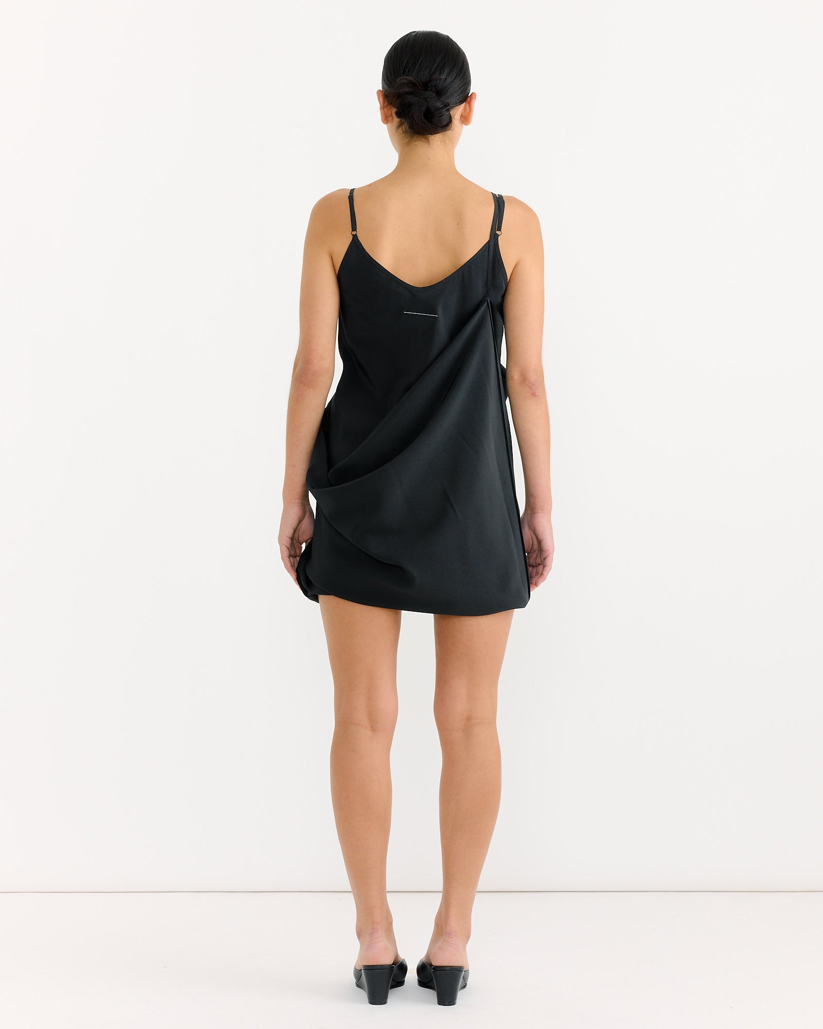 The MM6 Maison Margiela Silk Dress is a refined yet subtly deconstructed piece, crafted from silk crepe de chine. Its streamlined V-neck silhouette is complemented by adjustable straps, while an irregular hem adds a signature touch of disruption. The iconic white stitch line at the back completes the design.
