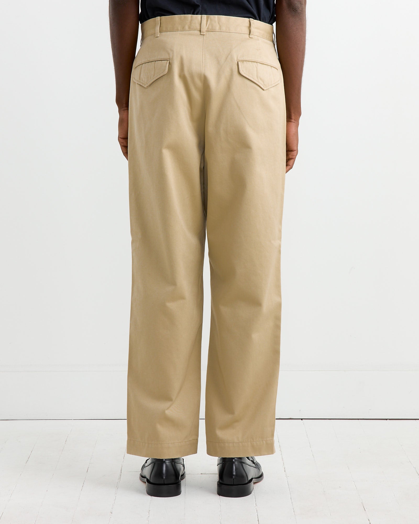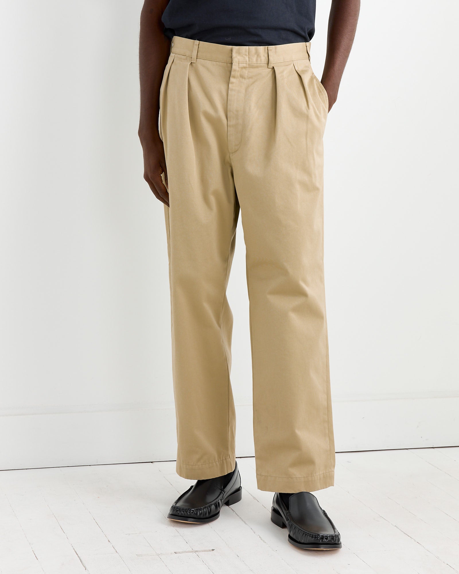 - Double pleats, wide-tapered cut, with a sleek and durable chino material