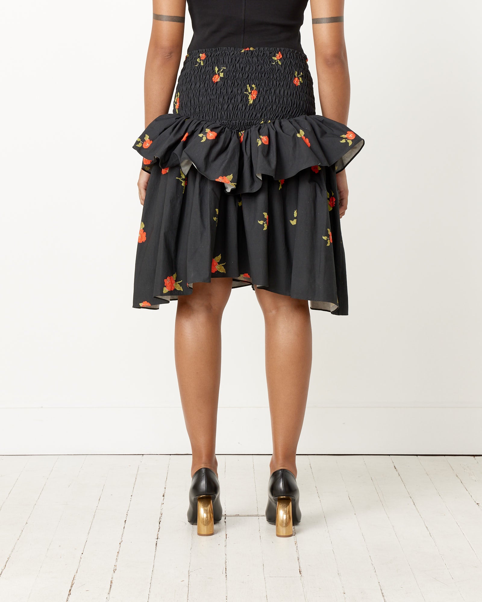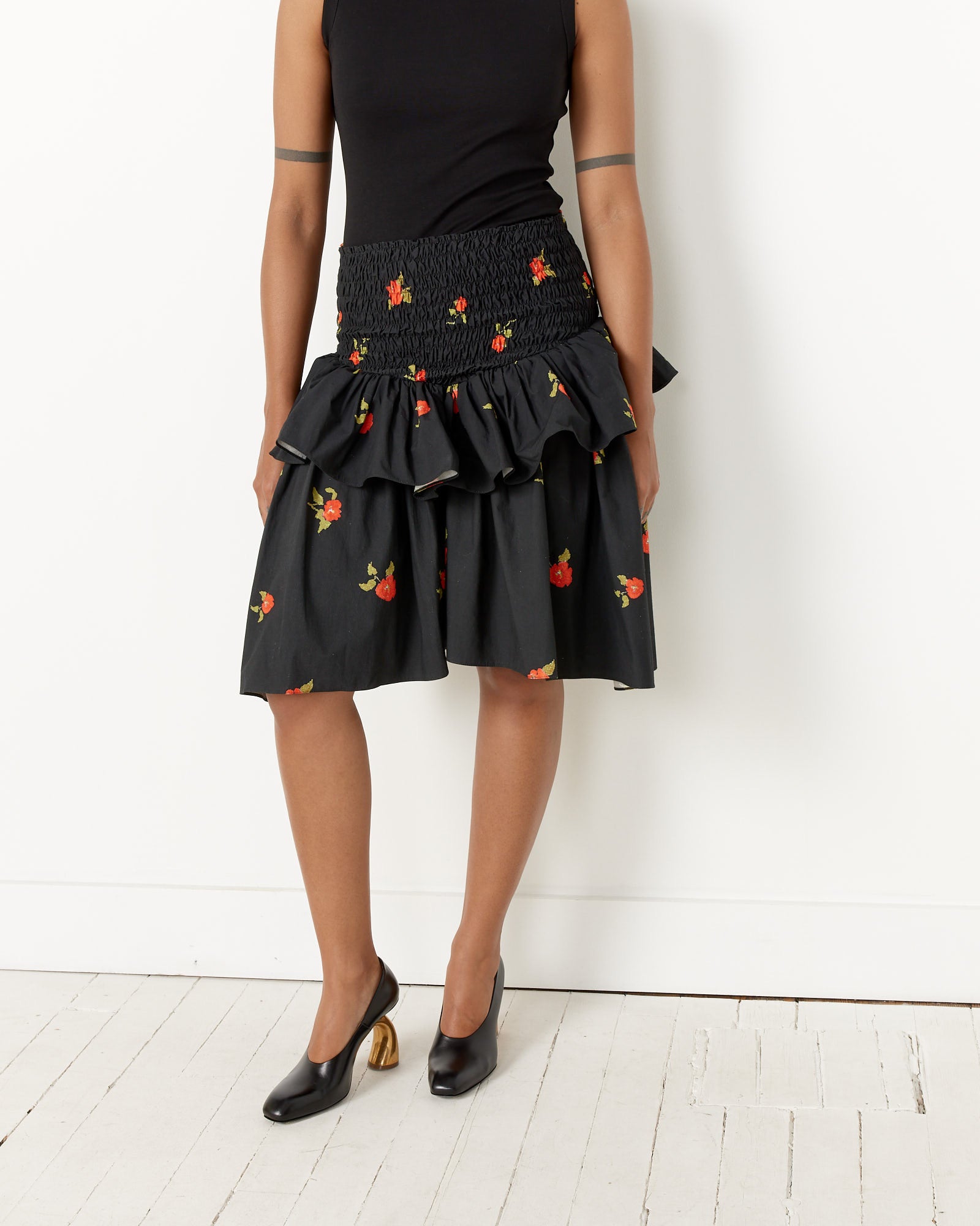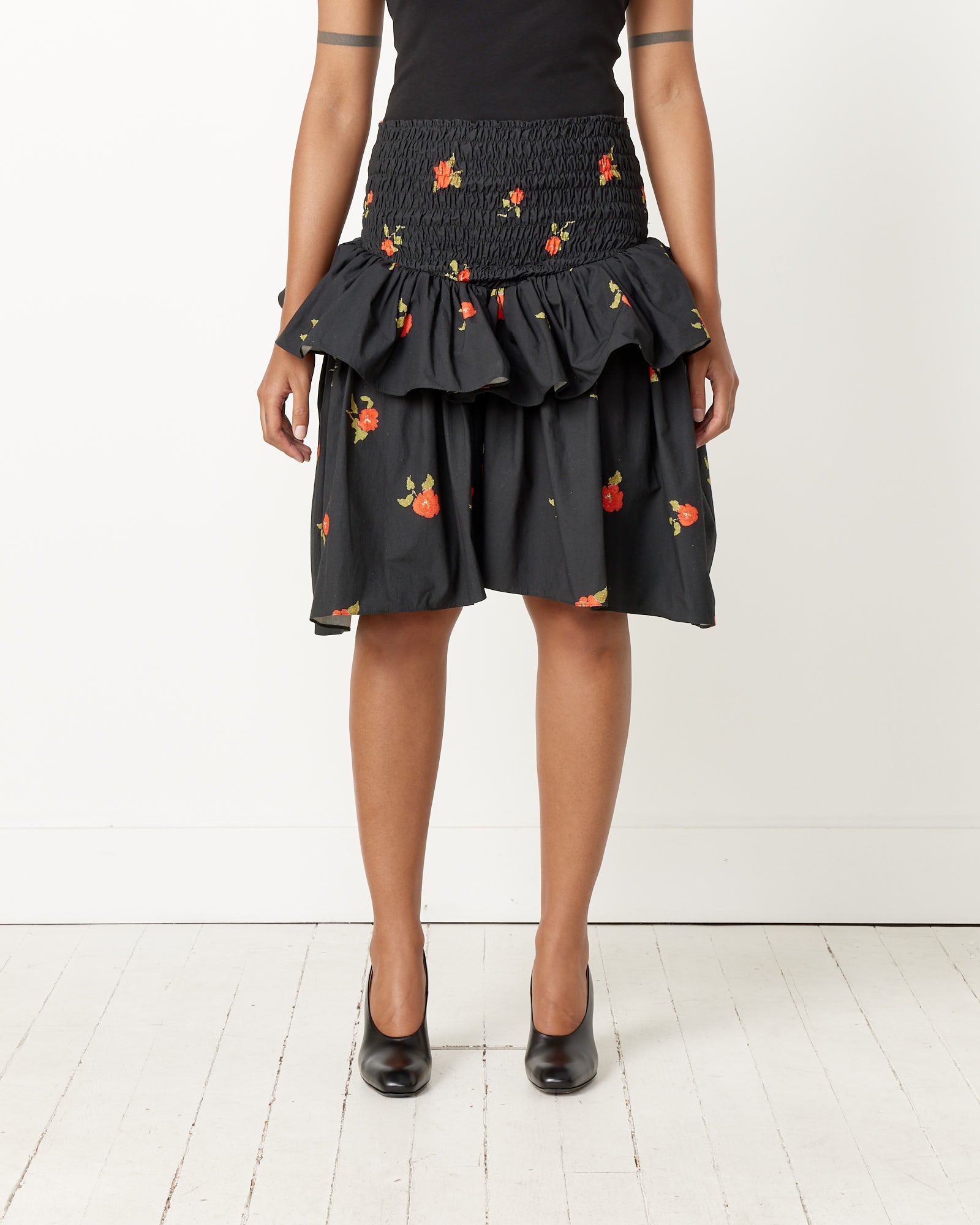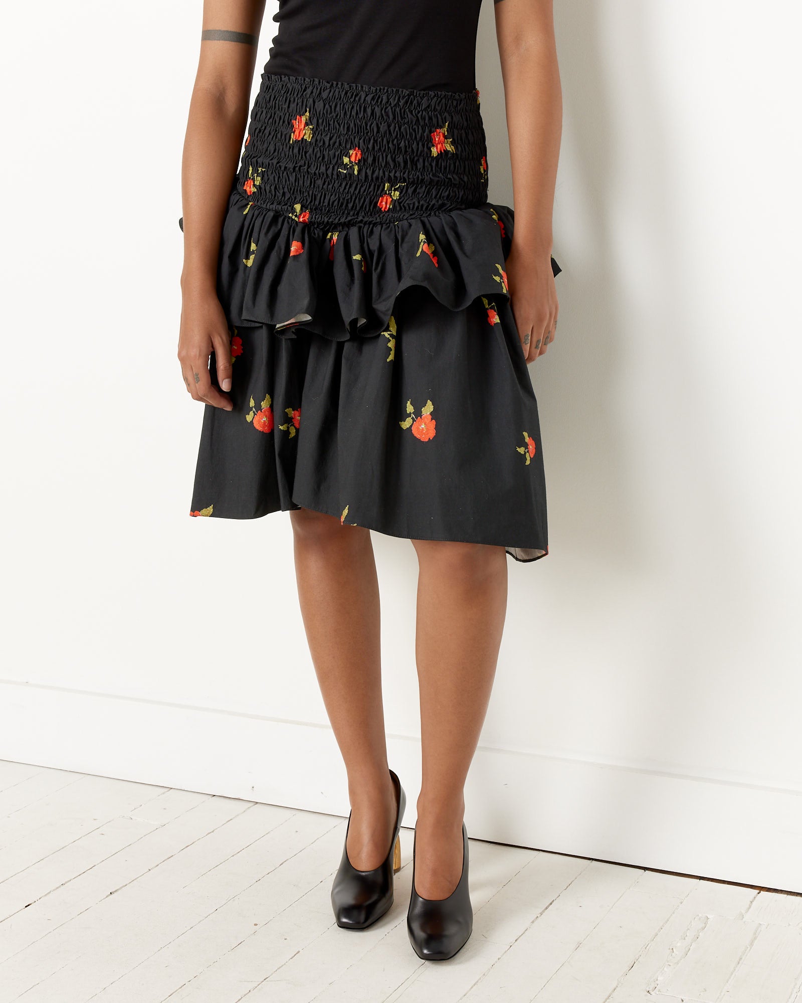 Naya Rea's Kalinka Printed Skirt features a smocked waistband that holds snug against the body, a ruffled tier, and a hem that hits at the knee.